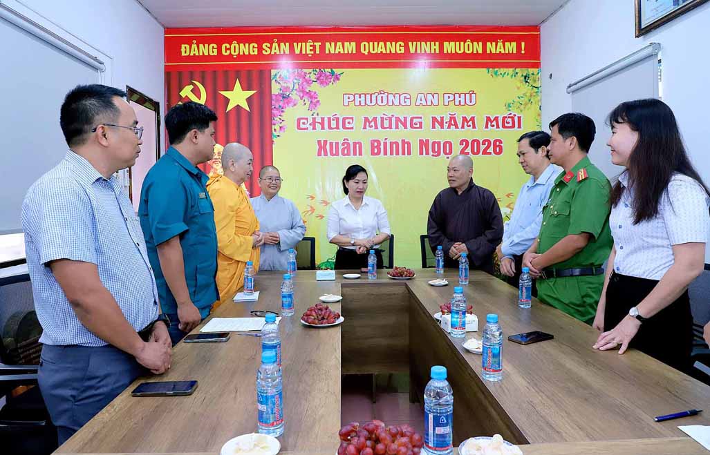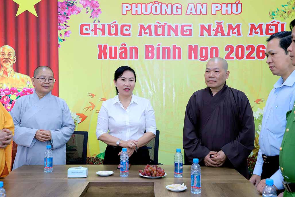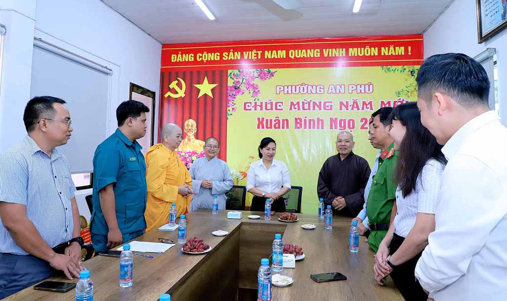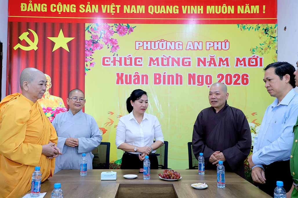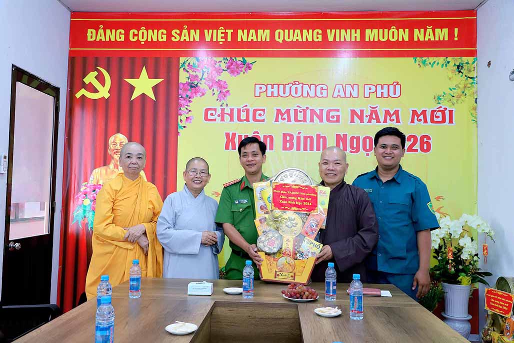 Ngày 05/02/2026, nhân dịp Tết Nguyên đán Bính Ngọ 2026, đại diện Phật giáo phường An Phú đã tổ chức đến thăm và chúc Tết lãnh đạo Đảng ủy, HĐND, UBND, Ủy ban MTTQ Việt Nam, Công an và Ban Chỉ huy Quân sự phường An Phú, TP.HCM.
