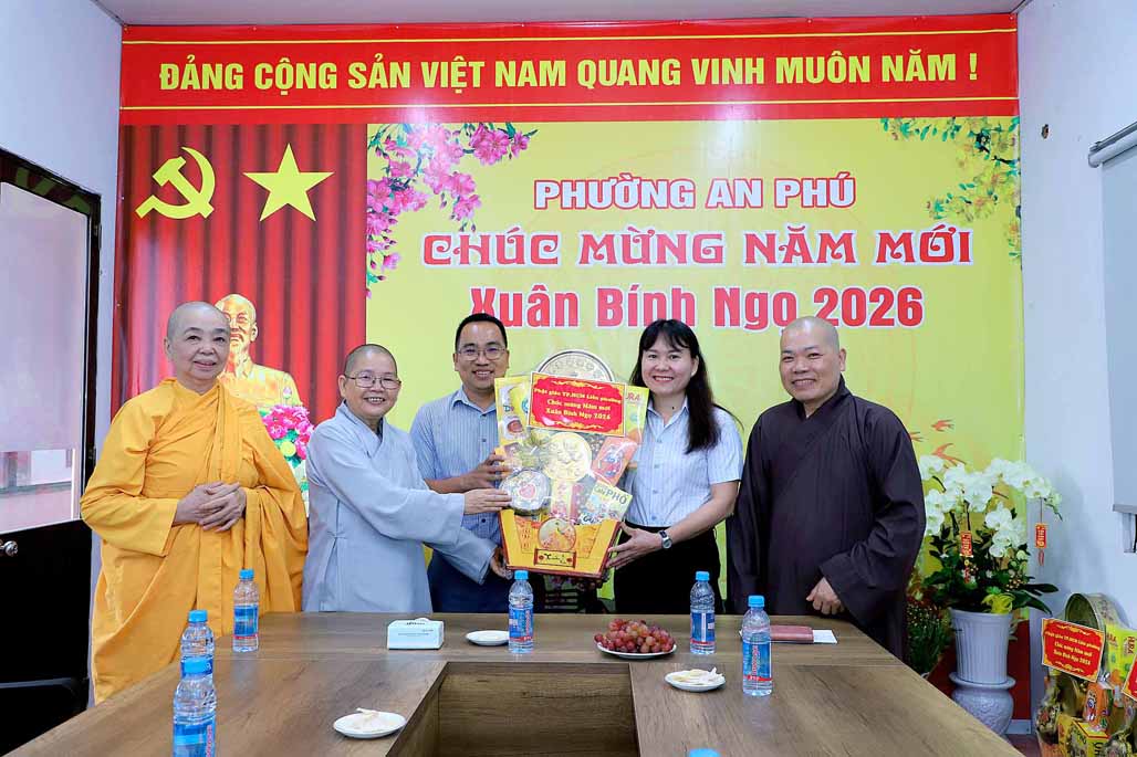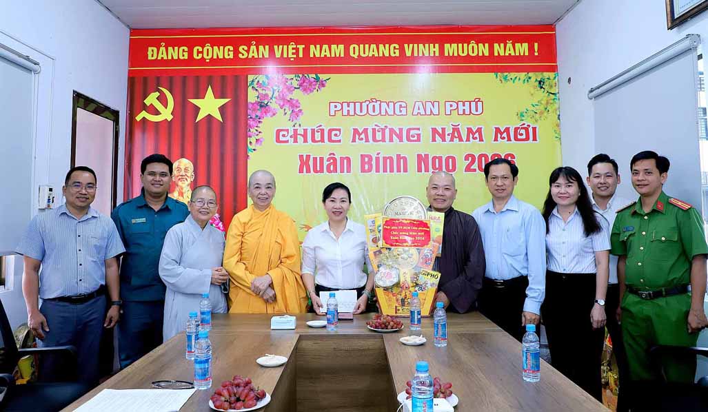 Ngày 05/02/2026, nhân dịp Tết Nguyên đán Bính Ngọ 2026, đại diện Phật giáo phường An Phú đã tổ chức đến thăm và chúc Tết lãnh đạo Đảng ủy, HĐND, UBND, Ủy ban MTTQ Việt Nam, Công an và Ban Chỉ huy Quân sự phường An Phú, TP.HCM.