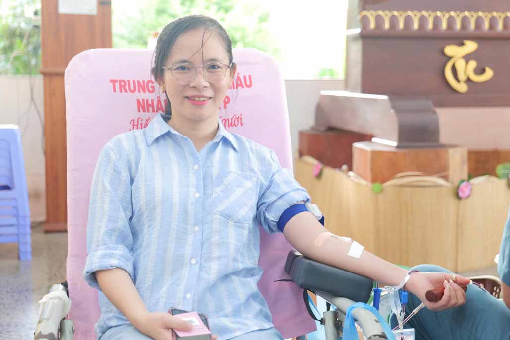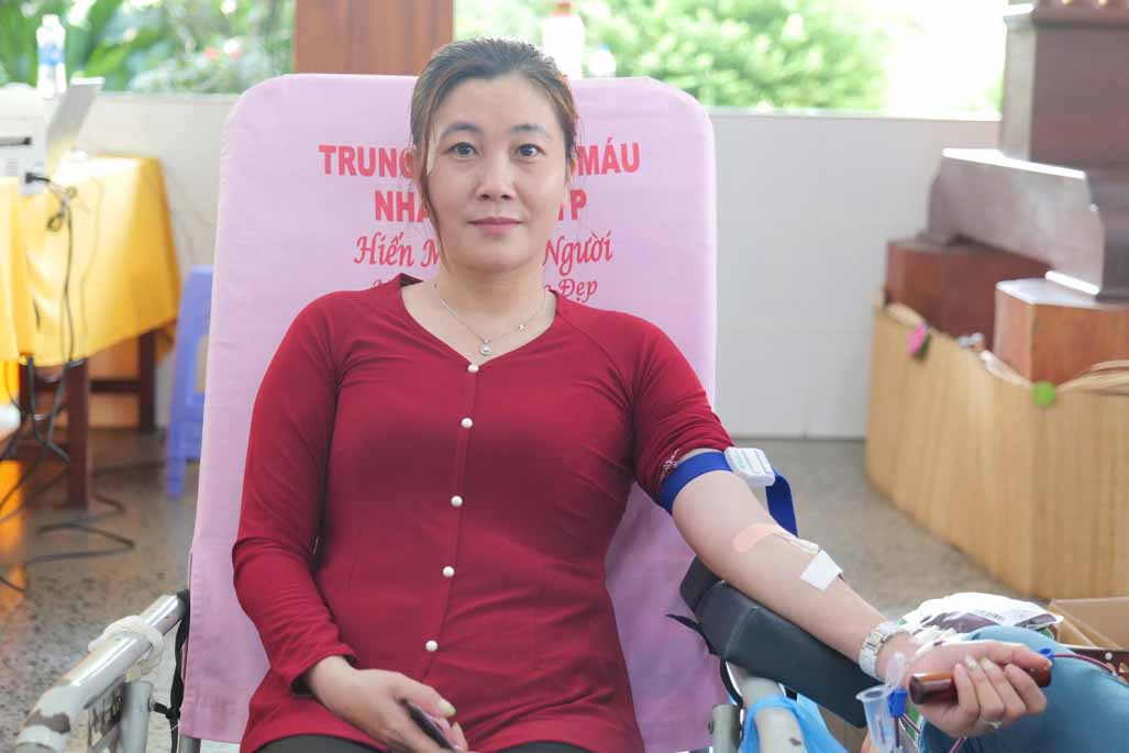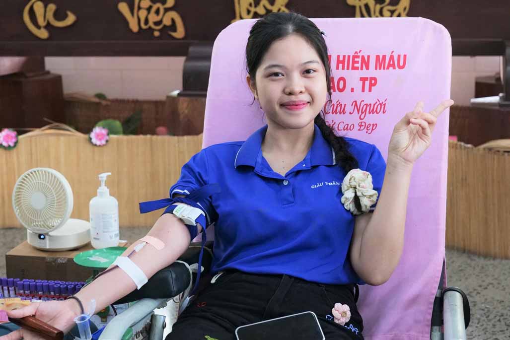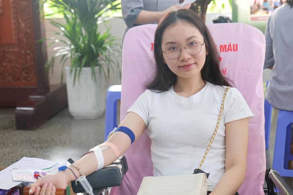 “Ban đầu mình khá hồi hộp, nhưng khi thấy mọi người xung quanh, đặc biệt là các Ni sư cũng tham gia rất bình thường, mình cảm thấy yên tâm hơn. Sau khi hiến máu xong, mình thấy nhẹ lòng và rất vui vì biết rằng mình vừa làm được một điều có ích.”