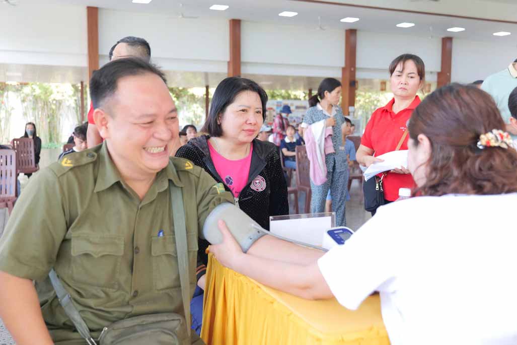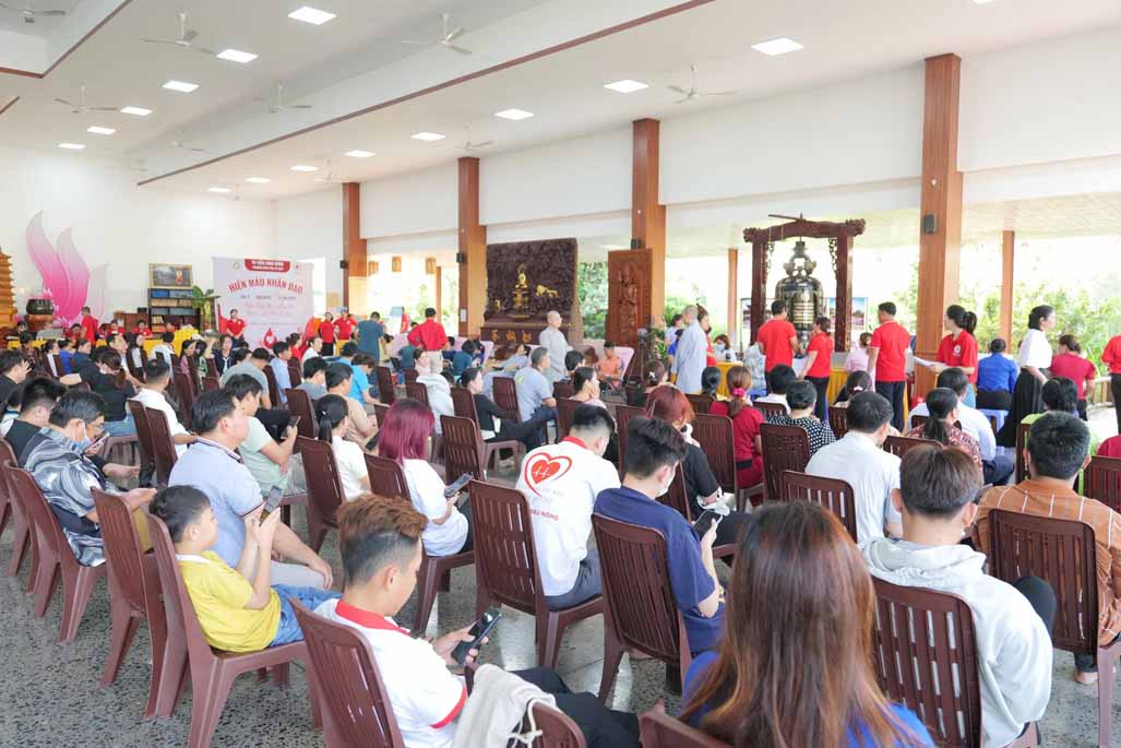 Ngay từ sáng sớm, khuôn viên chánh điện đã trở nên nhộn nhịp với sự vân tập của gần 200 tình nguyện viên. Hàng trăm chiếc ghế được sắp xếp ngay ngắn, từng khu vực đăng ký, kiểm tra sức khỏe được bố trí khoa học dưới sự hướng dẫn tận tình của đội ngũ y bác sĩ. Tất cả tạo nên một không gian vừa chuyên nghiệp, vừa gần gũi, nơi mỗi người đều cảm nhận được sự quan tâm và trân trọng.
