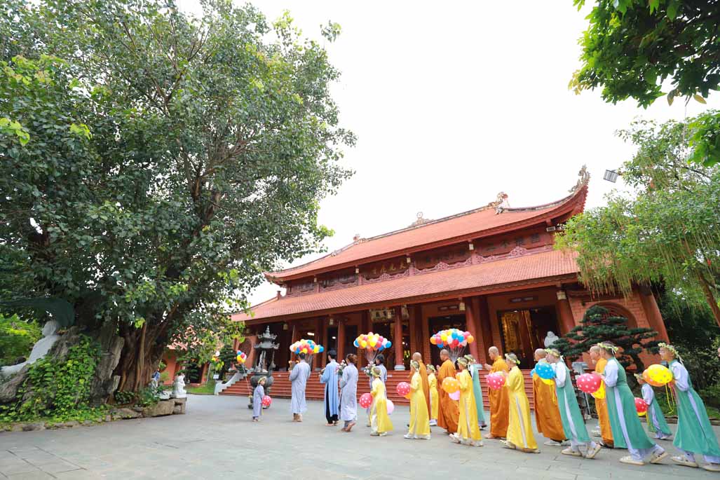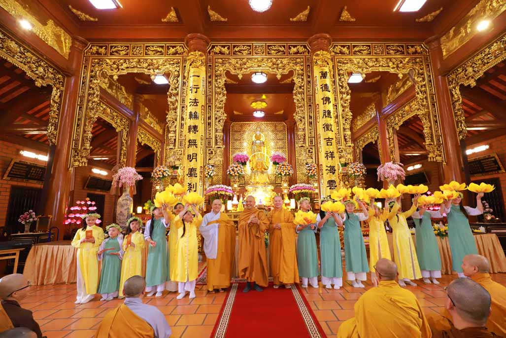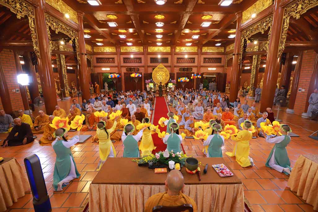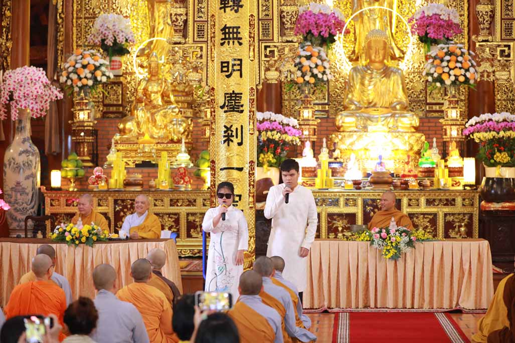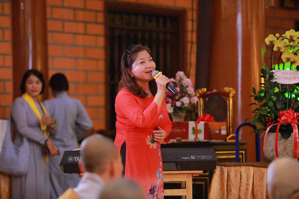 Không khí buổi lễ thêm phần sinh động với nhiều tiết mục văn nghệ đầy xúc cảm. Đặc biệt, Đạo tràng Khiếm thị của chùa đã dâng lên Tam Bảo hai ca khúc “Nghề giáo tôi yêu” và “Người thầy” như lời chúc mừng 20/11 gửi đến quý Thầy, Cô Ban Chủ nhiệm. Các tiết mục múa của các tiểu Ni tại chùa cũng để lại nhiều ấn tượng sâu sắc bởi sự hồn nhiên, trang nghiêm và tinh tấn trong biểu diễn.