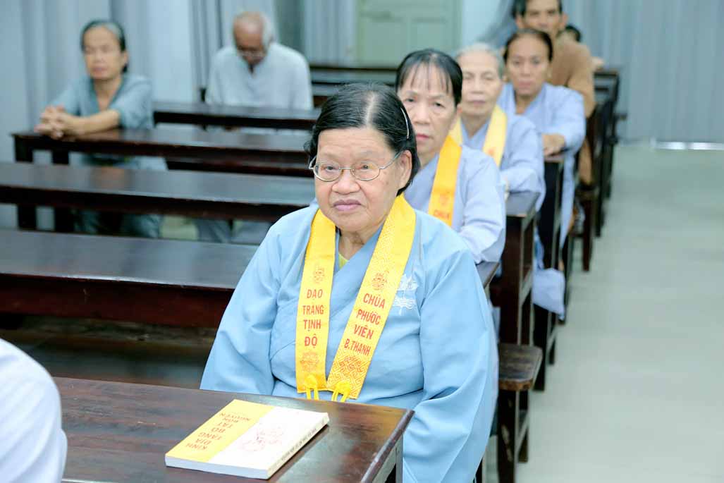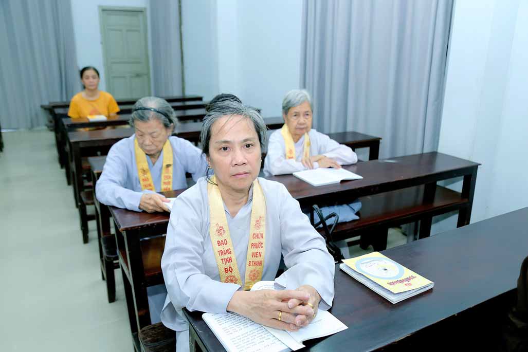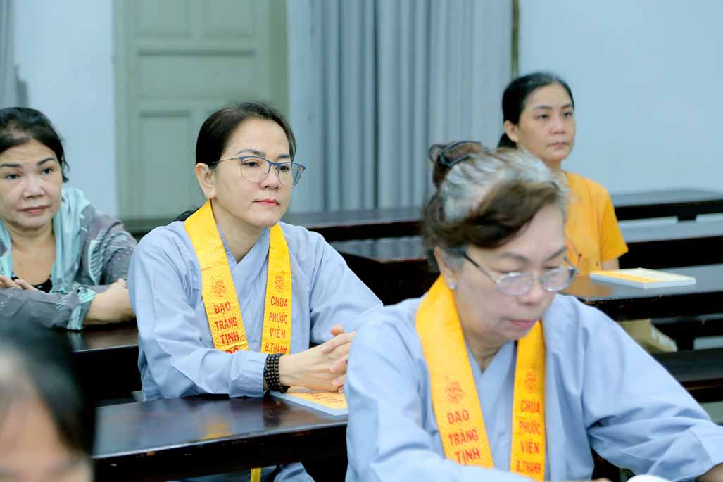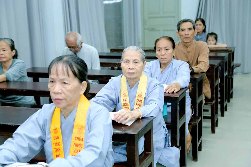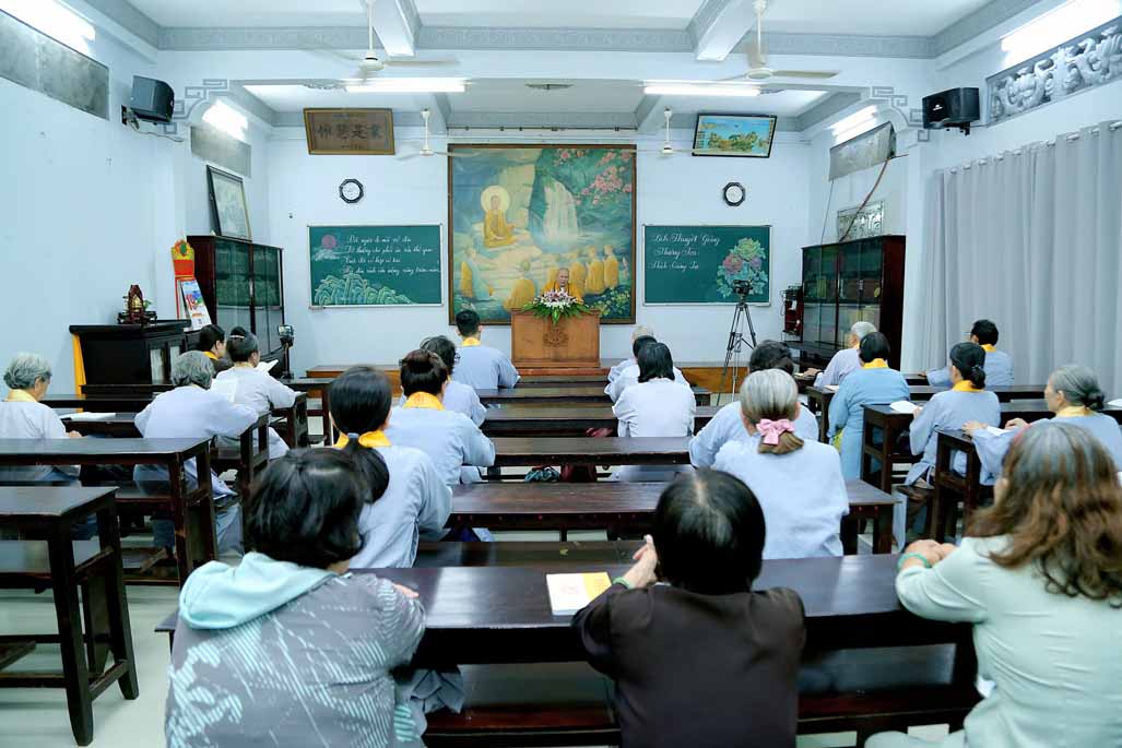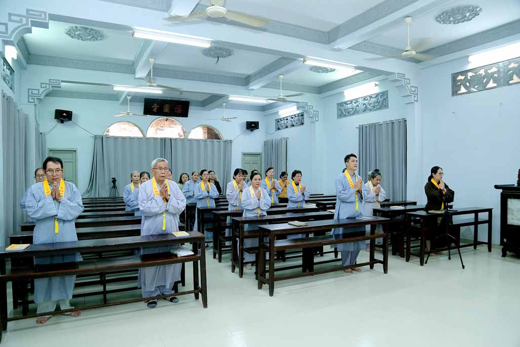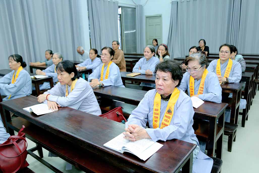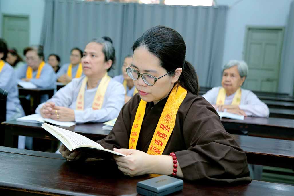 Tiếp nối thời Pháp thoại, là thời khóa niệm Phật dưới sự hướng dẫn của chư Tôn đức Ni tại bổn tự. Khóa tu “Ngày An Lạc” tại chùa Phước Viên luôn được duy trì, nhằm tạo điều kiện cho hành giả có thêm thời gian trau dồi đạo hạnh, góp phần lan tỏa những giá trị tốt đẹp của Phật giáo trong cộng đồng. Buổi tu học đã diễn ra trong không khí trang nghiêm, thanh tịnh và kết thúc viên mãn, để lại nhiều niềm hoan hỷ trong lòng người tham dự.