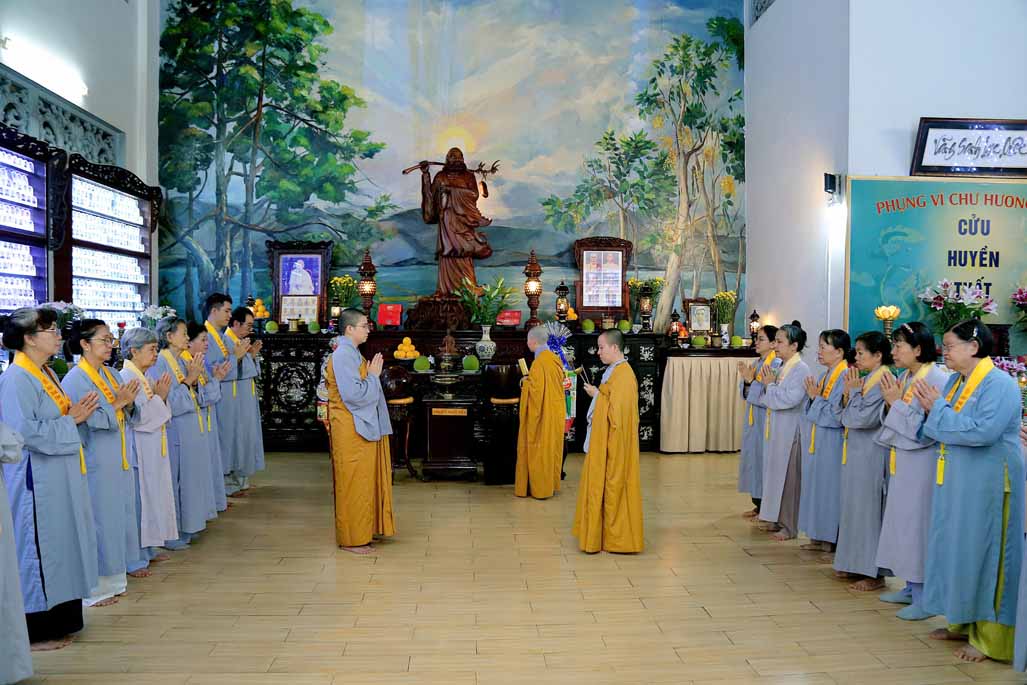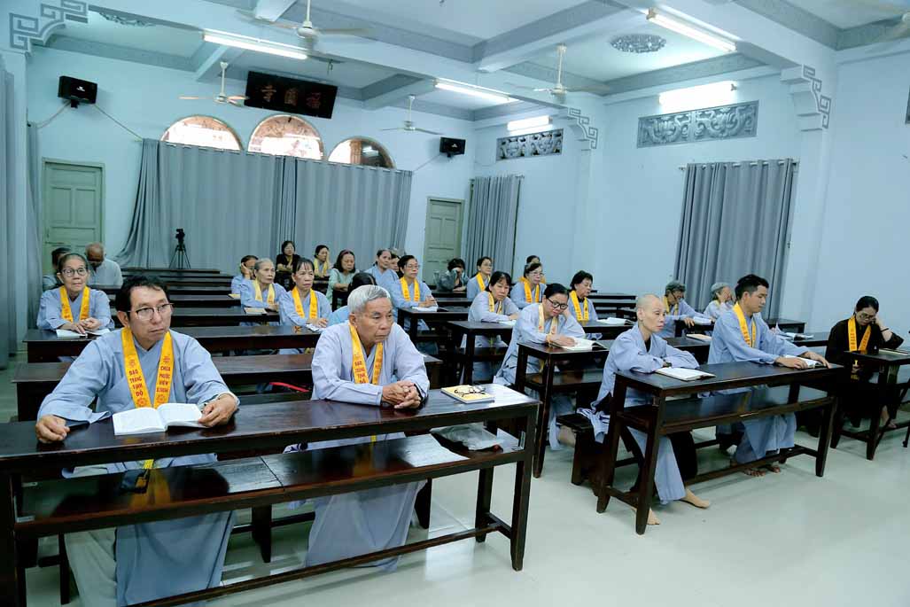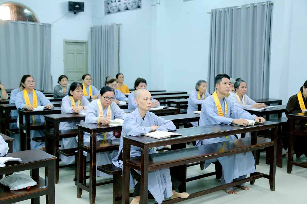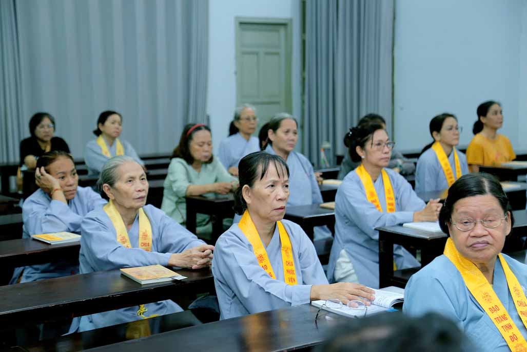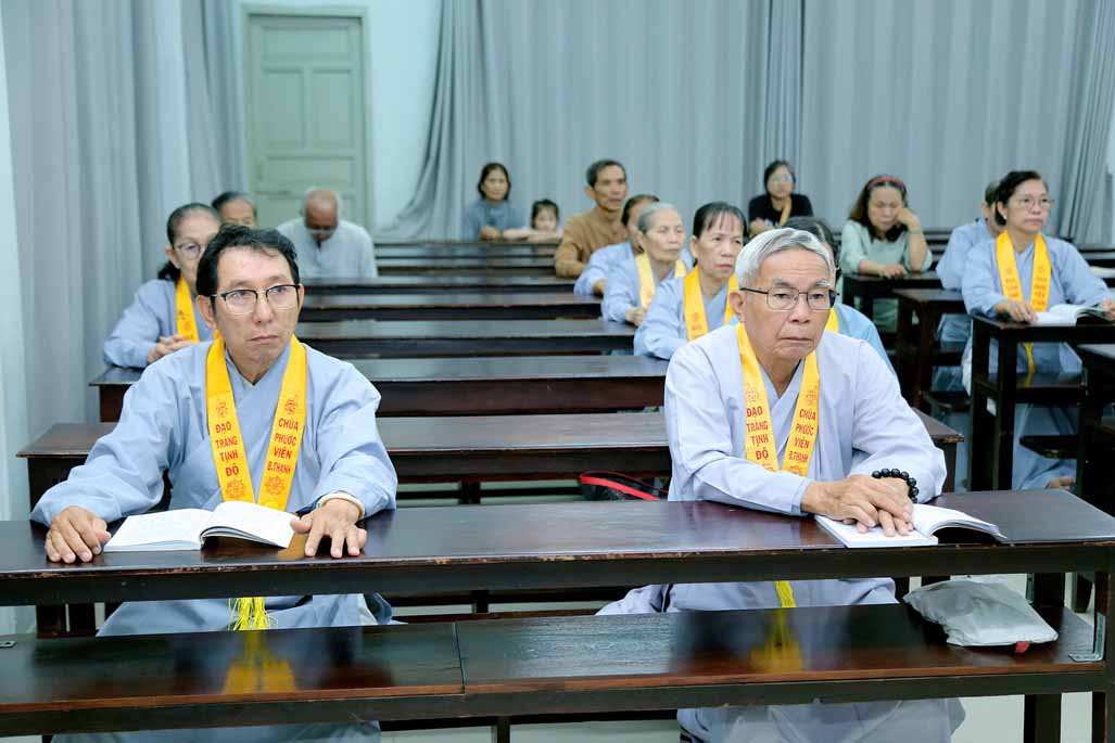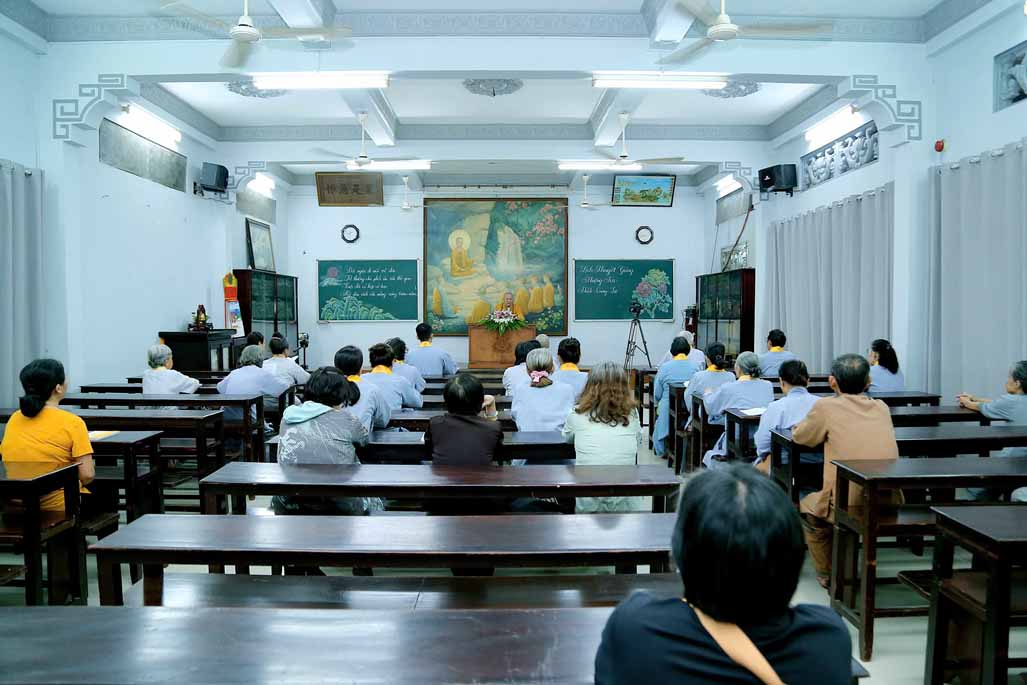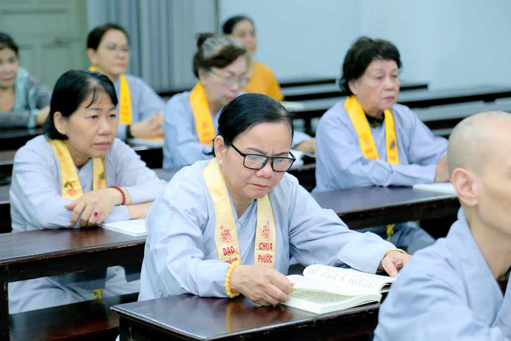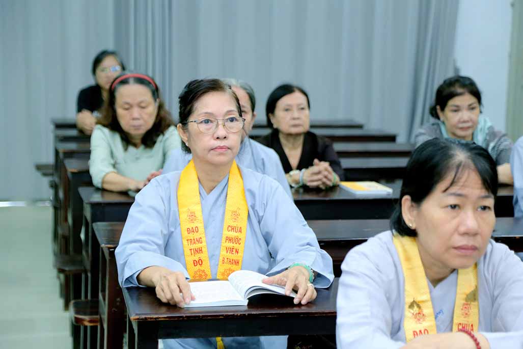 Tiếp nối thời Pháp thoại, là thời khóa niệm Phật dưới sự hướng dẫn của chư Tôn đức Ni tại bổn tự. Khóa tu “Ngày An Lạc” tại chùa Phước Viên luôn được duy trì, nhằm tạo điều kiện cho hành giả có thêm thời gian trau dồi đạo hạnh, góp phần lan tỏa những giá trị tốt đẹp của Phật giáo trong cộng đồng. Buổi tu học đã diễn ra trong không khí trang nghiêm, thanh tịnh và kết thúc viên mãn, để lại nhiều niềm hoan hỷ trong lòng người tham dự.