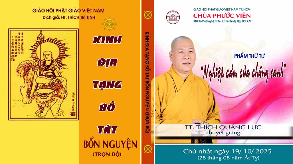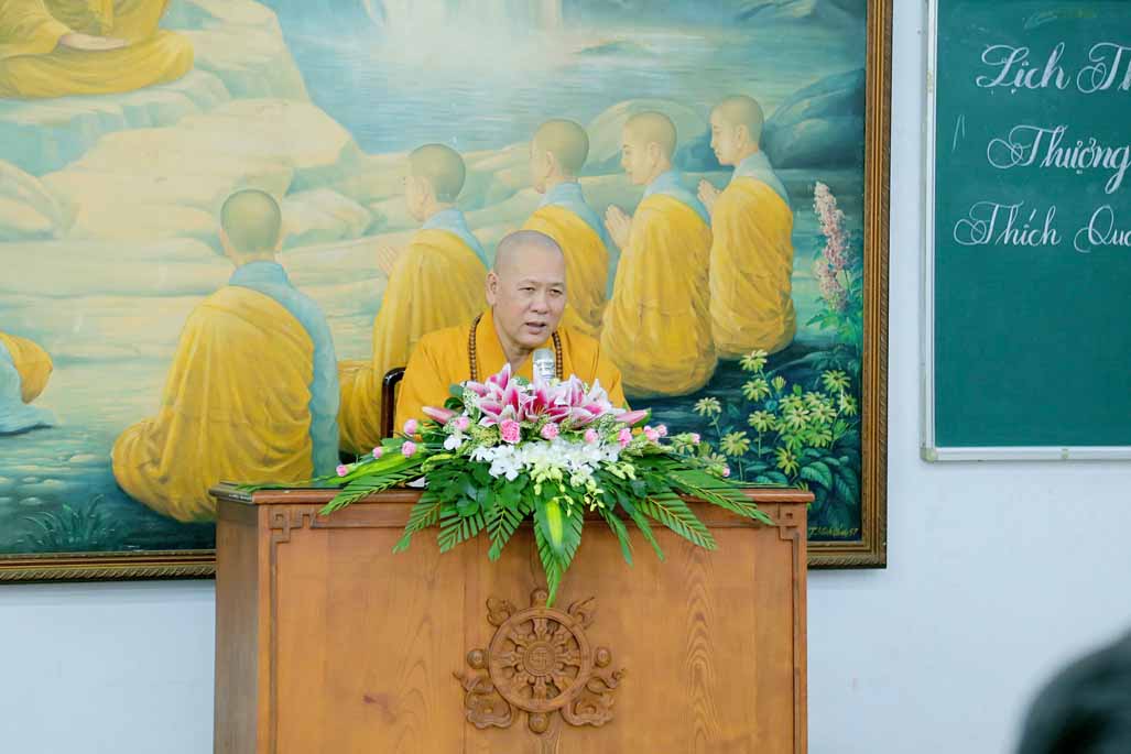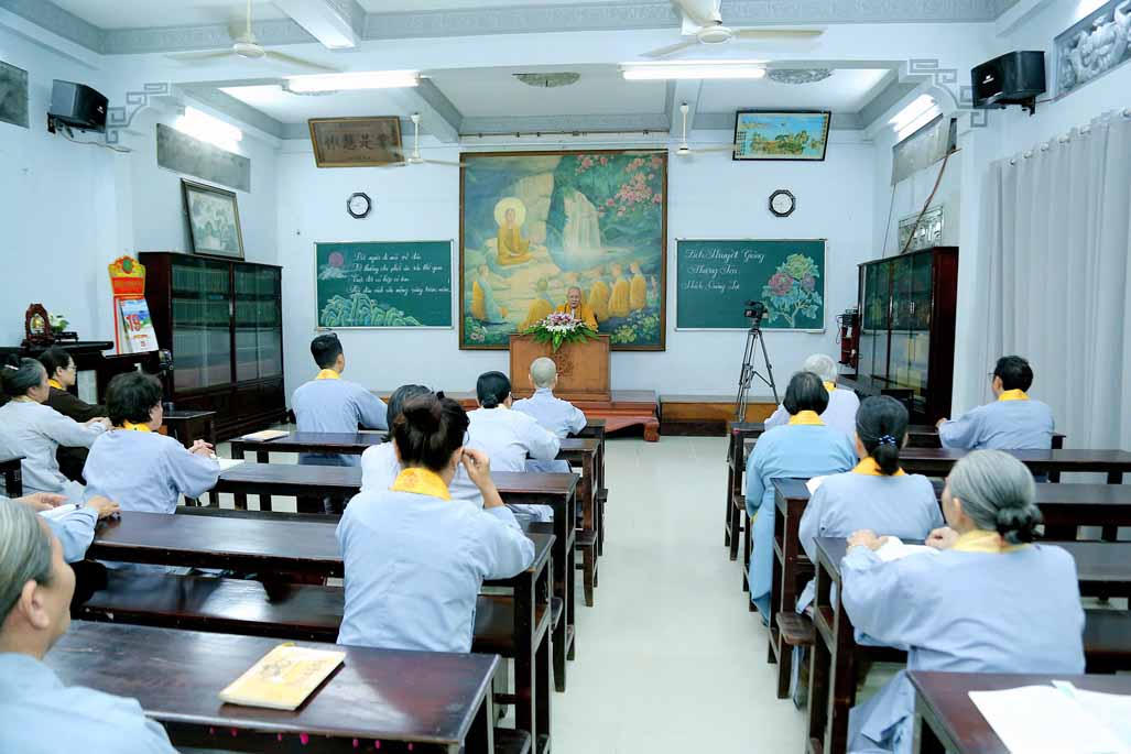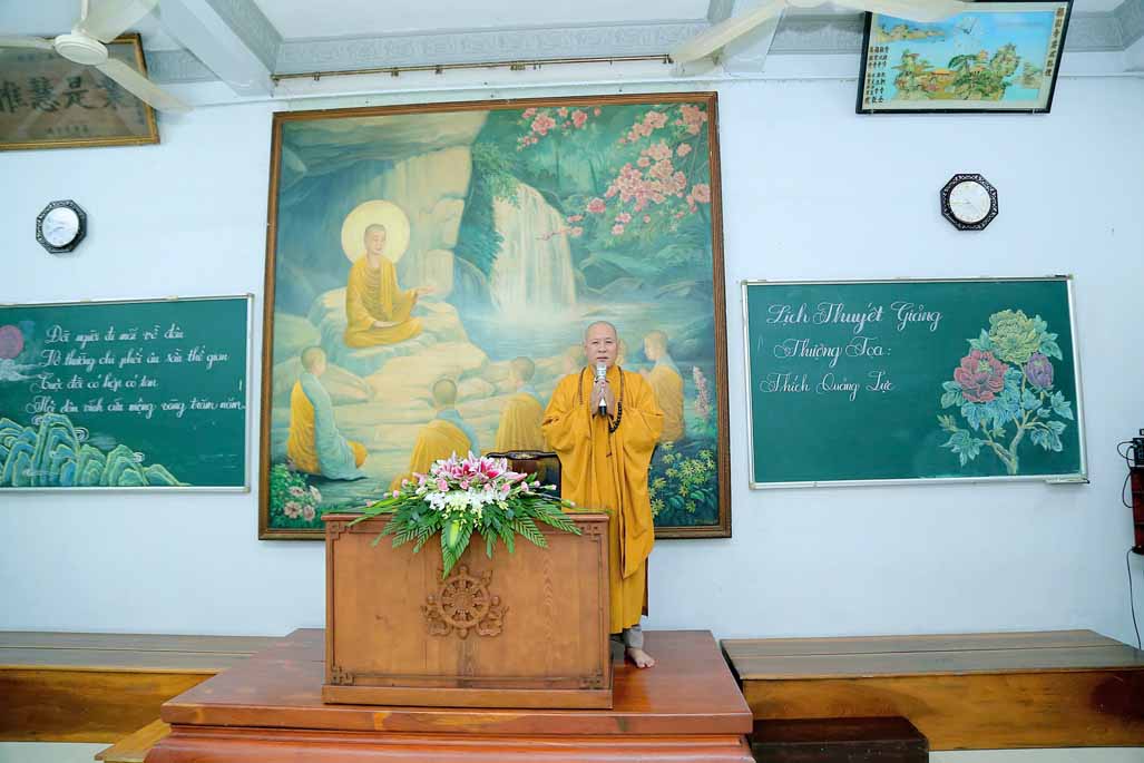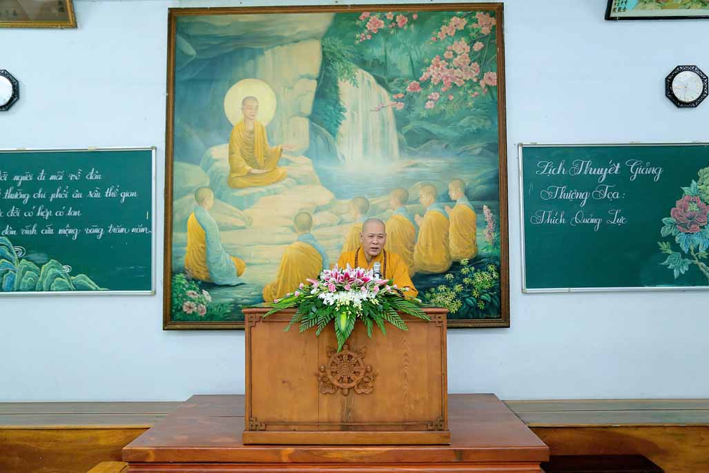 Trong chương trình tu học, Thượng tọa Thích Quảng Lực đã quang lâm thuyết giảng thời pháp thoại Kinh Địa tạng Bồ Tát bổn nguyện – phẩm thứ 4: “Nghiệp cảm của chúng sinh”.