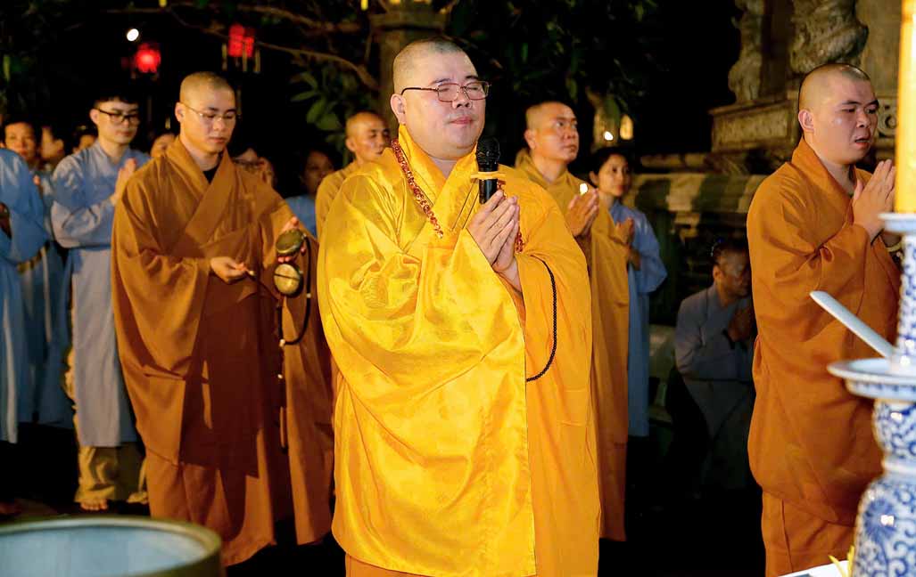 Tại đây Thượng tọa trụ trì cùng chư Tôn đức Tăng tại Bổn tự đã hướng dẫn quý Phật tử niêm hương bạch Phật, trì chú Đại Bi và đảnh lễ ngũ bách danh Bồ tát Quán Thế Âm, nguyện cầu hòa bình thế giới, quốc thái dân an, mưa thuận gió hòa, nhân dân an lạc.