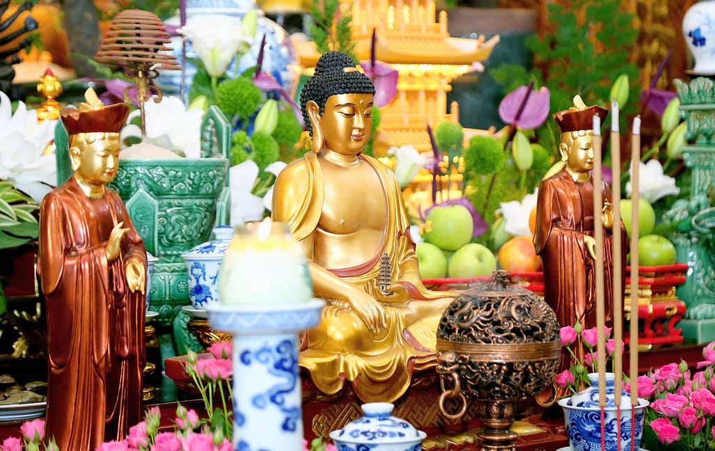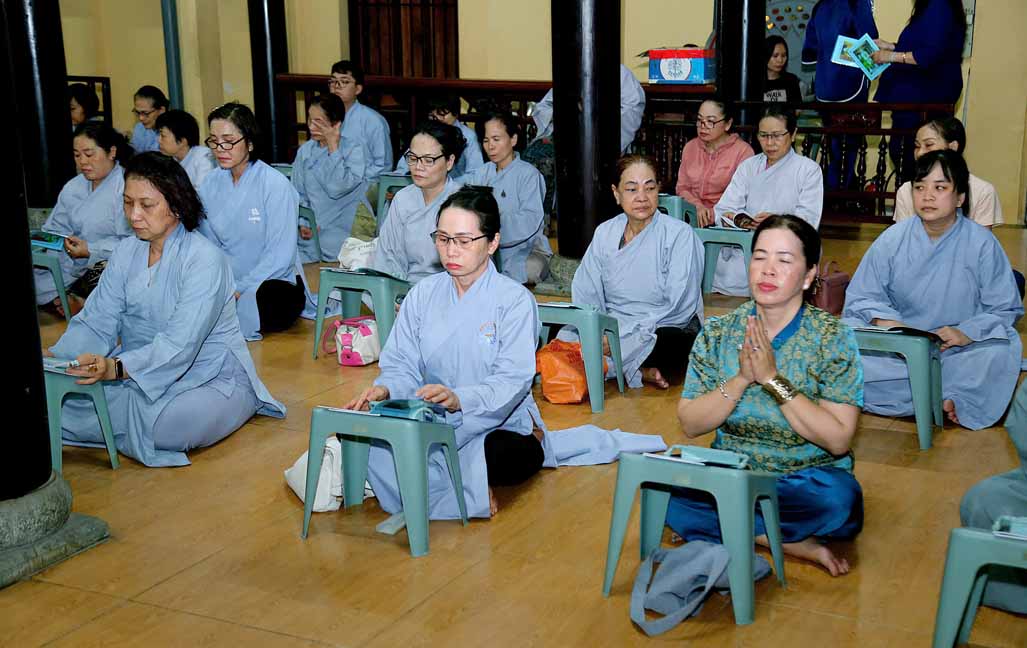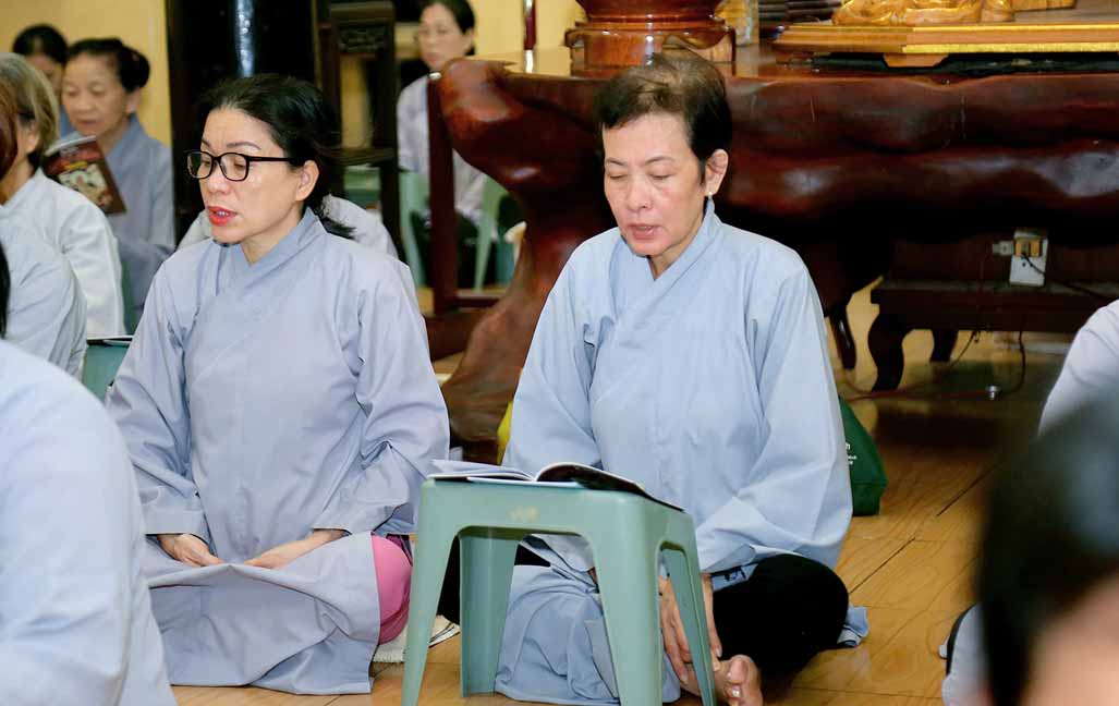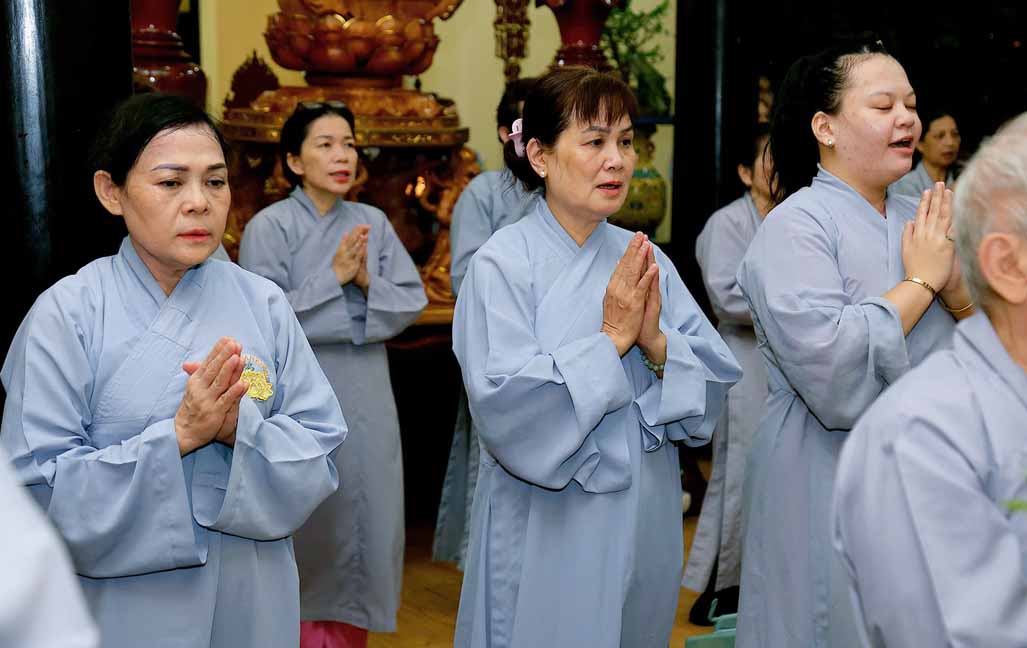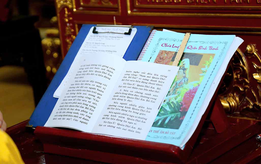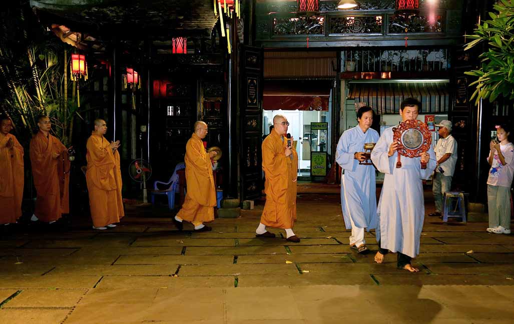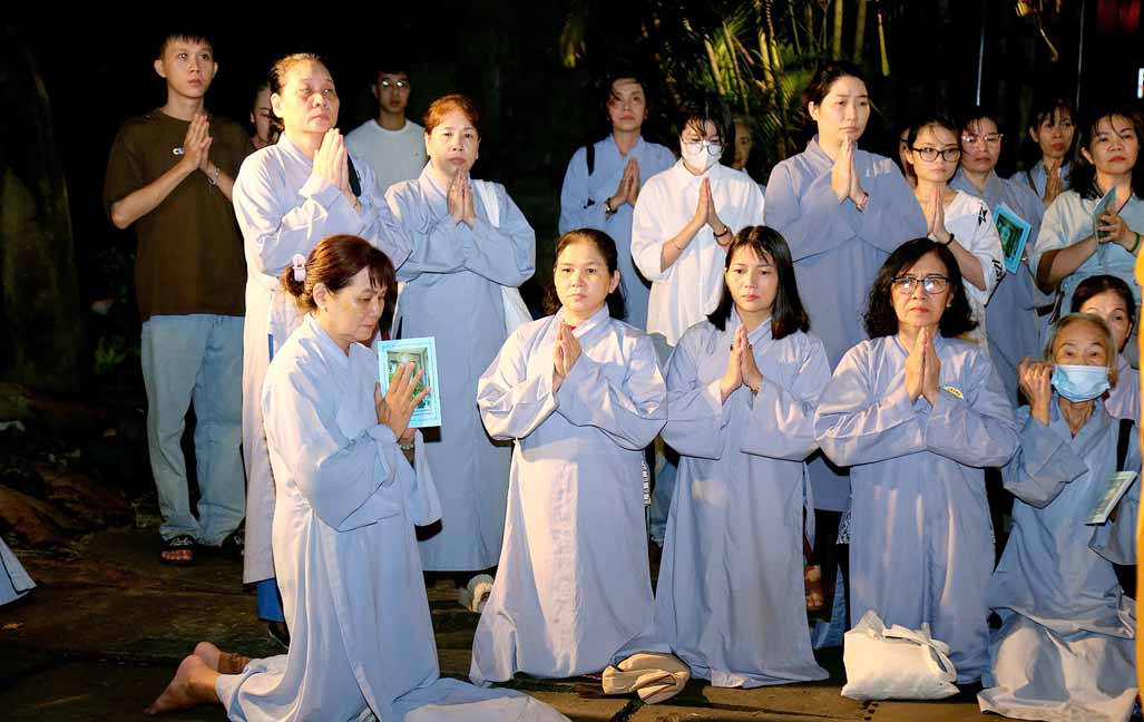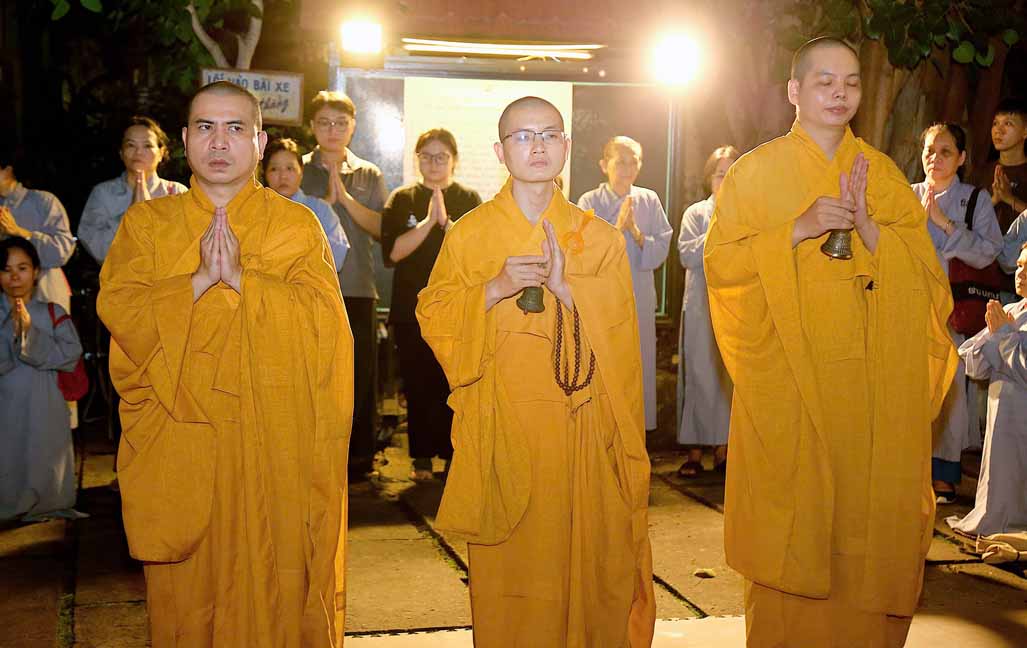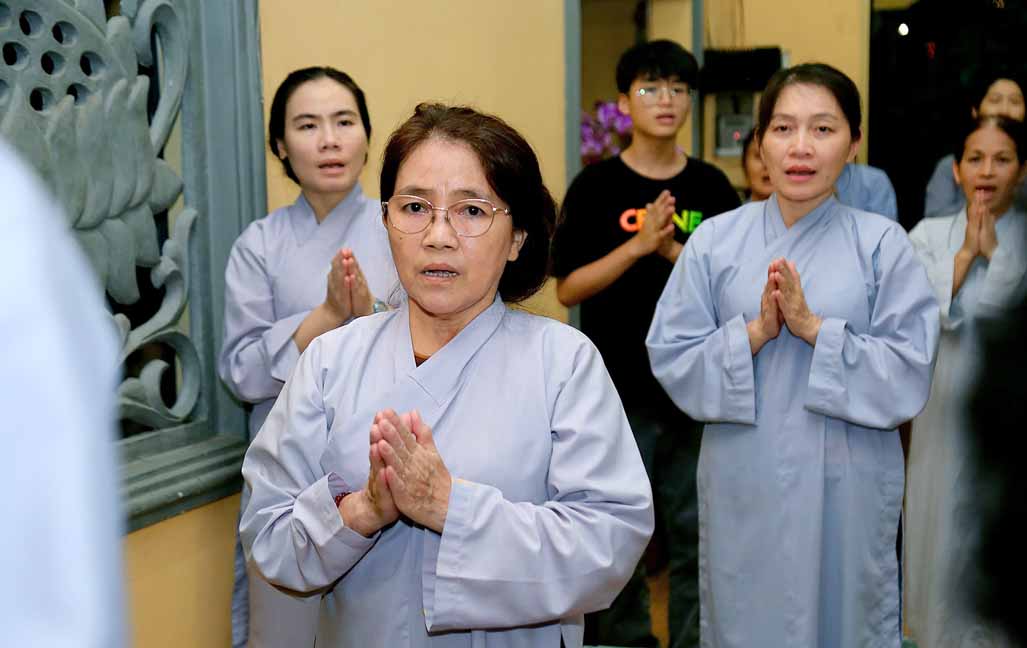 Tại đây Thượng tọa trụ trì cùng chư Tôn đức Tăng tại Bổn tự đã hướng dẫn quý Phật tử niêm hương bạch Phật, trì chú Đại Bi và đảnh lễ ngũ bách danh Bồ tát Quán Thế Âm, nguyện cầu hòa bình thế giới, quốc thái dân an, mưa thuận gió hòa, nhân dân an lạc.