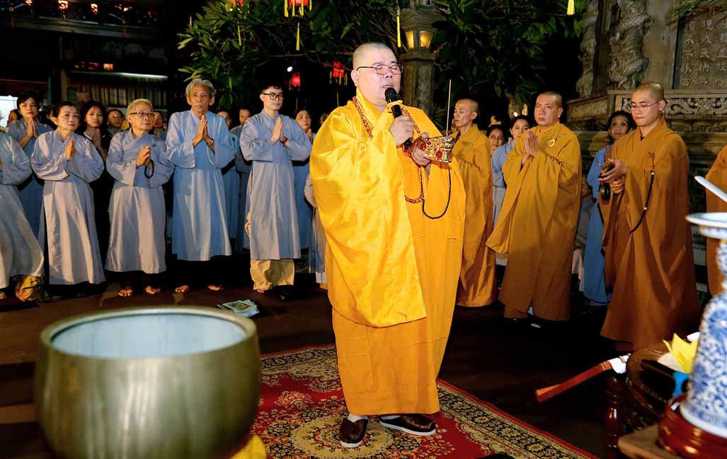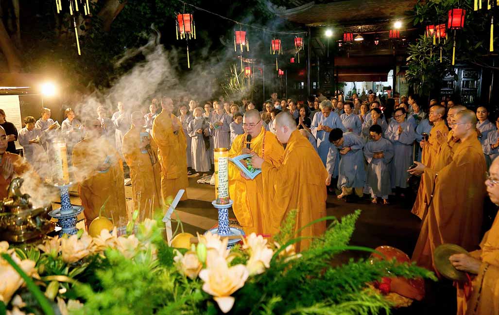 Buổi lễ trang nghiêm được sự chủ trì của Thượng tọa Thích Bửu Đăng – Uỷ viên Thường trực Ban Nghi Lễ Trung ương, trụ trì chùa Long Vân cùng chư Tôn đức Tăng tại bổn Tự và đông đảo Phật tử tham dự.