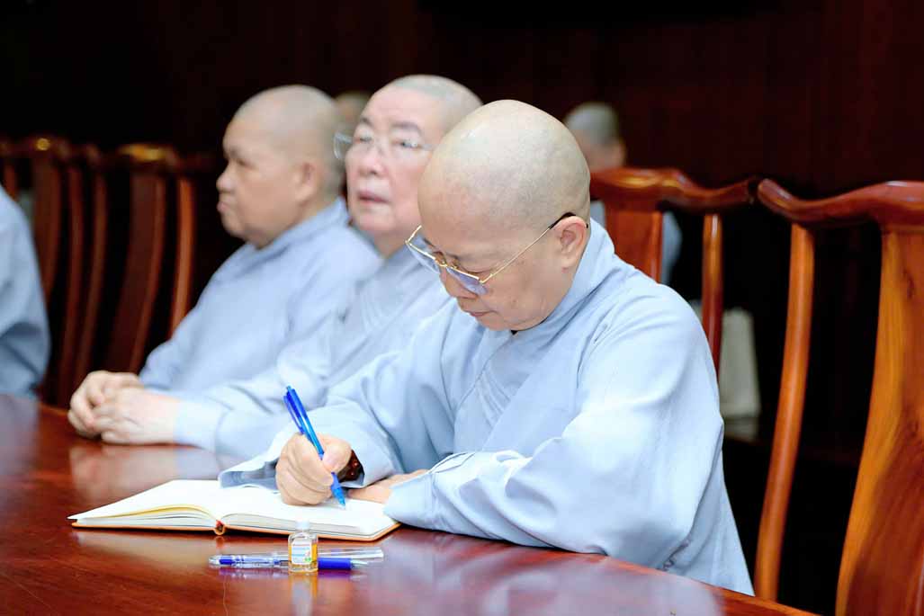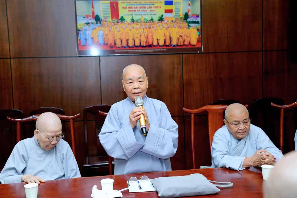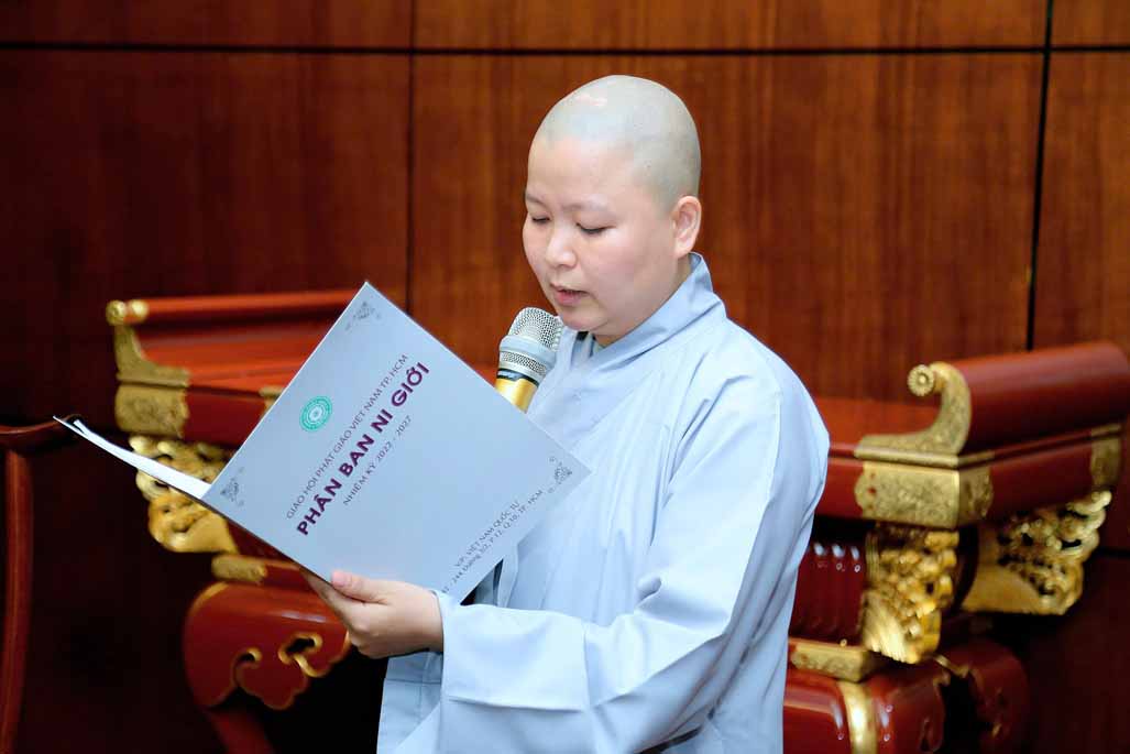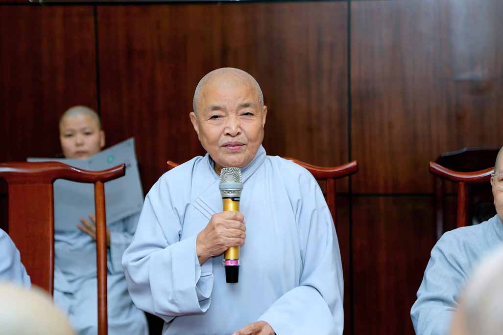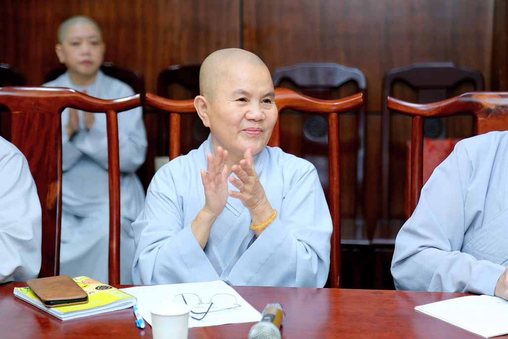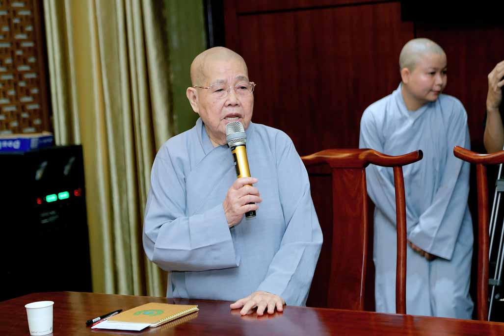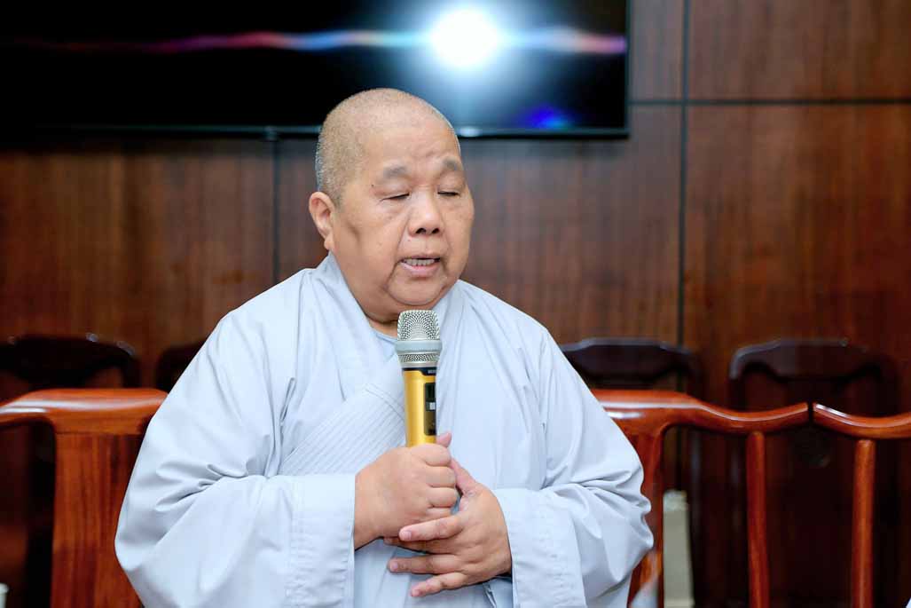 Phát biểu khai mạc buổi họp, Ni trưởng Thích Từ Nhẫn nhấn mạnh về tinh thần từ bi, trách nhiệm đối với cộng đồng và sự cần thiết thực hiện nhanh chóng của Ni giới TP. HCM đối với đồng bào bị thiên tai tại miền trung. Ni trưởng kêu gọi toàn thể Ni giới TP. HCM cùng chung tay, tích cực đóng góp công sức và tịnh tài để giúp đỡ người dân miền Trung vượt qua khó khăn.
