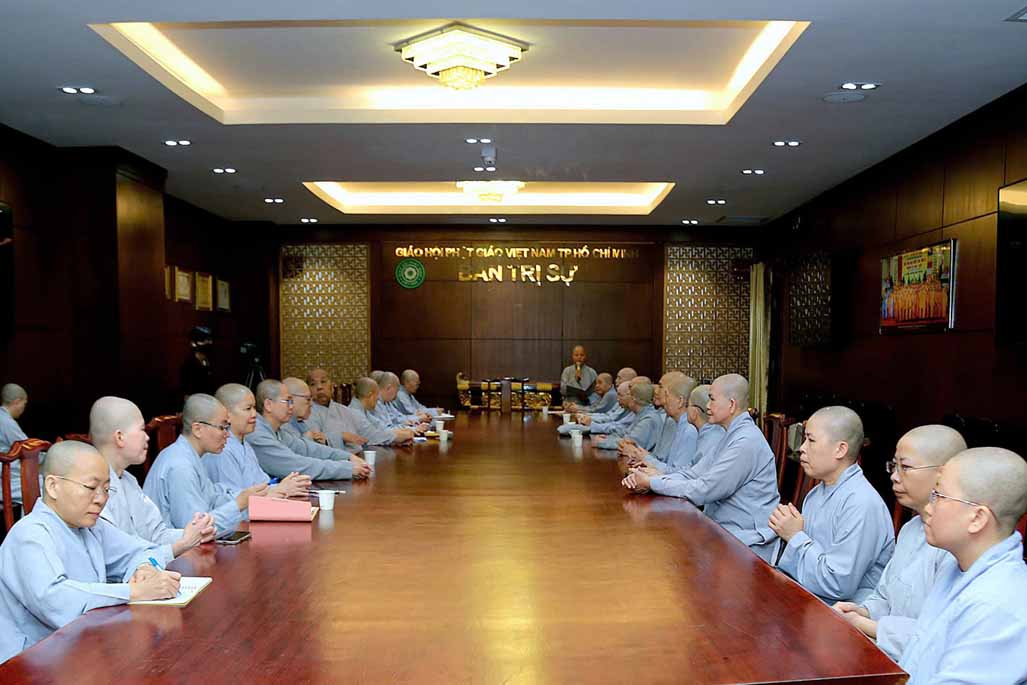 Sáng ngày 07/10, tại Văn phòng BTS GHPGVN TP. HCM (Việt Nam Quốc Tự), PBNG GHPGVN TP. HCM tổ chức buổi họp để triển khai kế hoạch cứu trợ đồng bào miền Trung đang chịu ảnh hưởng nặng nề của lũ lụt.Cuộc họp có sự chủ trì của Ni trưởng Thích Từ Nhẫn – Phó trưởng PBNG Trung ương, Phó BTS, Trưởng PBNG GHPGVN TP. HCM; chư Tôn đức Ni Thường trực PBNG TP. HCM tham dự.