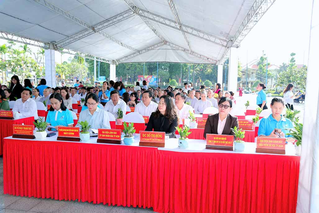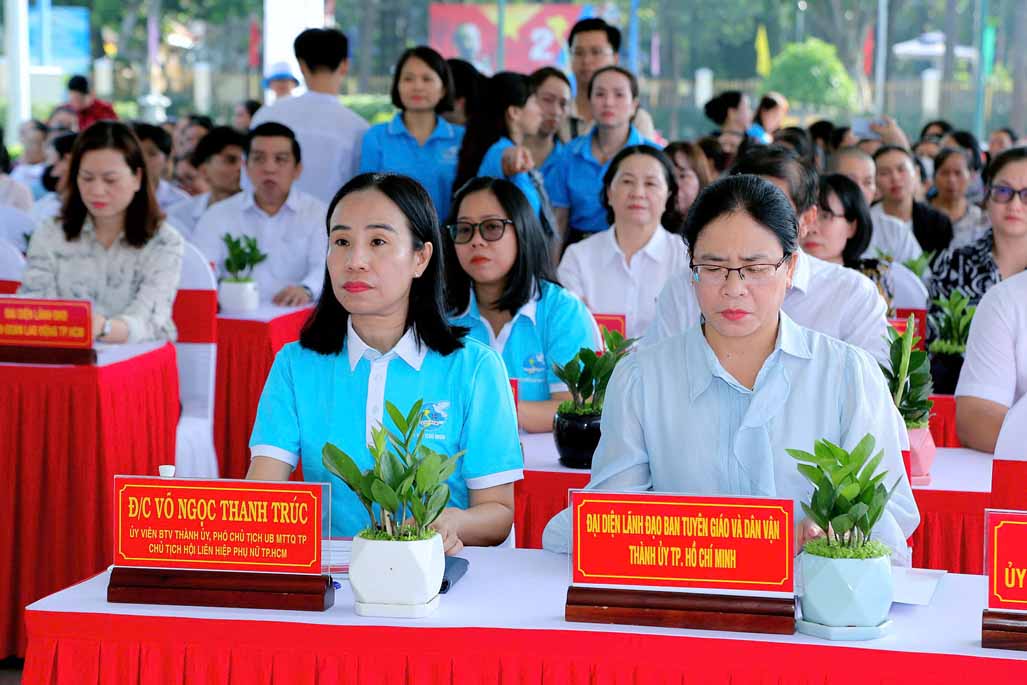 Tham dự có ông Nguyễn Phước Lộc – Phó Bí thư Thành ủy, Chủ tịch Ủy ban MTTQ TP. HCM; ông Trần Văn Tuấn – Ủy viên Ban Thường vụ Thành ủy, Phó Chủ tịch HĐND TP. HCM; bà Võ Ngọc Thanh Trúc – Ủy viên Ban Thường vụ Thành ủy, phó Chủ tịch UBMTTQVN TP. HCM, Chủ tịch Hội LHPN TP. HCM; bà Nguyễn Thị Tuyết Minh – Phó Trưởng Ban Tuyên giáo và Dân vận Thành ủy TP. HCM cùng các ban ngành đoàn thể, đại hiện các cơ sở tôn giáo và hơn 200 hội viên các xã, phường, các em học sinh, sinh viên tham dự.