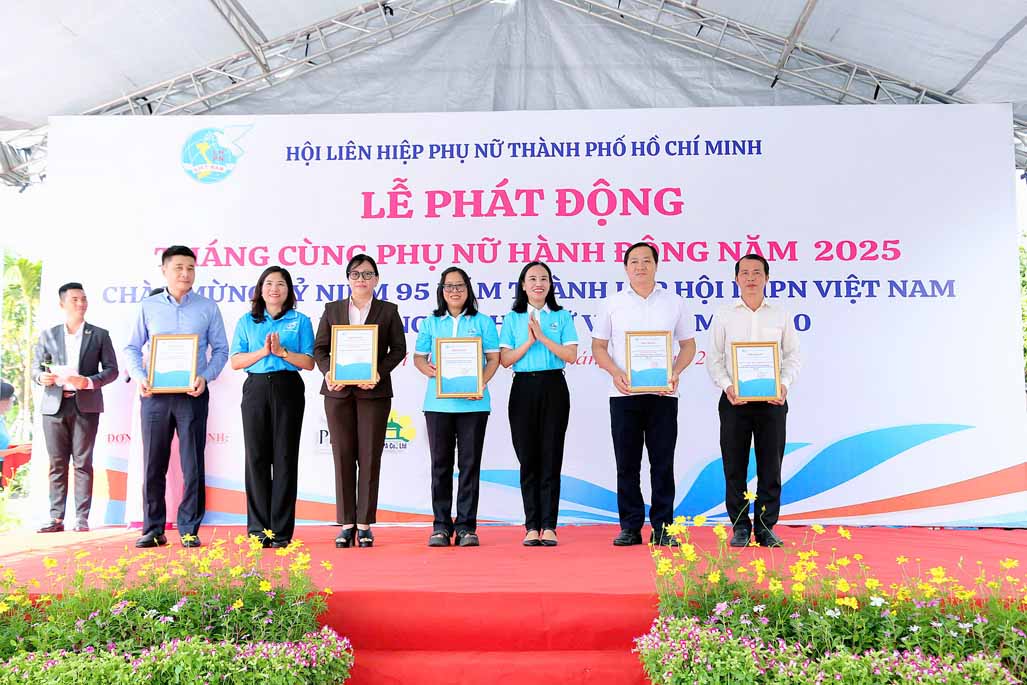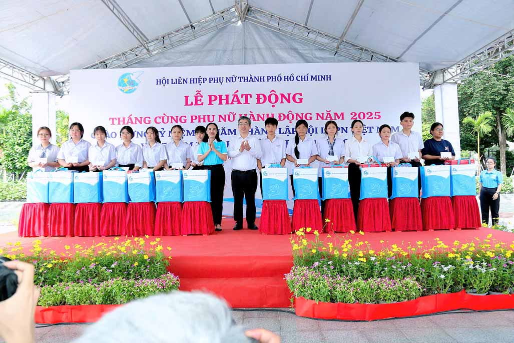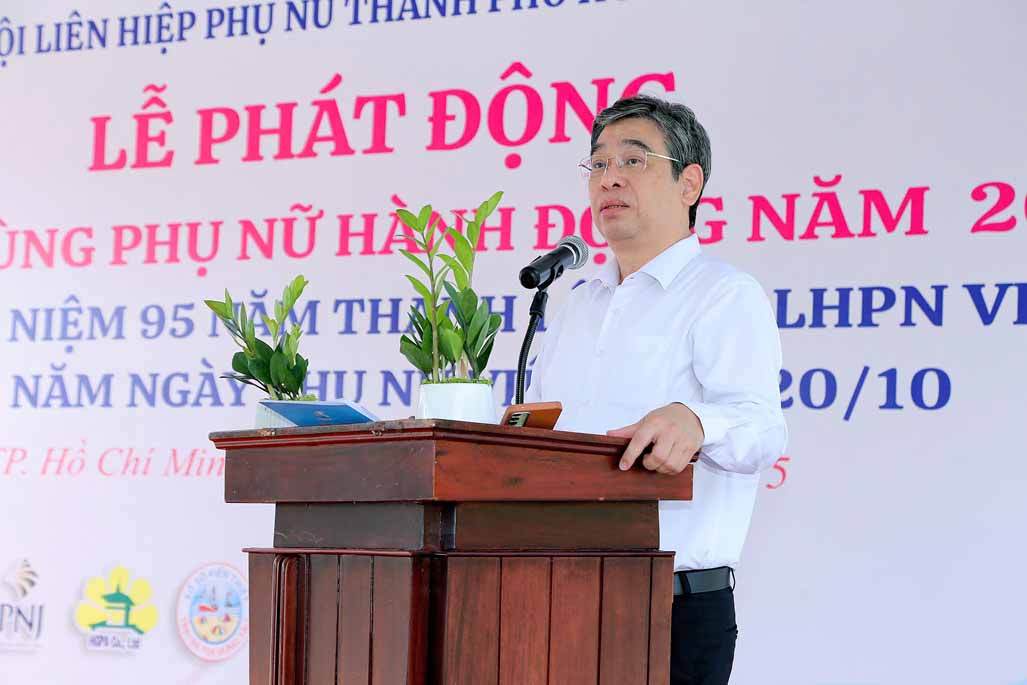 Phát biểu tại buổi lễ, ông Nguyễn Phước Lộc cho biết, Ban Thường vụ Thành ủy TP. HCM, đã ban hành Chỉ thị “Tháng cùng phụ nữ hành động”, trong đó có nêu cao vai trò, trách nhiệm, chức năng và thẩm quyền cấp ủy, tổ chức đảng, lãnh đạo toàn diện để điều hành chính quyền, hỗ trợ, tạo điều kiện cho Hội LHPN đảm đương được các công việc, kêu gọi cộng đồng doanh nghiệp, các tổ chức tôn giáo, đội ngũ trí thức và đồng bào các giới ủng hộ, quan tâm tạo điều kiện để phụ nữ luôn là trụ cột giữ mái ấm của gia đình.
