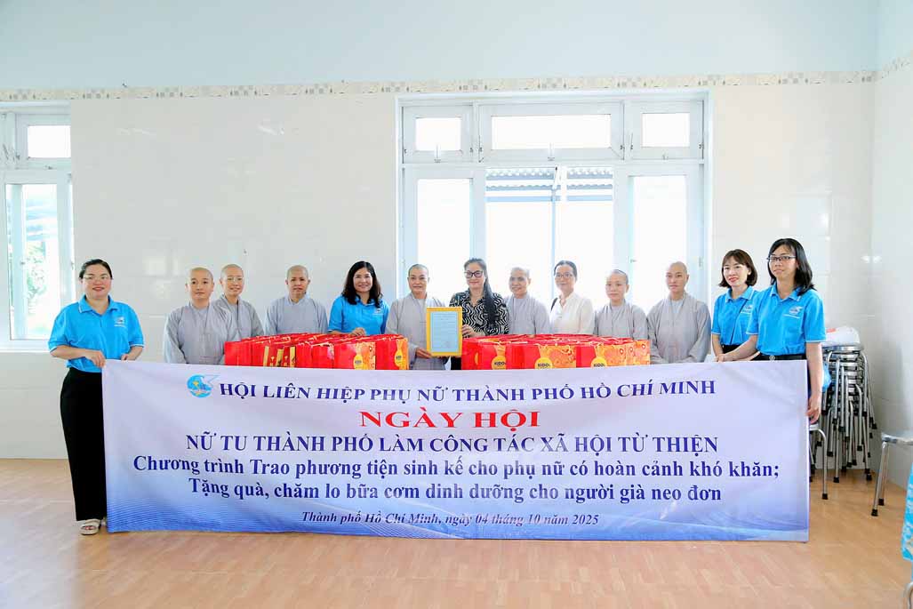 Hội Liên hiệp Phụ nữ Thành phố phối hợp với các cơ sở tôn giáo tổ chức “Ngày hội nữ tu làm công tác xã hội từ thiện” tại Trung tâm Bảo trợ và công tác xã hội cơ sở nuôi dưỡng người già tại ấp An Thạnh, xã Long Điền với hoạt động trao tặng quà và tổ chức bữa cơm dinh dưỡng dành cho các cụ già neo đơn.