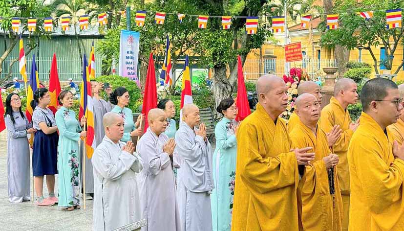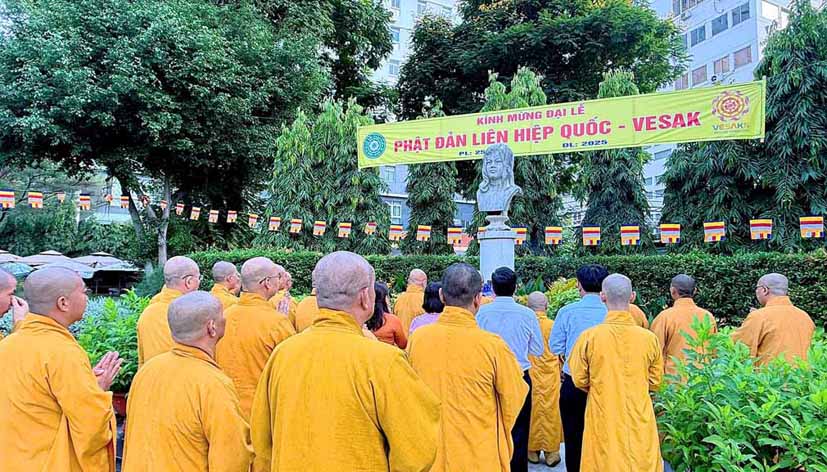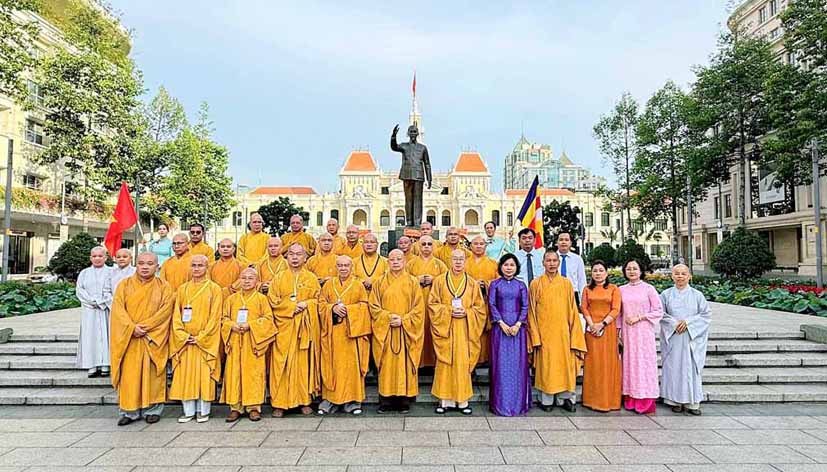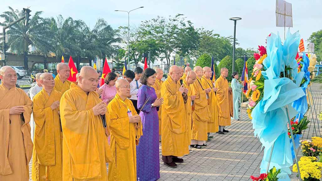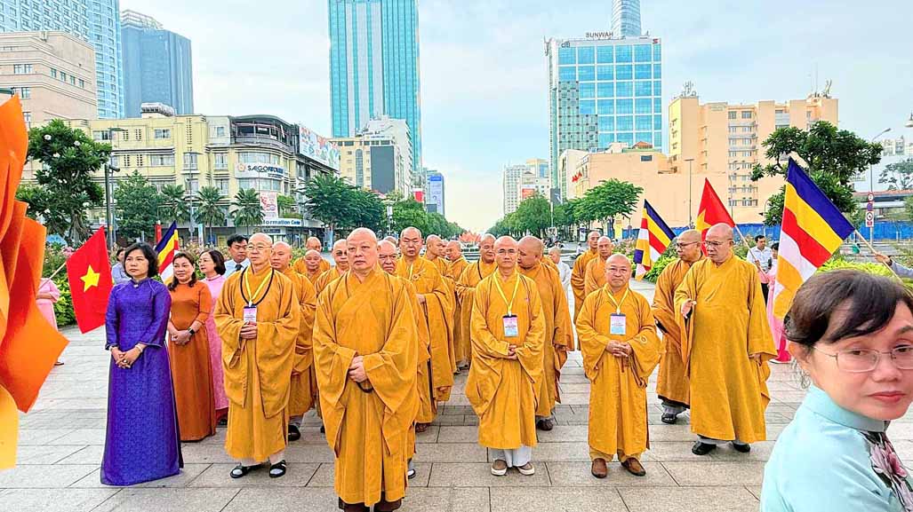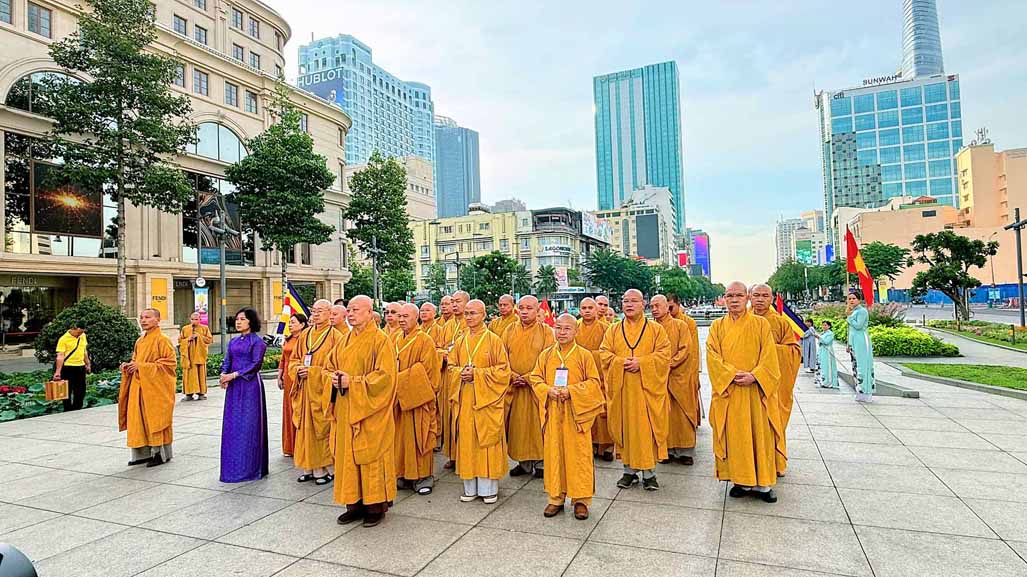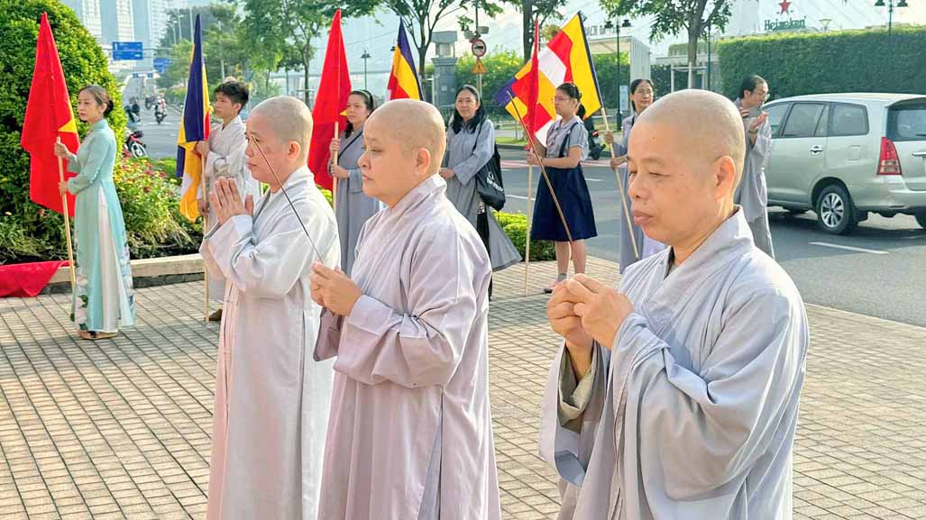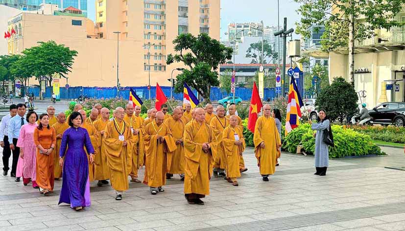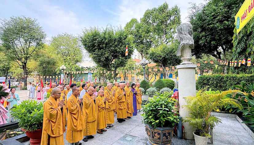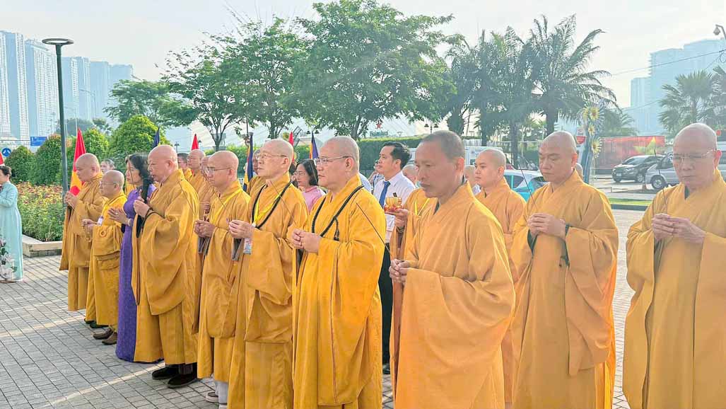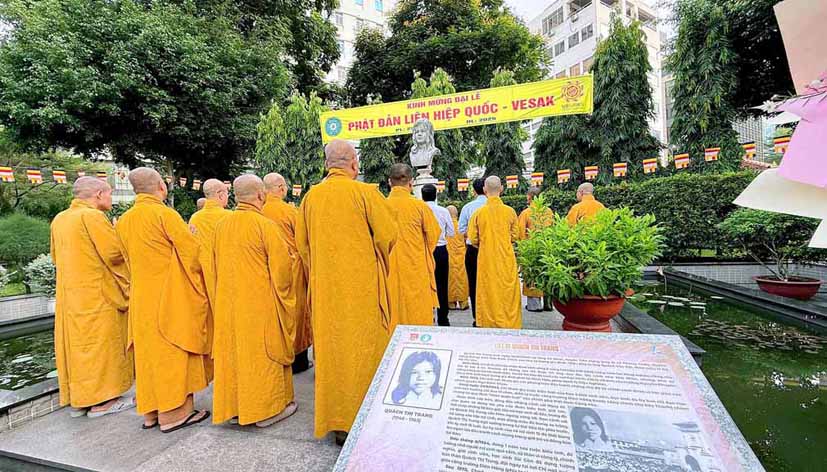 Sáng nay 11 – 5 – 2025 (14 tháng 4 năm Ất Tỵ). Ban Thường trực BTS GHPGVN TP. HCM và các BTS Phật giáo Q.1, Q. 4, Q. Phú Nhuận cùng đại diện chính quyền Quận uỷ, HĐND, UBMTTQVN Q.1 và chư Tôn Đức Tăng Ni, Phật tử các tự viện Q.1, đã đến đặt vòng hoa và thắp hương tưởng niệm tại Tượng đài Bác Hồ, tượng đài Đức thánh Trần Hưng Đạo và tượng đài Liệt nữ Quách Thị Trang (Q.1).