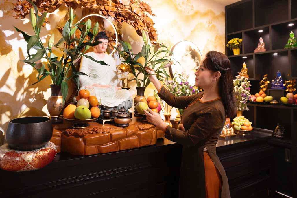 Lễ khởi sự trong không khí ấm cúng, đầy đạo vị. Tại không gian thờ Phật trang nghiêm trong tư gia, gia chủ bố trí tượng Phật, hoa, nến; các thành viên gia đình và khách mời cùng nhau thực hiện nghi thức tụng niệm tưởng niệm ngày đức Phật giác ngộ. Trong chương trình, những thời kinh được đồng tụng niệm, xen kẽ là lời chia sẻ nhẹ nhàng về ý nghĩa ngày thành đạo.