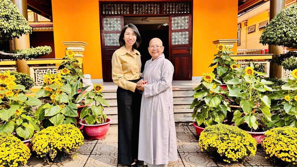 Thân mật đón tiếp đoàn có Ni sư TN. Từ Thảo – Ủy viên HĐTS, Phó trưởng Phân ban kiêm Trưởng ban Pháp chế Phân ban Ni giới T.Ư, Phó ban Trị sự kiêm Phó ban Thường trực Ban Kinh tế Tài chánh GHPGVN TP.HCM, Trụ trì Chùa Bồ Đề Đạo Tràng, cùng chư Ni trong Bổn tự.