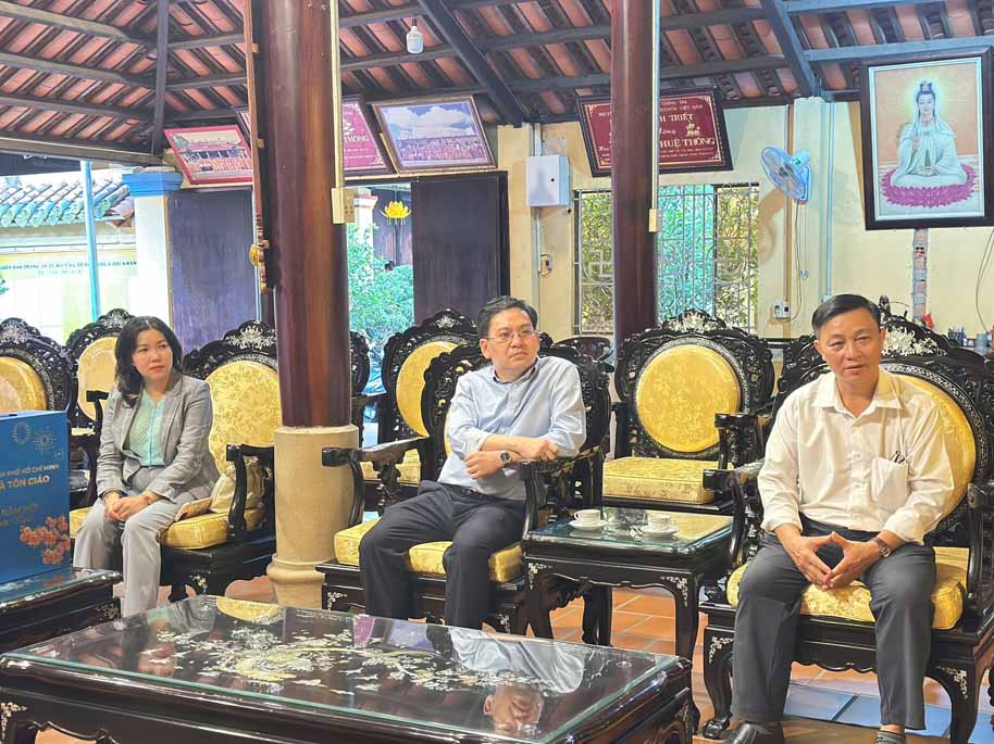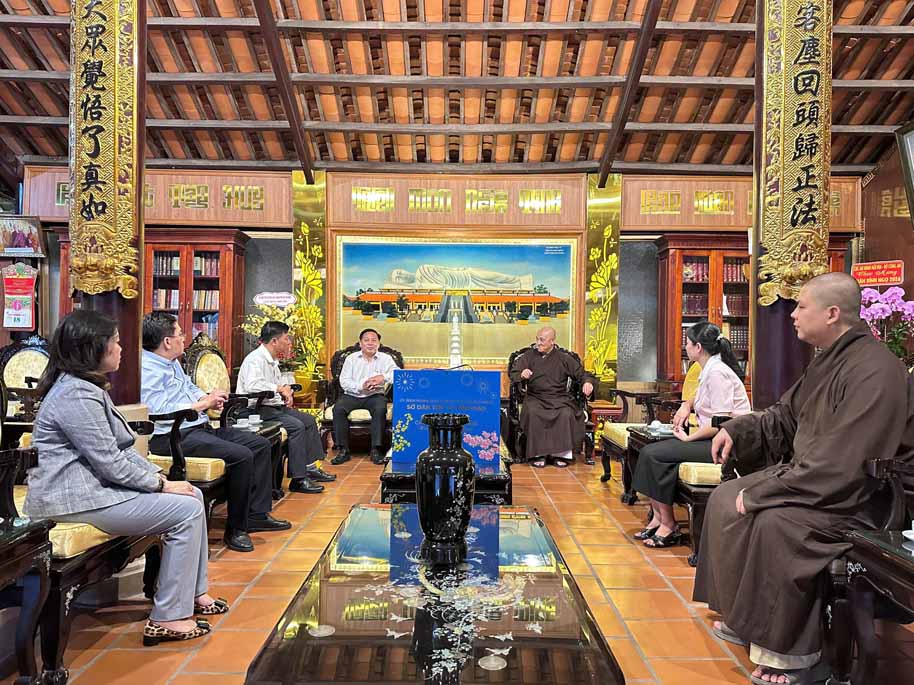 Và đoàn tiếp tục đến thăm các chùa: Chùa Thiên Chơn do TT. Thích Chơn Phát – Ủy viên HĐTS, Phó ban Trị sự kiêm Phó ban Thường trực Ban Giáo dục Phật giáo TP.HCM, Trụ trì Chùa; Chùa Phước Thạnh do TT. Thích Minh Chí – Phó ban Thường trực Ban Nghi lễ Phật giáo TP.HCM, Trụ trì chùa; Chùa Tổ Long Hưng do Đại đức Thích Thiện Hưng – Phó ban Trị sự kiêm Phó ban Thường trực Ban Thông tin Truyền thông GHPGVN TP.HCM, Trụ trì Chùa; Chùa Bồ Đề Đạo Tràng do Ni sư TN.Từ Thảo – Ủy viên HĐTS, Phó trưởng Phân ban kiêm Trưởng ban Pháp chế Phân ban Ni giới T.Ư, Phó ban Trị sự kiêm Phó ban Thường trực Ban Kinh tế Tài chánh GHPGVN TP.HCM, Trụ trì Chùa; Chùa Phước Tường….