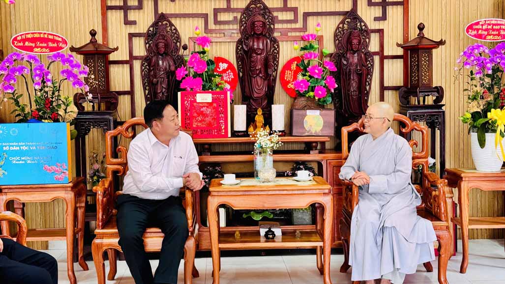 Tại buổi gặp mặt, Ông Phó Giám đốc Sở Dân tộc và Tôn giáo Thành phố Hồ Chí Minh gửi lời chúc mừng năm mới Xuân Bính Ngọ 2026 đến chư Tôn đức Tăng Ni, Phật tử, cầu chúc sức khỏe dồi dào, thành tựu các công tác Phât sự, hạnh phúc viên mãn và bình an trong cuộc sống. Theo đó, ông chia sẻ, với TP.HCM sau sáp nhập, ông Nguyễn Khánh Toàn bày tỏ mong muốn chư Tôn đức Tăng Ni sẽ tiếp tục đồng hành với Sở Dân tộc và Tôn giáo Thành phố Hồ Chí Minh và các ban ngành, cũng như làm chiếc cầu nối giữa Tăng Ni, tín đồ Phật giáo với Thành phố trong việc thực hiện các chính sách về tôn giáo, tín ngưỡng và phản ánh tâm tư nguyện vọng của Tăng Ni, tín đồ Phật tử đối với sự ổn định và phát triển chung.