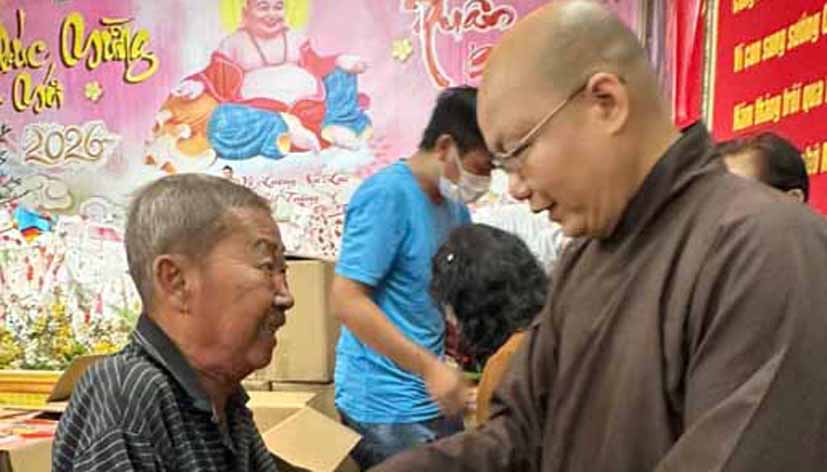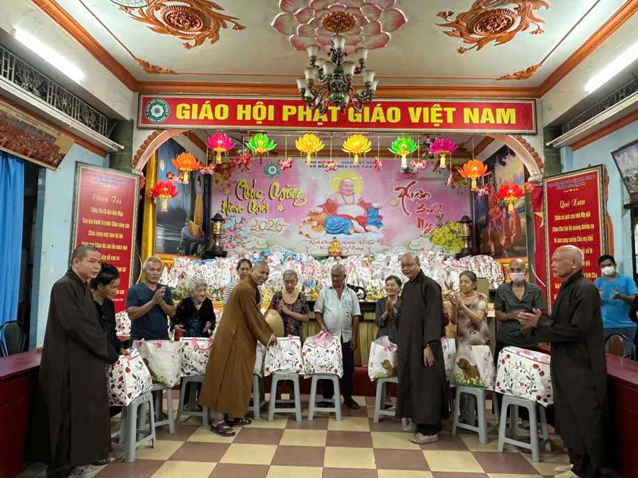 Buổi chiều cùng ngày, Tổ đình tổ chức trao 450 phần quà đến Phật tử và các hộ gia đình có hoàn cảnh khó khăn tại địa phương nhân dịp Tết cổ truyền Bính Ngọ (2026). Những phần quà xuân thể hiện tinh thần từ bi, sẻ chia của Phật giáo, góp phần mang lại niềm vui, sự ấm áp cho bà con trong những ngày cuối năm.