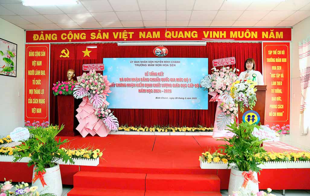 Tại buổi lễ bà Nguyễn Thị Trúc Ly – Phó Trưởng Phòng Giáo dục và Đào tạo huyện Bình Chánh trao Quyết định về công nhận Trường Mầm non Hoa Sen, huyện Bình Chánh đạt Chuẩn Quốc gia mức độ 1 của Giám đốc Sở Giáo dục và Đào tạo thành phố Hồ Chí Minh; Quyết định về công nhận Trường Mầm non Hoa Sen, huyện Bình Chánh đạt kiểm định chất lượng giáo dục cấp độ 2 của Giám đốc Sở Giáo dục và Đào tạo thành phố Hồ Chí Minh.