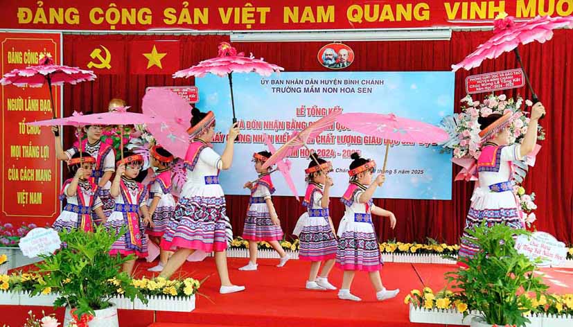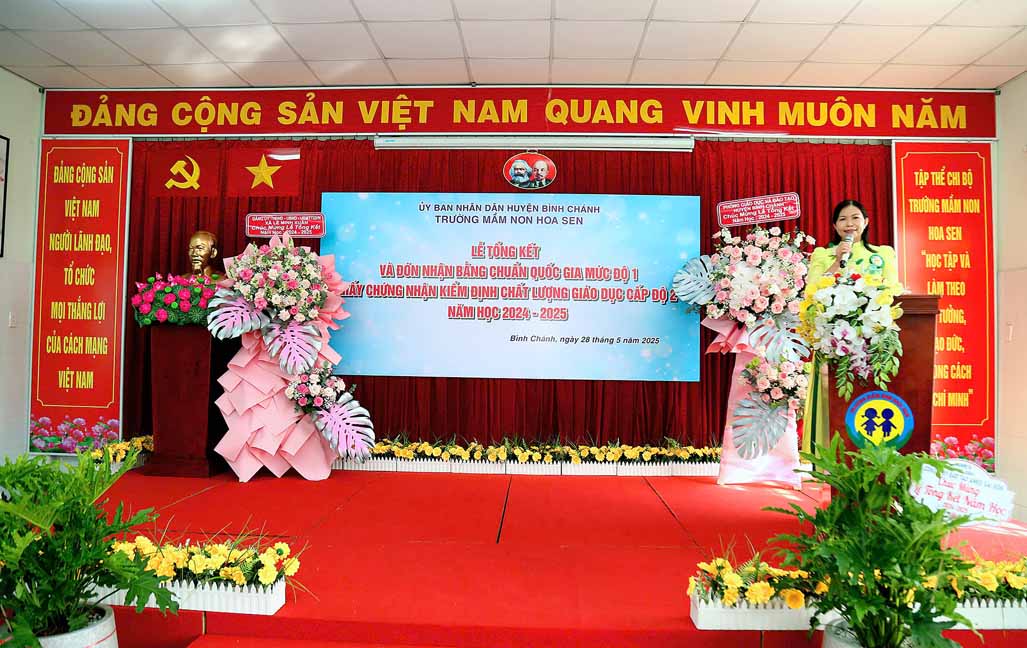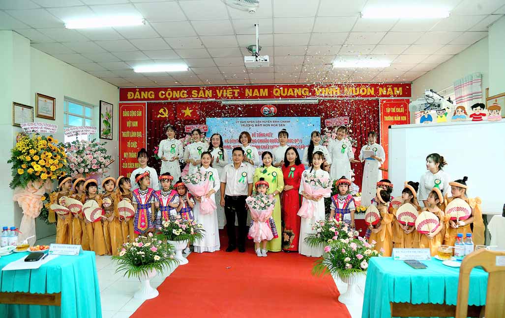 Sáng ngày 28/5/2025 Trường Mầm non Hoa Sen xã Lê Minh Xuân long trọng tổ chức Lễ tổng kết và đón nhận bằng công nhận trường Mầm non Hoa Sen đạt Chuẩn Quốc gia mức độ 1, đạt kiểm định chất lượng giáo dục cấp độ 2 năm học 2024 – 2025.