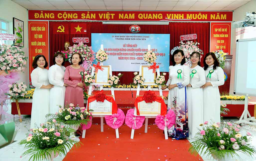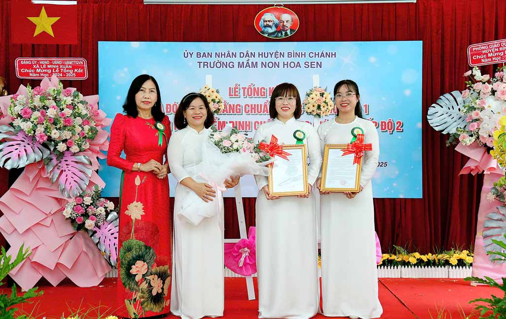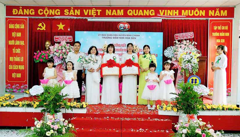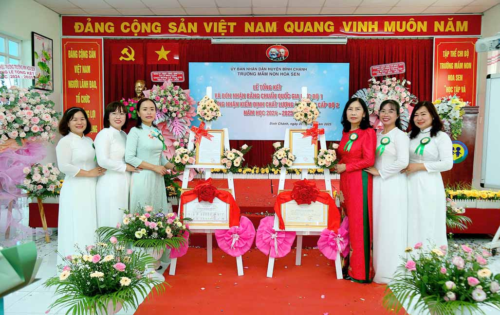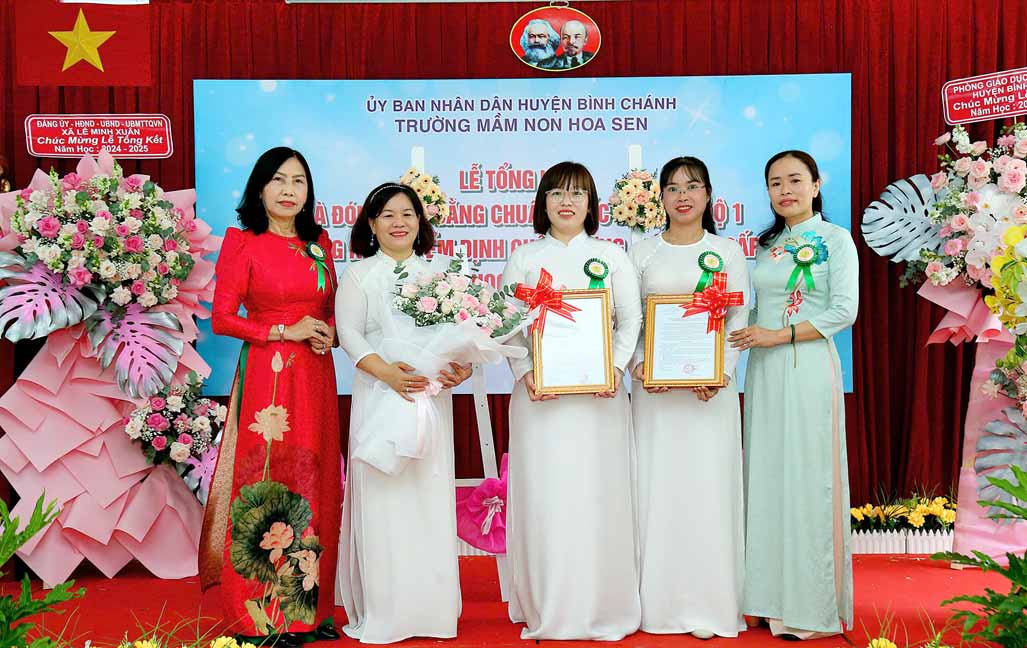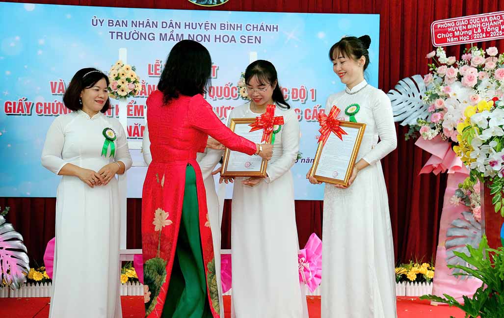 Tại buổi lễ bà Nguyễn Thị Trúc Ly – Phó Trưởng Phòng Giáo dục và Đào tạo huyện Bình Chánh trao Quyết định về công nhận Trường Mầm non Hoa Sen, huyện Bình Chánh đạt Chuẩn Quốc gia mức độ 1 của Giám đốc Sở Giáo dục và Đào tạo thành phố Hồ Chí Minh; Quyết định về công nhận Trường Mầm non Hoa Sen, huyện Bình Chánh đạt kiểm định chất lượng giáo dục cấp độ 2 của Giám đốc Sở Giáo dục và Đào tạo thành phố Hồ Chí Minh.