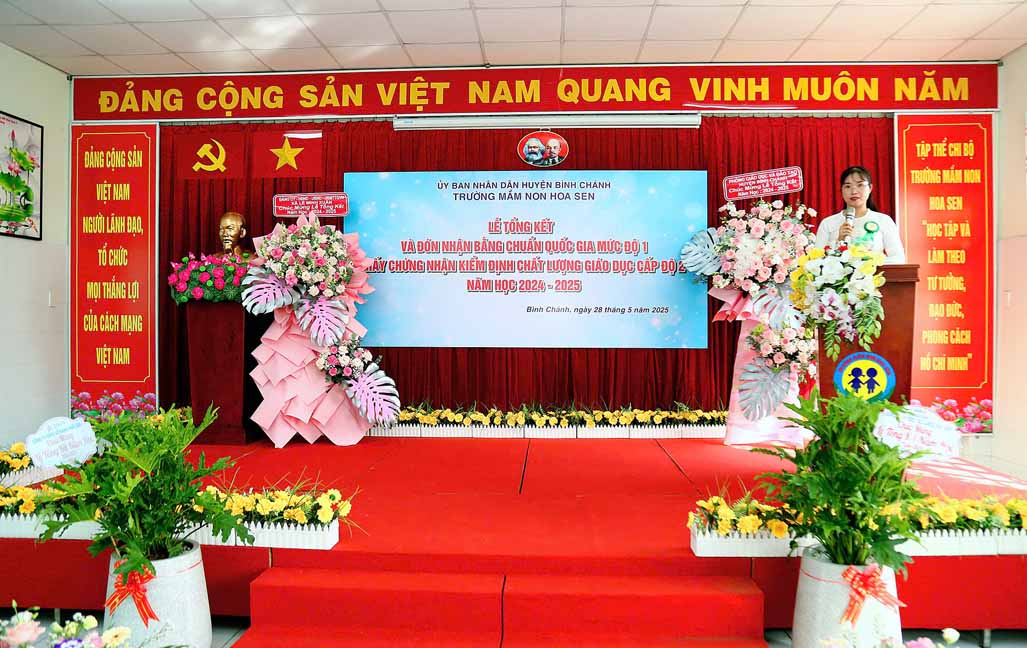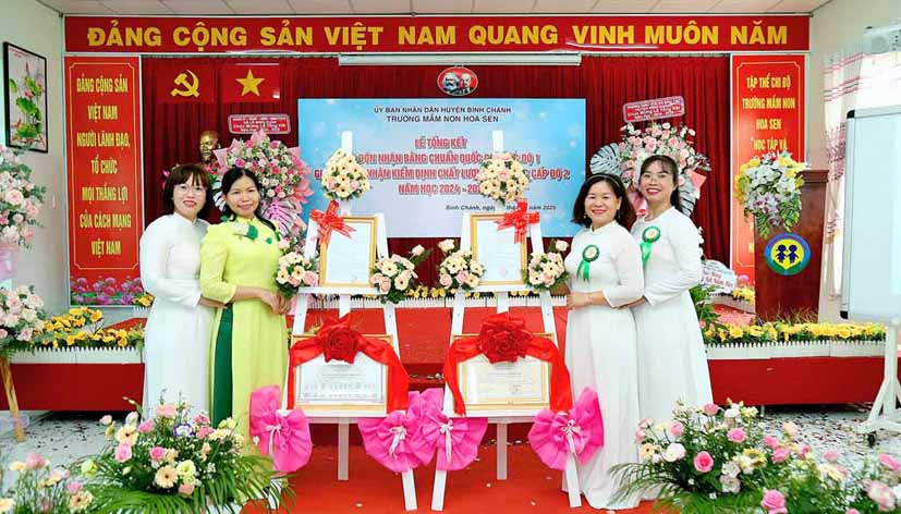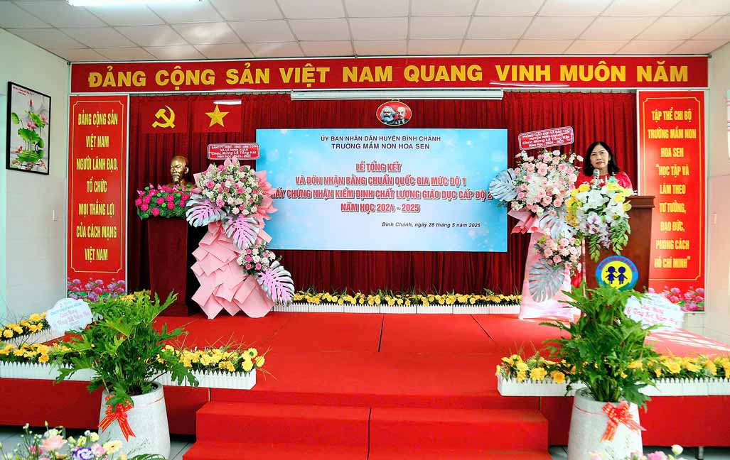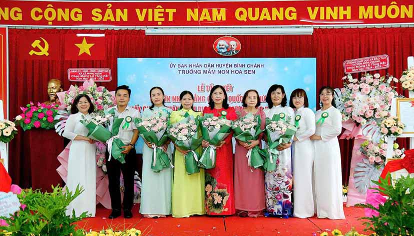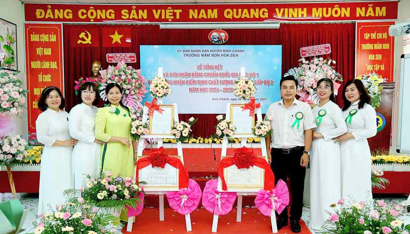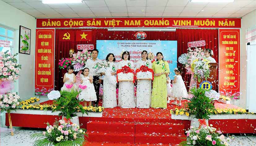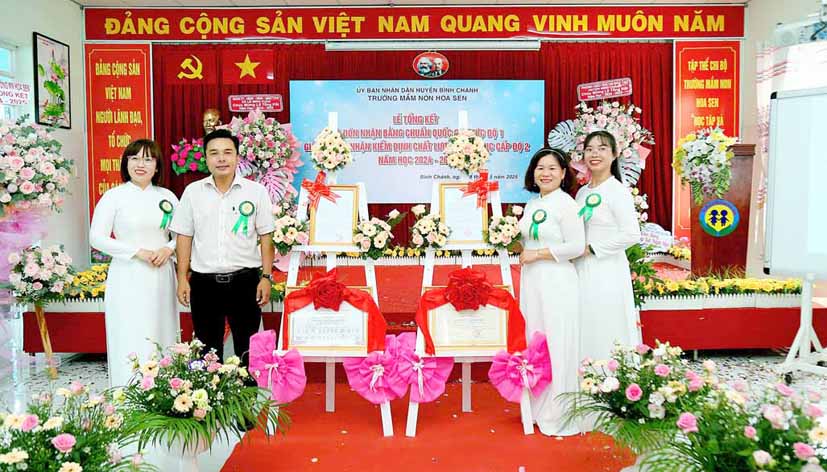 Tại buổi lễ bà Nguyễn Thị Trúc Ly – Phó Trưởng Phòng Giáo dục và Đào tạo huyện Bình Chánh trao Quyết định về công nhận Trường Mầm non Hoa Sen, huyện Bình Chánh đạt Chuẩn Quốc gia mức độ 1 của Giám đốc Sở Giáo dục và Đào tạo thành phố Hồ Chí Minh; Quyết định về công nhận Trường Mầm non Hoa Sen, huyện Bình Chánh đạt kiểm định chất lượng giáo dục cấp độ 2 của Giám đốc Sở Giáo dục và Đào tạo thành phố Hồ Chí Minh.