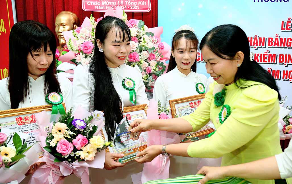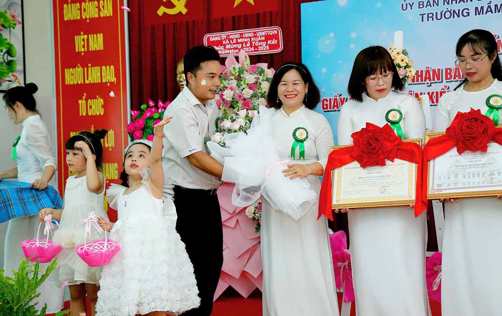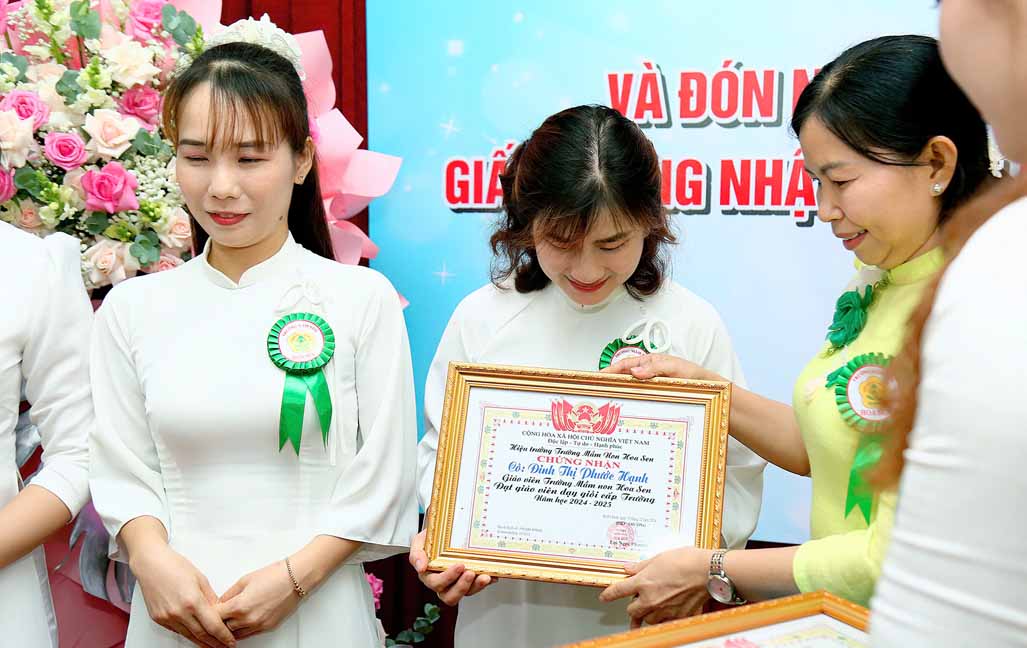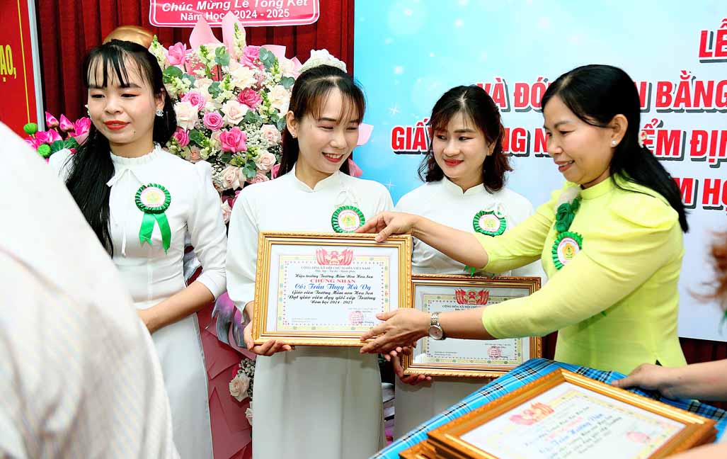Nhân dịp Tổng kết năm học 2024 – 2025, Trường Mầm non Hoa Sen vui mừng ghi nhận và biểu dương những thành tích xuất sắc của tập thể cán bộ, giáo viên, nhân viên trong suốt một năm học vừa qua. Với tinh thần nỗ lực không ngừng, nhiều cá nhân đã đạt được những kết quả nổi bật trong công tác chăm sóc, giáo dục và nuôi dưỡng trẻ. Đặc biệt, trong năm học này nhà trường có 10 giáo viên đạt danh hiệu Giáo viên giỏi cấp huyện và 12 giáo viên đạt danh hiệu Giáo viên giỏi cấp trường. Đây là minh chứng cho sự cố gắng, tâm huyết và tinh thần trách nhiệm cao của đội ngũ giáo viên trong sự nghiệp “trồng người”. Nhà trường trân trọng biểu dương và hy vọng rằng những thành tích này, sẽ là nguồn động lực để toàn thể cán bộ, giáo viên tiếp tục phấn đấu, không ngừng đổi mới, sáng tạo, góp phần xây dựng Trường Mầm non Hoa Sen ngày càng phát triển vững mạnh.