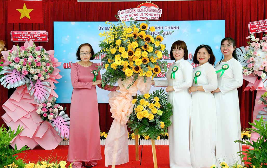 Đến dự có bà Nguyễn Thị Trúc Ly – Phó Trưởng Phòng Giáo dục và Đào tạo huyện Bình Chánh; bà Nguyễn Thị Liêm – Huyện ủy viên, Bí thư Đảng ủy xã Lê Minh Xuân; ông Huỳnh Vũ Long – Đảng ủy viên, Phó Chủ tịch UBND xã Lê Minh Xuân, bà Lại Ngọc Phượng – Bí thư Chi bộ, Hiệu trưởng trường; bà Lê Thị Mỹ Phượng – Phó Bí thư Chi bộ, Phó Hiệu trưởng, bà Vũ Thị Liễu – Uỷ viên Chi bộ, Phó Hiệu trưởng, bà Võ Thị Anh và bà Trần Thị Hồng – Nguyên Hiệu trưởng trường Mầm non Hoa Sen cùng toàn thể cán bộ, giáo viên, nhân viên nhà trường.