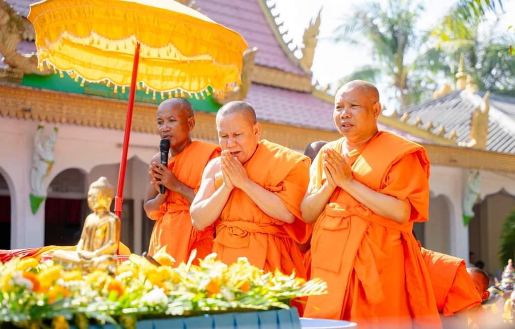 Buổi lễ với sự tham dự của: TT. Thạch Song – Cố vấn Hội Đoàn kết Sư sãi yêu nước huyện Tiểu Cần, Trụ trì chùa KomPong Đôn; TT. Kim Mạnh – Phó Chủ tịch Hội Đoàn kết Sư sãi yêu nước huyện; cùng chư Tăng, Ban quản trị, Achar và đông đảo bà con Phật tử tại chùa.