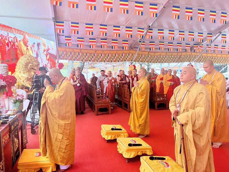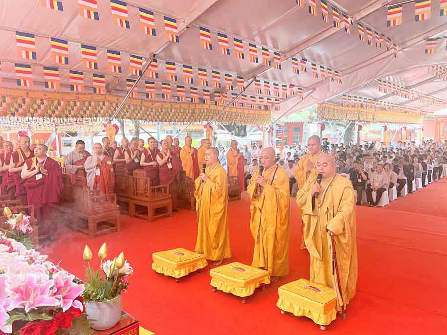 Sau lời phát biểu khai mạc của trưởng lão Hòa thượng Thích Diễn Giác là nghi lễ cầu nguyện thế giới hoà bình, chúng sanh an lạc của Phật giáo các nước.
