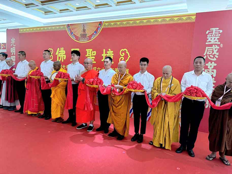 Sau đó, Hoà thượng Thích Huệ Thông, đại diện đoàn Phật giáo Việt Nam cắt băng khai mạc khu vực triển lãm Kỷ niệm 60 năm Trùng kiến bảo tháp xá lợi răng Phật tại chùa Linh Quang.