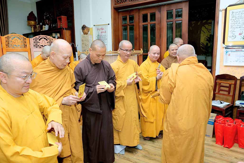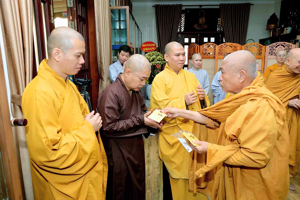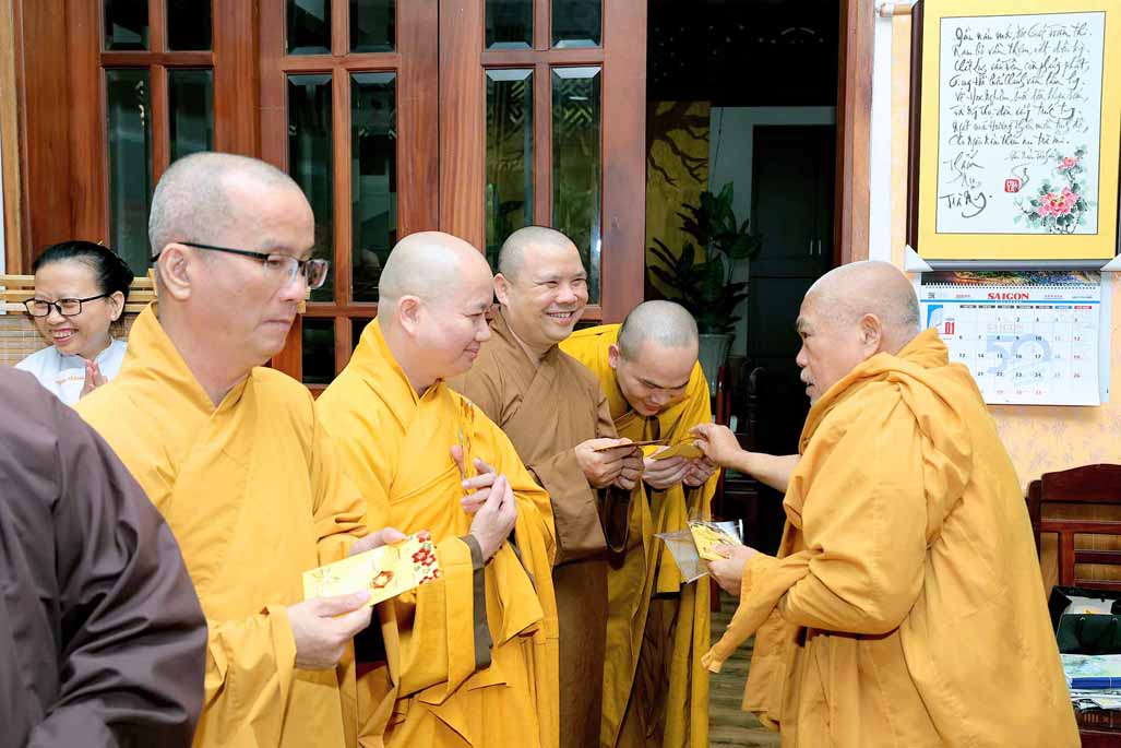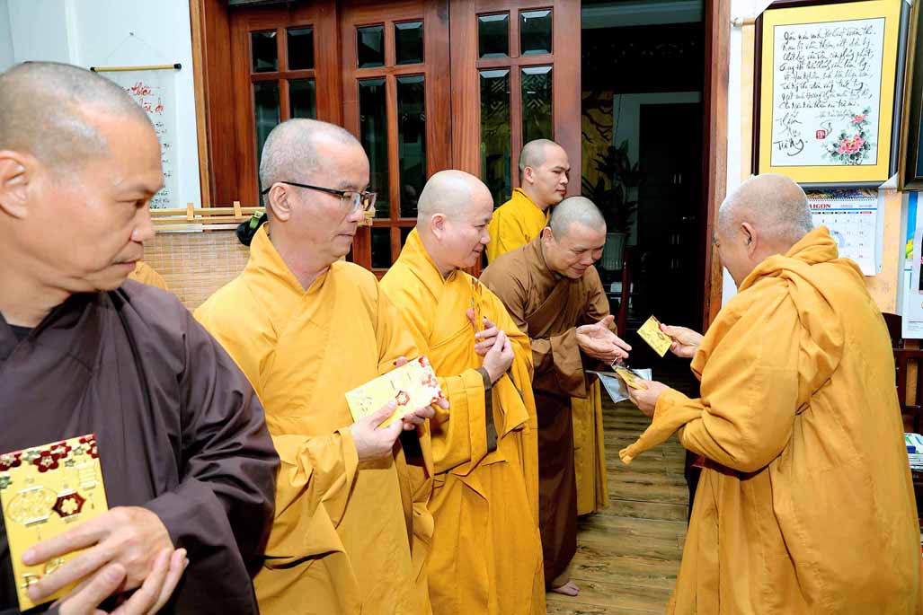 Nhân dịp năm mới Ất Tỵ sắp đến, TT. Thich Nhật Từ thay mặt Hội đồng Quản trị tác bạch khánh chúc Trưởng lão Hòa thượng Viện trưởng được pháp thể khinh an, tuệ đăng thường chiếu để tiếp tục lãnh đạo, điều hành Viện Nghiên cứu. Dịp này, Hòa thượng Viện trưởng cũng phát lộc xuân và chúc cho toàn thể thành viên Hội đồng Quản trị cũng như chư Tôn đức các Trung tâm trực thuộc và bộ phận Văn phòng được nhiều sức khỏe và bình an, tiếp tục đồng lòng cống hiến cho sự nghiệp của viện.