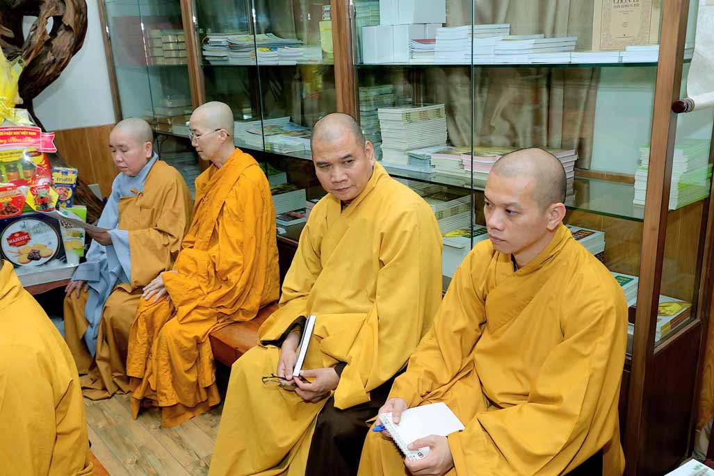 Chứng minh, tham dự phiên họp có Hòa thượng Thích Giác Toàn – Phó Chủ tịch Hội đồng Trị sự, Viện trưởng Viện Nghiên cứu Phật học Việt Nam; chư tôn đức Phó Viện trưởng Viện Nghiên cứu Phật học Việt Nam: HT. Thích Minh Thành (kiêm Tổng Biên tập Tam tạng Thánh điển Phật giáo Việt Nam), TT. Thích Nhật Từ (kiêm Tổng Thư ký, Tổng Biên tập Tam tạng Thánh điển Phật giáo Việt Nam), TT. Thích Giác Hoàng (kiêm Phó Tổng Thư ký) cùng dự có chư Tôn đức Ban biên tập Đại tạng Kinh, chư Tôn đức các Trung tâm trực thuộc và bộ phận Văn phòng…