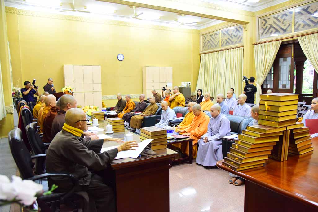Nội dung cuộc họp cũng tập trung vào các hoạt động phiên dịch và xuất bản kinh sách, trong đó nổi bật là việc ấn hành và cúng dường kinh điển đến chư Tăng Ni, tự viện và cộng đồng Phật tử trong và ngoài nước. Những khó khăn trong quy trình xuất bản cũng được nêu ra để cùng thảo luận và tháo gỡ, hướng đến nâng cao chất lượng và hiệu quả trong công tác phát hành.