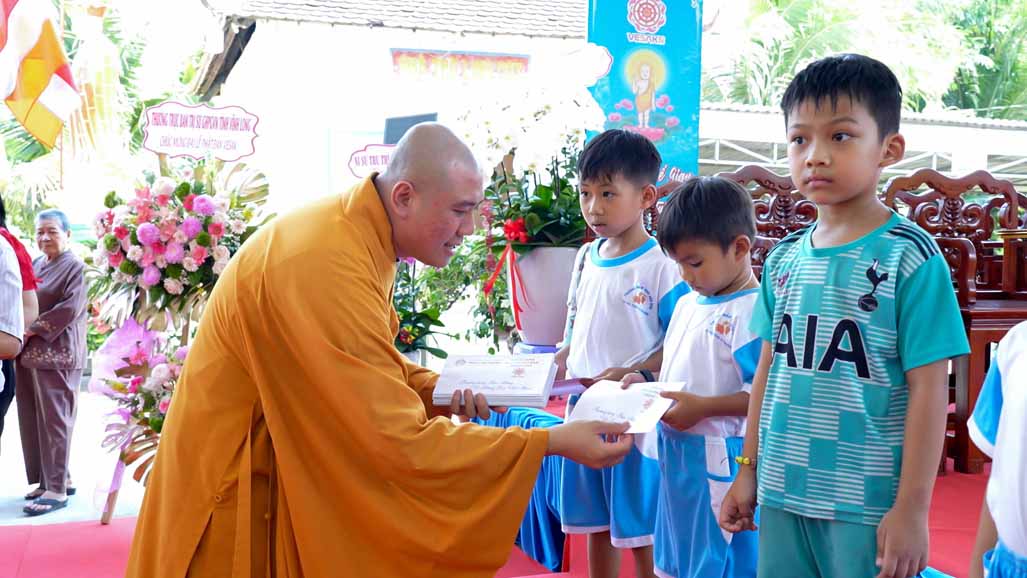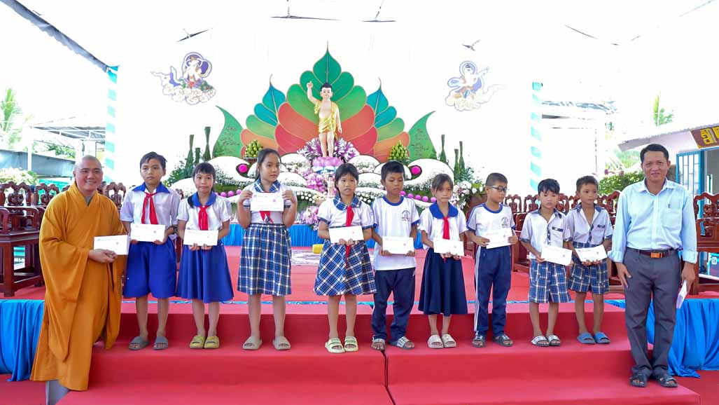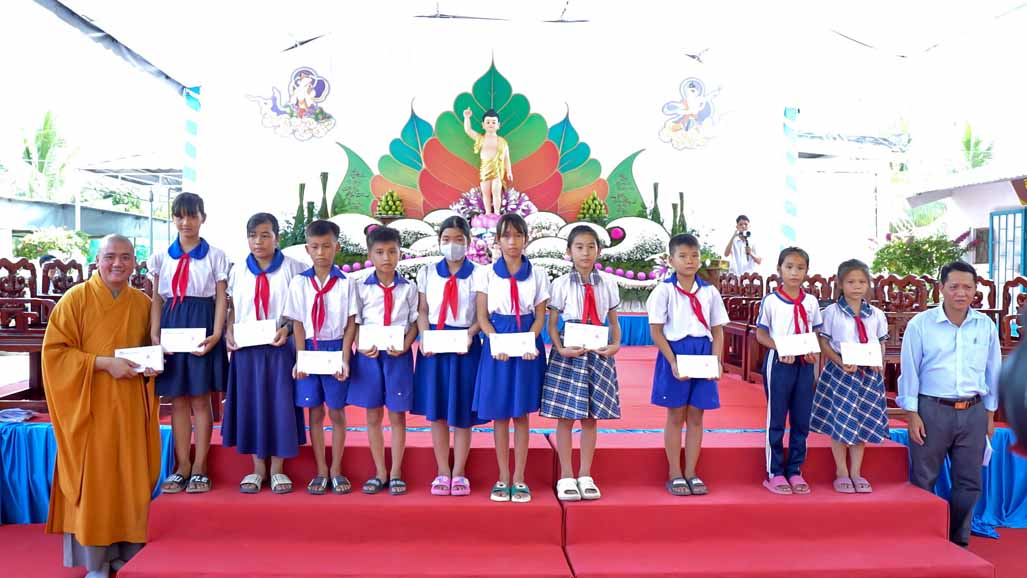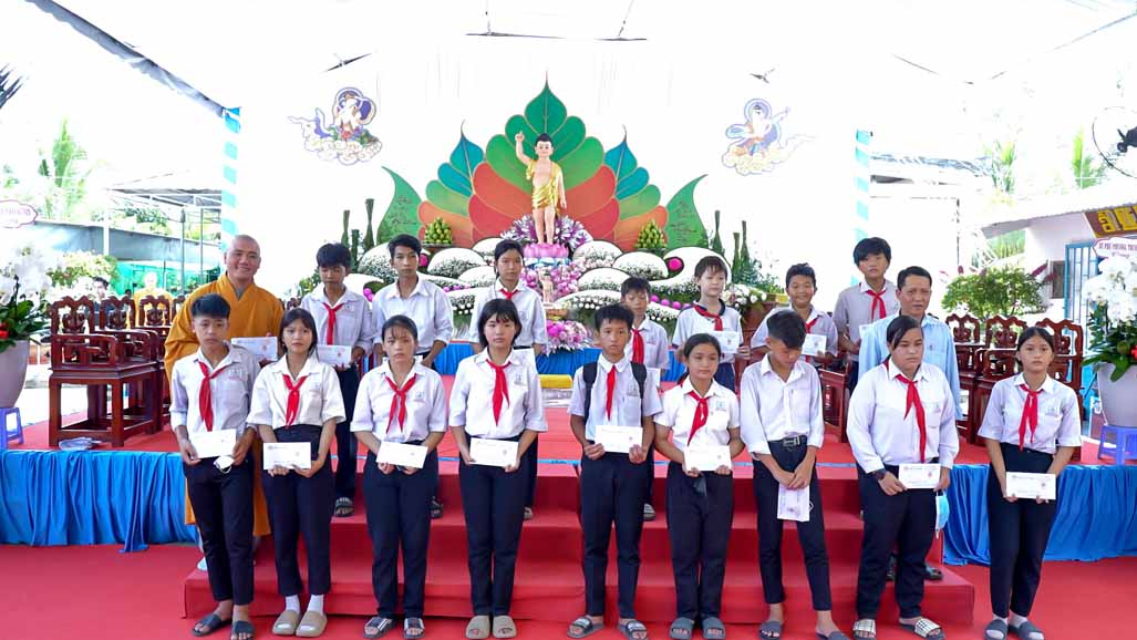 Dịp này, nhằm kính mừng Đại lễ Phật đản PL. 2569 và chào mừng Đại lễ Vesak Liên Hợp Quốc 2025. Chùa Linh Phước phối hợp cùng chính quyền địa phương đã trao 110 suất học bổng cho học sinh có hoàn cảnh khó khăn địa phương với tổng kinh phí là 33 triệu đồng.