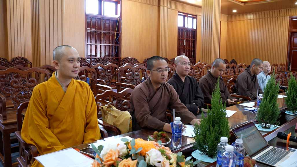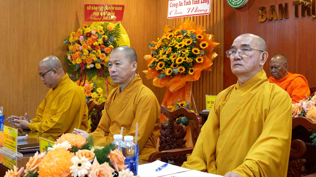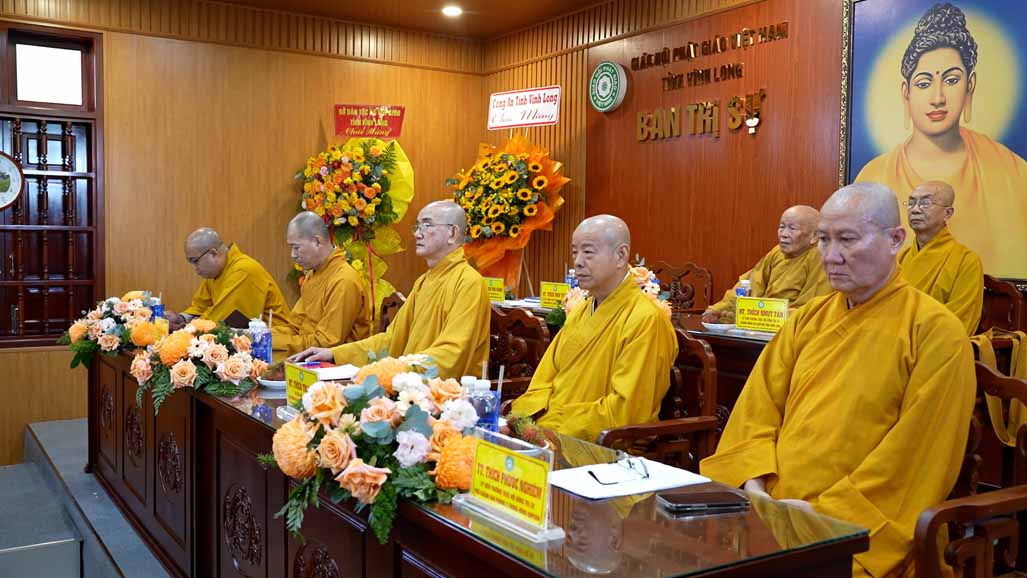 Trưa cùng ngày, phiên họp đầu tiên được tổ chức dưới sự chủ tọa của Thượng tọa Thích Tâm Khiết – Phó ban kiêm Chánh Thư ký Ban Trị sự GHPGVN tỉnh, Trưởng Ban Thư ký GHPGVN tỉnh Vĩnh Long. Phiên họp đã sơ lược tình hình hoạt động của các tự viện, thống kê số lượng Tăng Ni toàn tỉnh sau sáp nhập, đồng thời triển khai các Phật sự trọng tâm và thảo luận các phương án tháo gỡ vướng mắc, nhằm kiện toàn tổ chức và thúc đẩy các hoạt động Phật sự phát triển ổn định, bền vững trong thời gian tới.