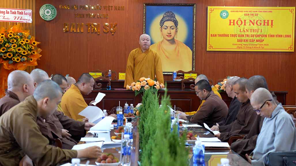 Sáng ngày 07/ 7/ 2025 (12 tháng 6 năm Ất Tỵ), tại Văn phòng ban Trị sự GHPGVN tỉnh Vĩnh Long. Chùa Phật Ngọc Xá Lợi, Ban Thường trực ban Trị sự GHPGVN tỉnh đã trang nghiêm tổ chức Hội nghị lần thứ nhất, công bố Quyết định công cử nhân sự chủ chốt sau khi thực hiện việc sáp nhập hành chính theo chủ trương của Trung ương Giáo hội.