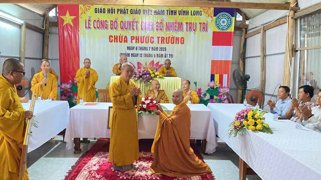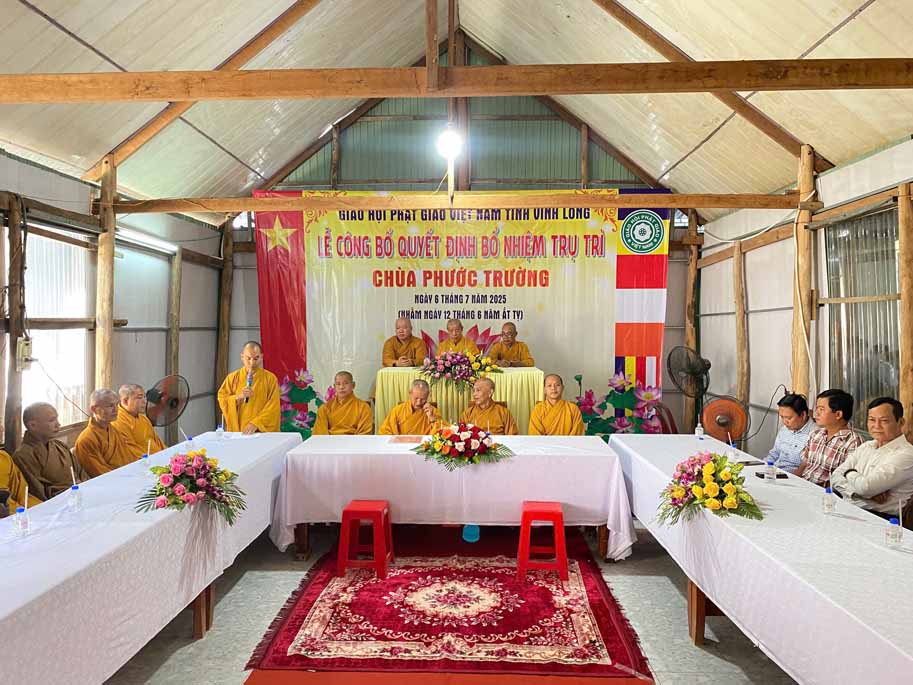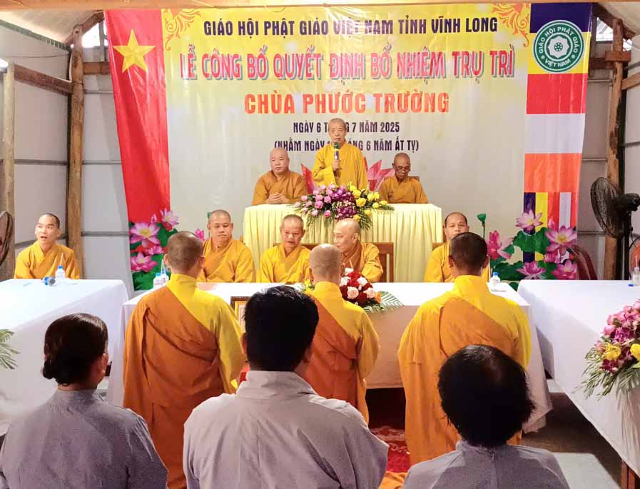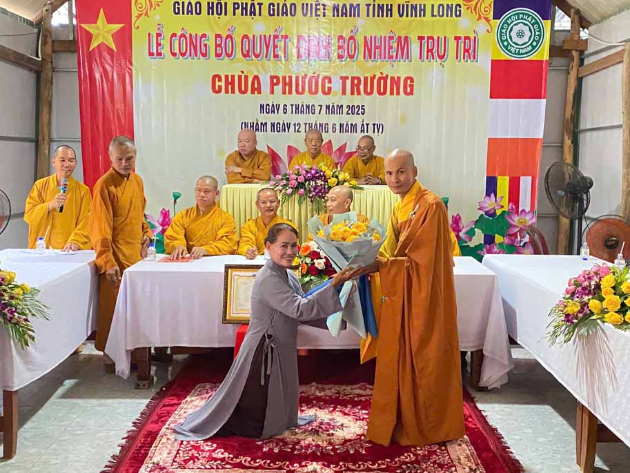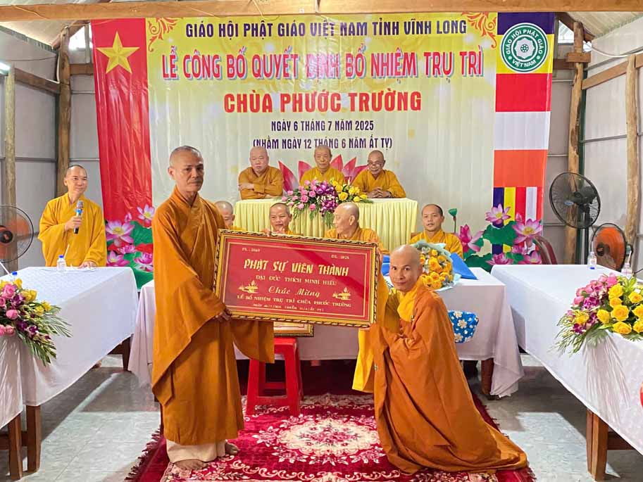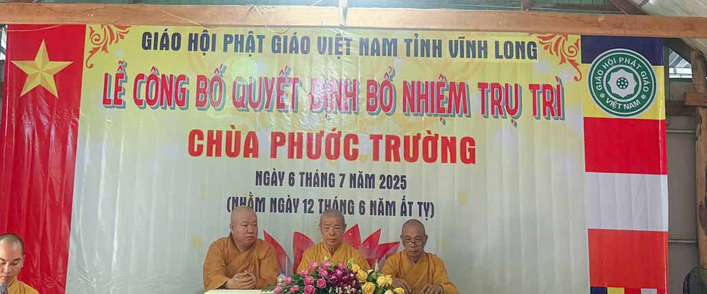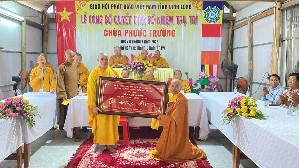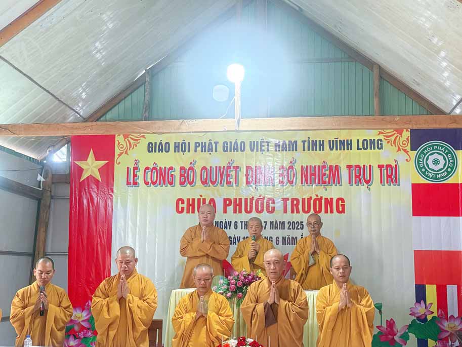 Sáng ngày 06/ 07/ 2025 (12 tháng 6 năm Ất Tỵ), ban Trị sự GHPGVN tỉnh Vĩnh Long; long trọng tổ chức lễ Công bố Quyết định Bổ nhiệm ĐĐ. Thích Hạnh Nghiêm giữ chức vụ Trụ trì chùa Phước Trường, toạ lạc tại ấp 3A, xã An Trường, tỉnh Vĩnh Long.