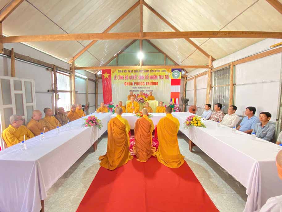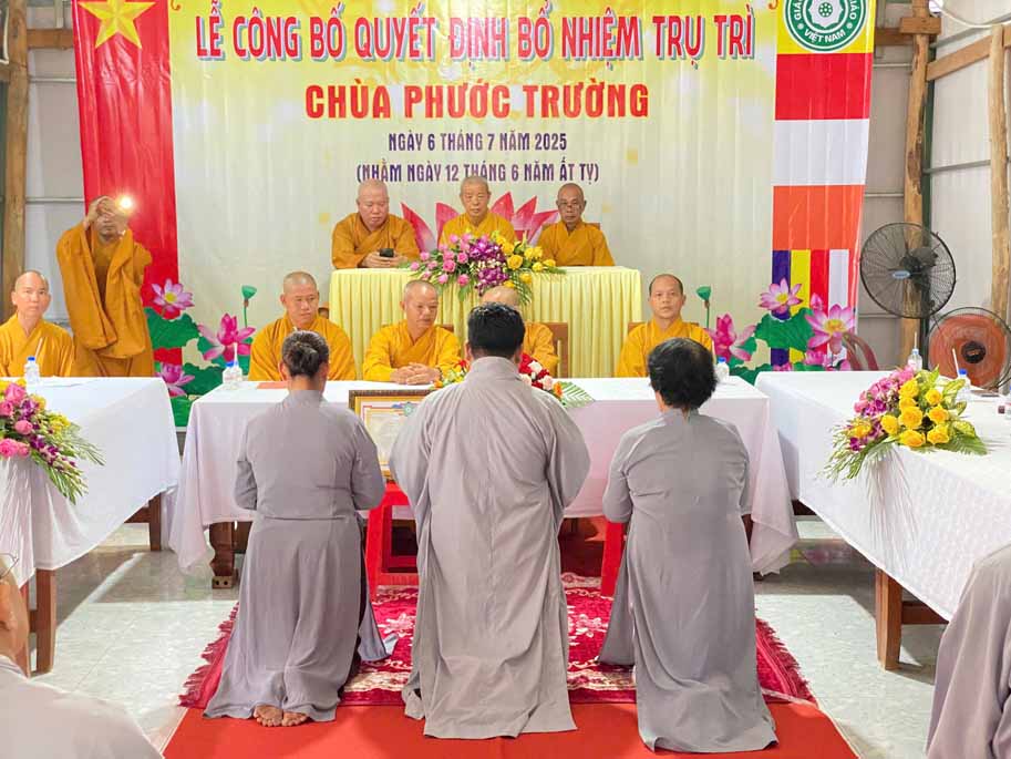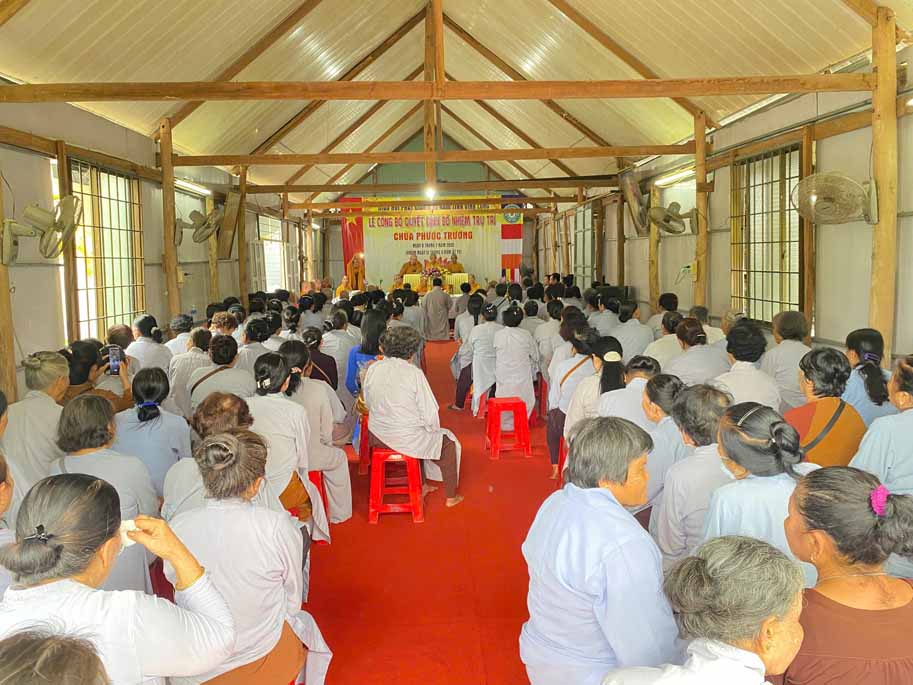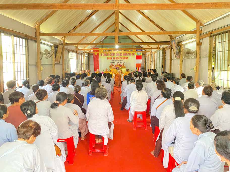 Tại buổi lễ, TT. Thích Minh Độ – Phó BTS Phật giáo tỉnh đã tuyên đọc Quyết định của ban Trị sự GHPGVN tỉnh về việc Bổ nhiệm ĐĐ. Thích Hạnh Nghiêm giữ chức vụ Trụ trì chùa Phước Trường và cung thỉnh HT. Thích Huệ Pháp – Ủy viên HĐTS, Phó BTS. GHPGVN tỉnh trao Quyết định; TT. Thích Tâm Khiết – Phó Trưởng ban kiêm Chánh Thư ký BTS. GHPGVN tỉnh trao con dấu và Khánh vàng của BTS. GHPGVN tỉnh chúc mừng đến Đại đức tân Trụ trì.