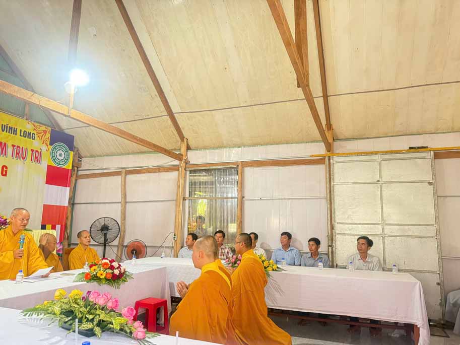 Ban đạo từ tại buổi lễ, HT. Thích Trí Minh – Ủy Viên HĐTS, Phó Trưởng Ban Thường trực BTS. GHPGVN tỉnh Vĩnh Long đã sách tấn Đại đức tân Trụ trì cố gắng chăm lo Tam bảo, phụng sự Phật pháp, gắn kết với chính quyền địa phương làm tốt công tác an sinh xã hội.