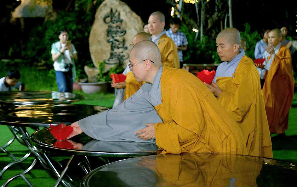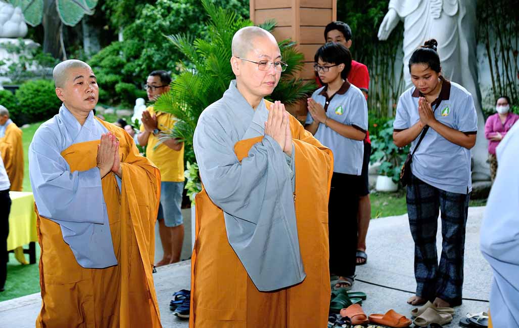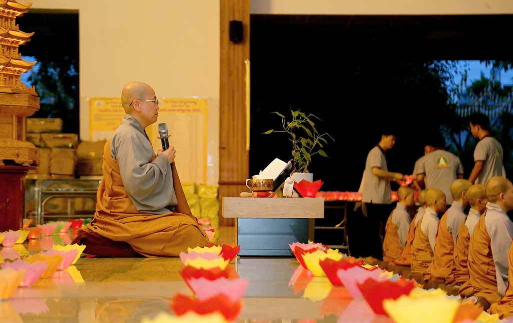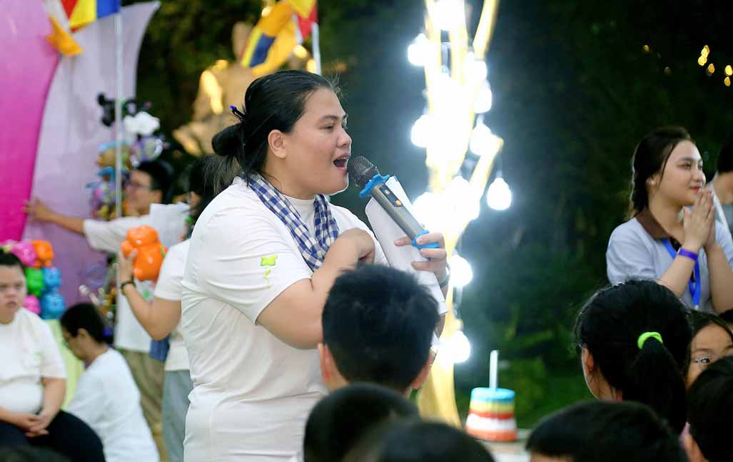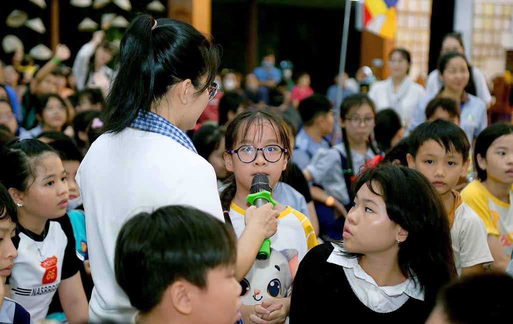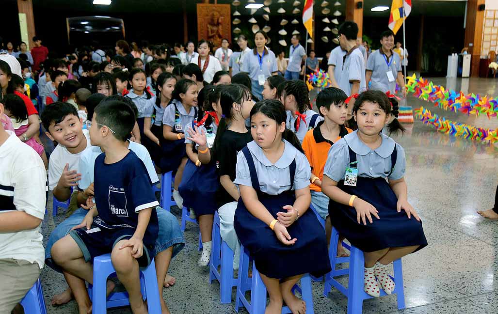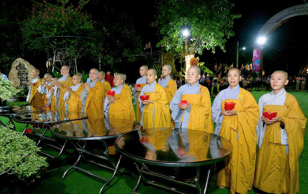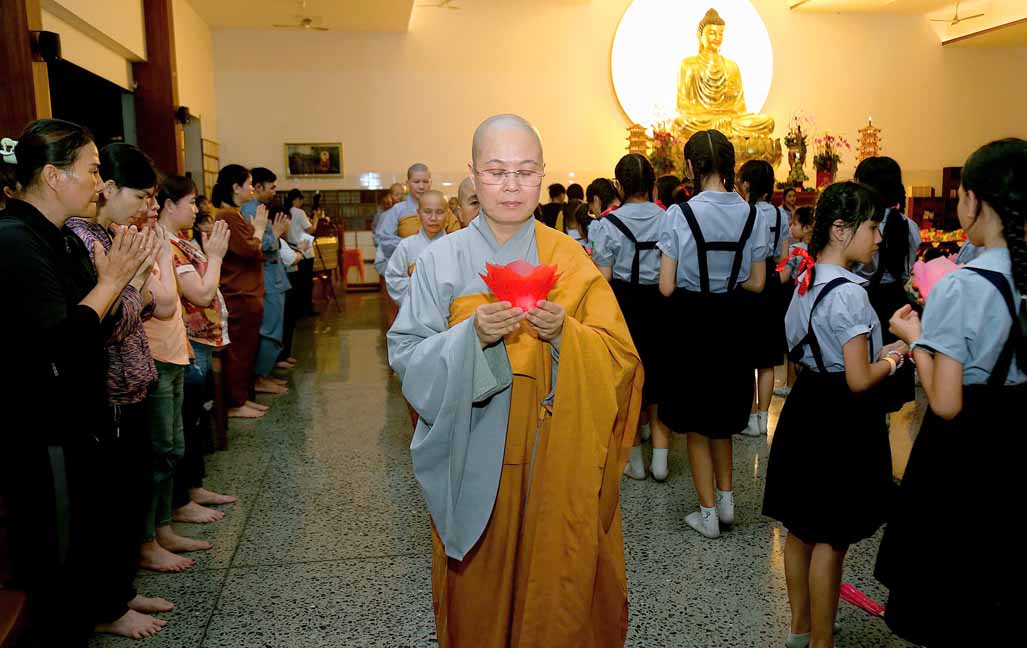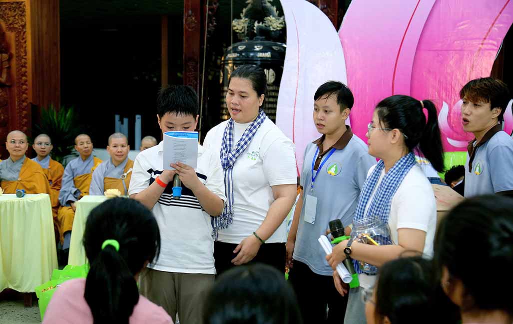 Chương trình được sự hướng dẫn của Ni sư Thích Diệu Hiếu cùng quý Sư cô tại Tu viện, các bé được tham dự nghi thức tụng kinh và thắp nến hoa đăng để gieo duyên lành với Phật pháp từ khi còn nhỏ.