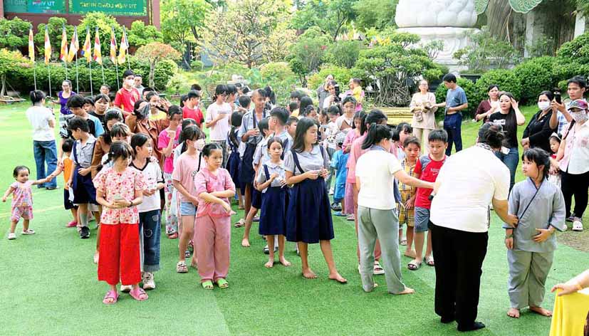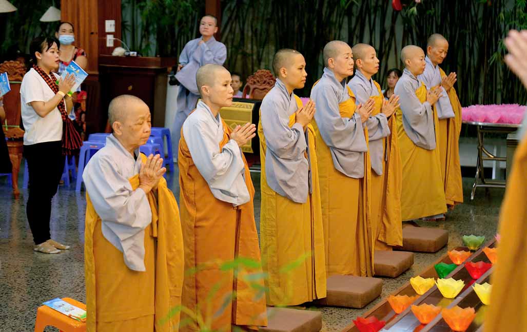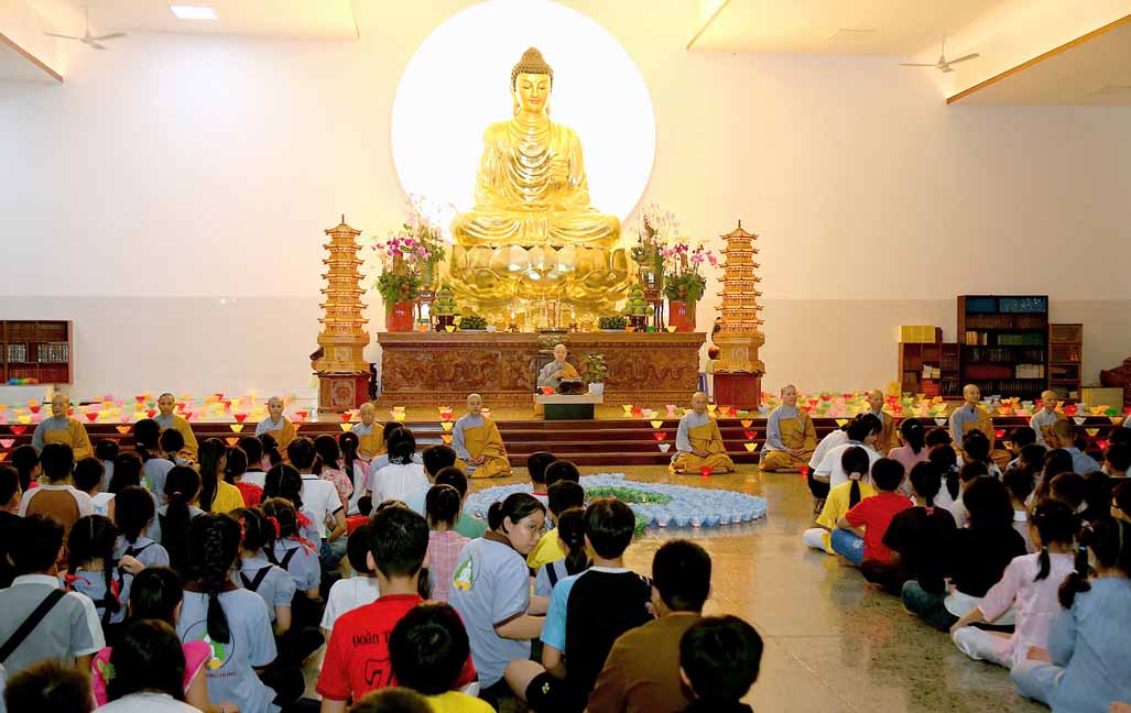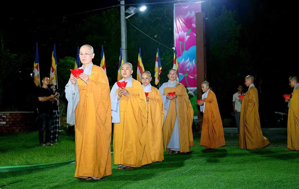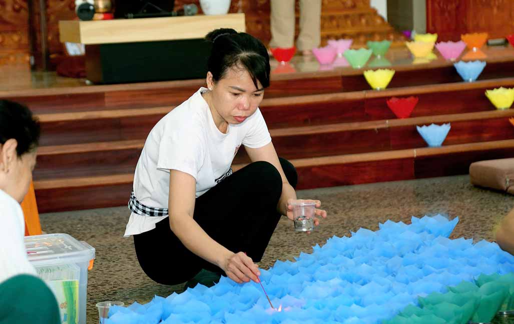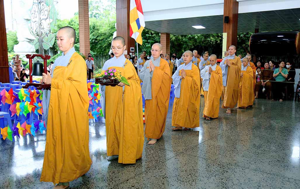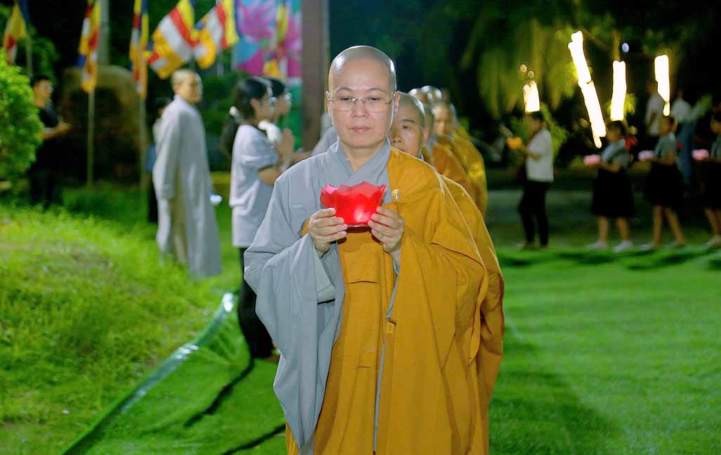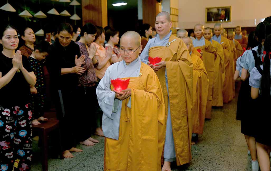 Chương trình được sự hướng dẫn của Ni sư Thích Diệu Hiếu cùng quý Sư cô tại Tu viện, các bé được tham dự nghi thức tụng kinh và thắp nến hoa đăng để gieo duyên lành với Phật pháp từ khi còn nhỏ.