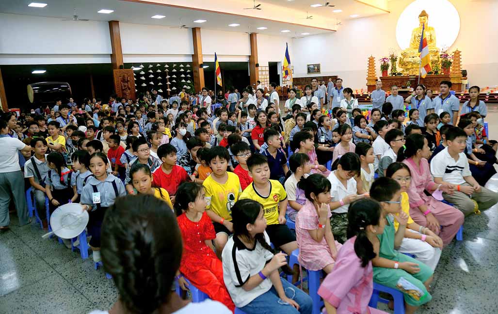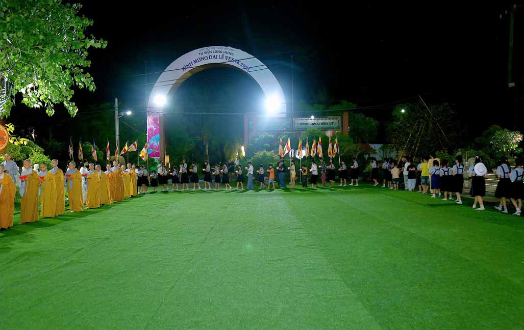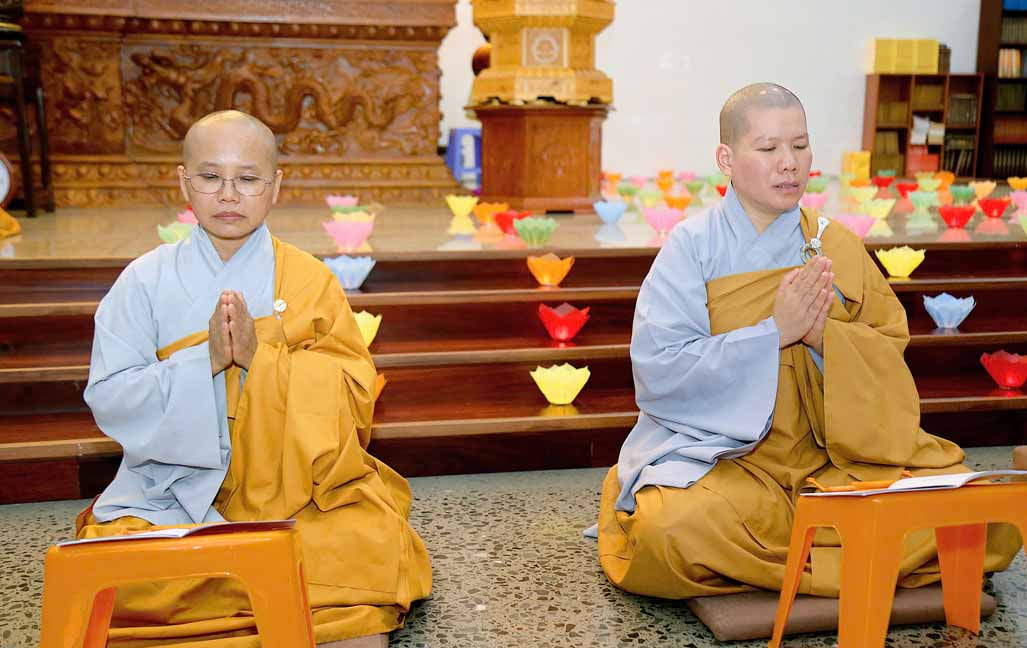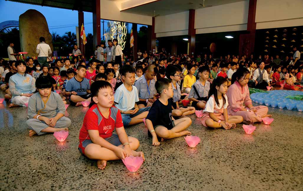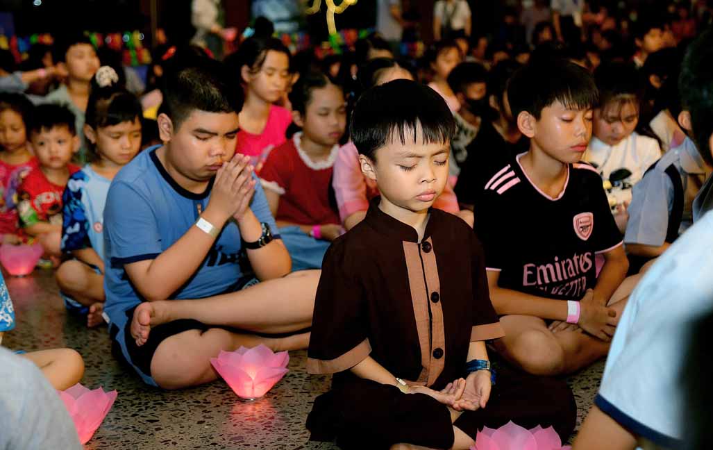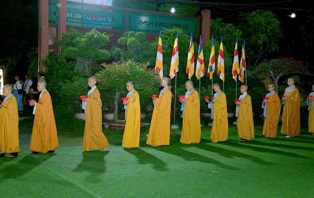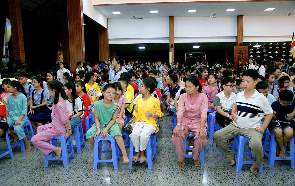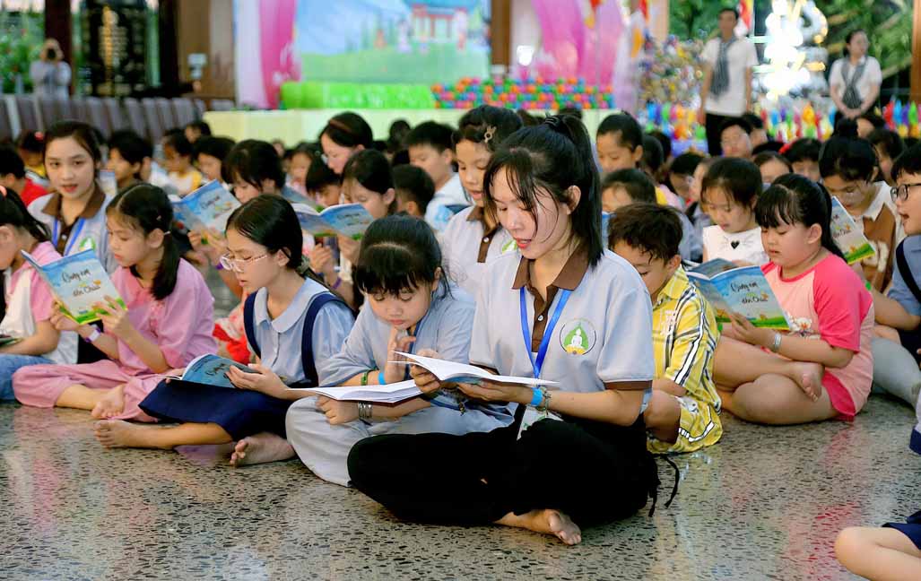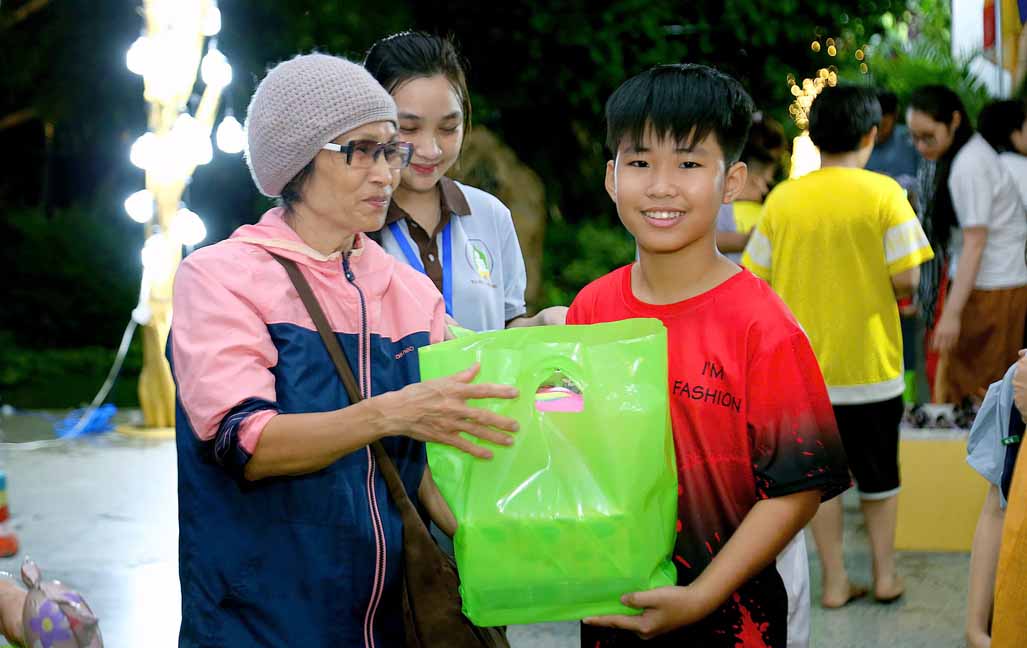 Chương trình được sự hướng dẫn của Ni sư Thích Diệu Hiếu cùng quý Sư cô tại Tu viện, các bé được tham dự nghi thức tụng kinh và thắp nến hoa đăng để gieo duyên lành với Phật pháp từ khi còn nhỏ.