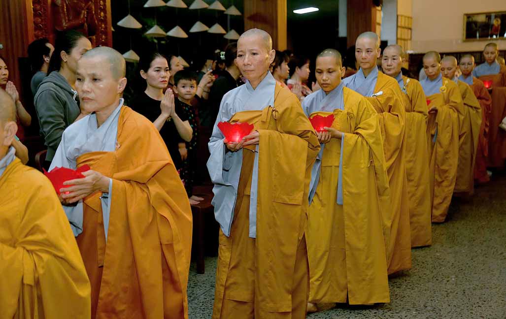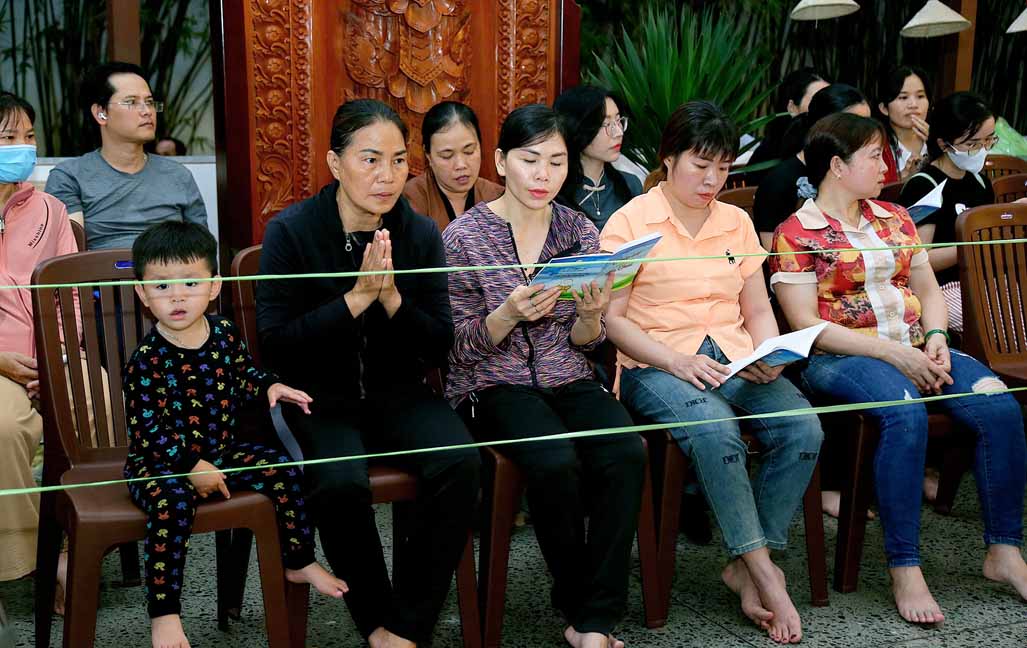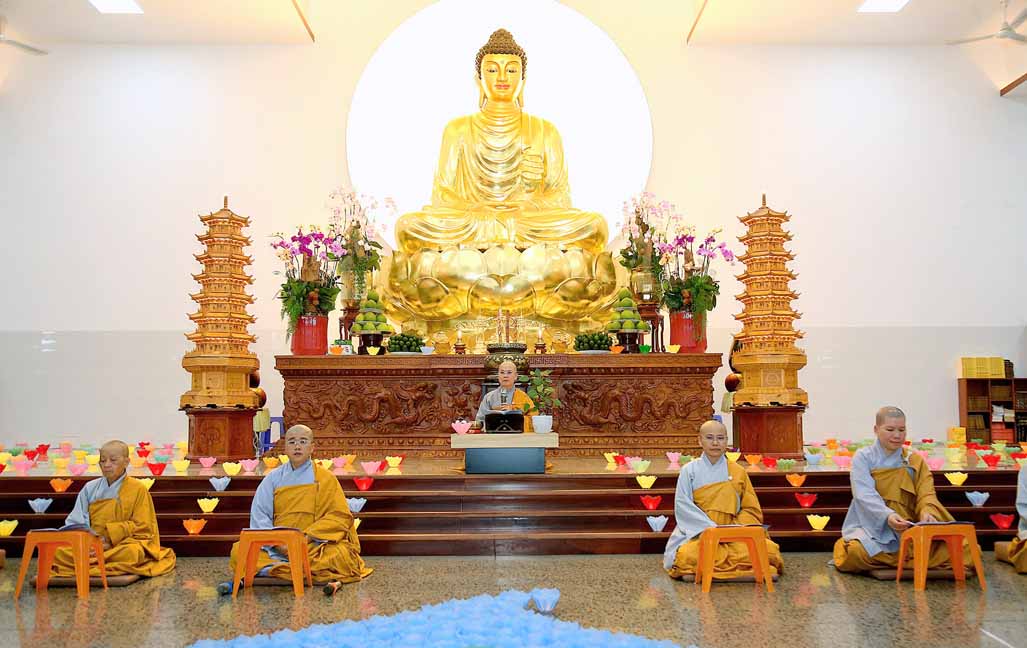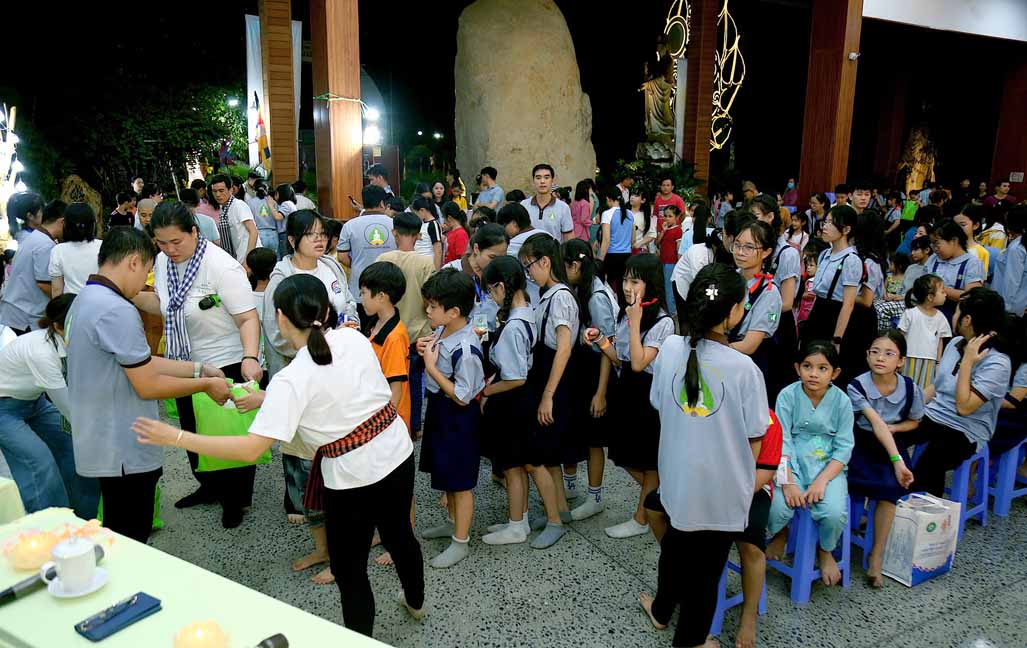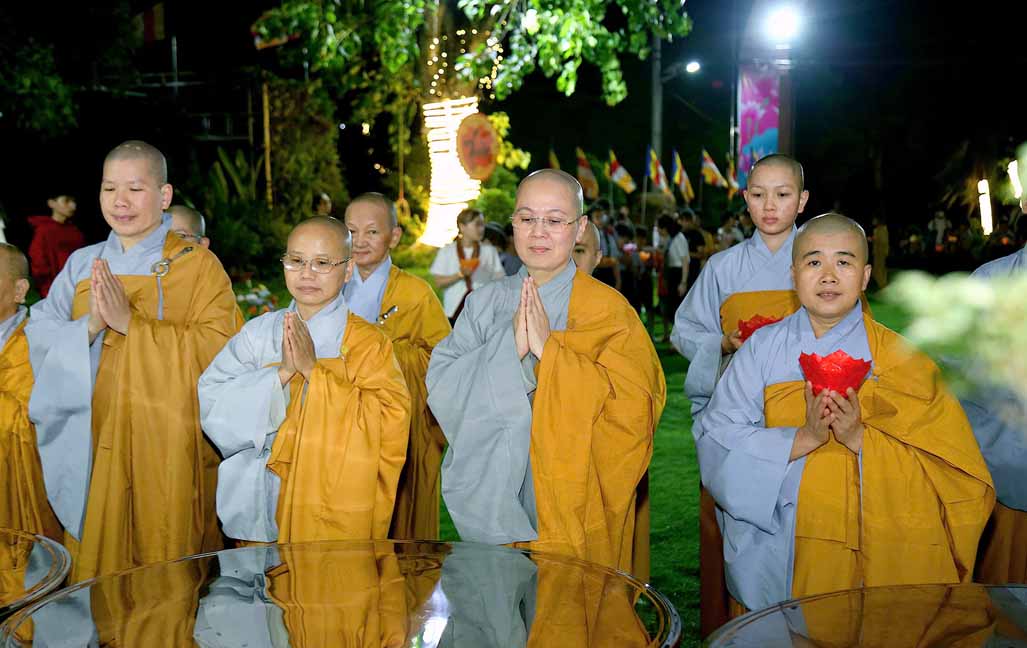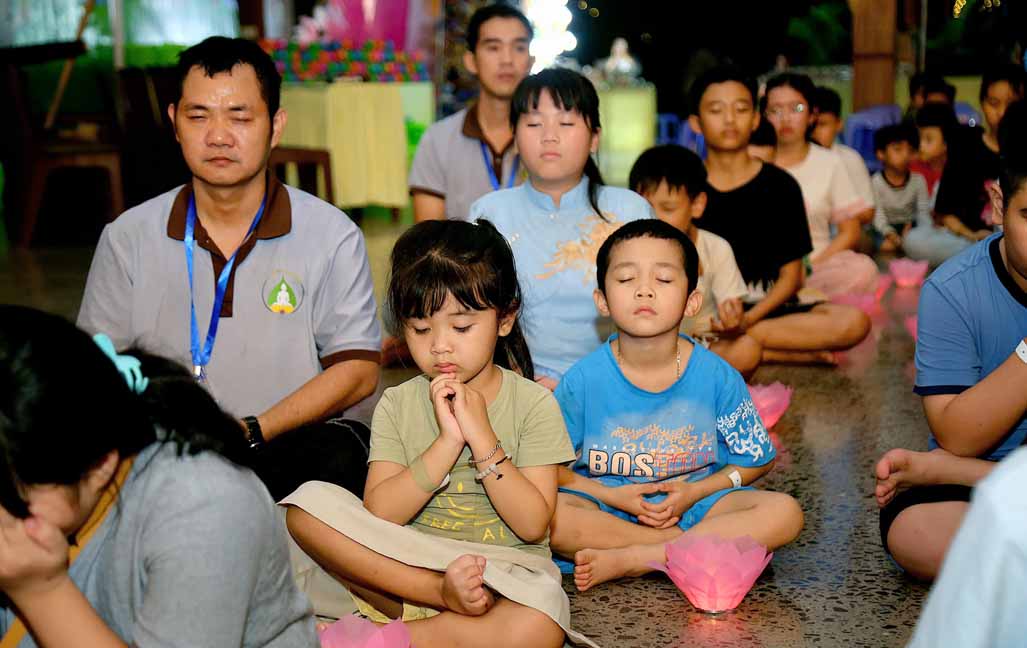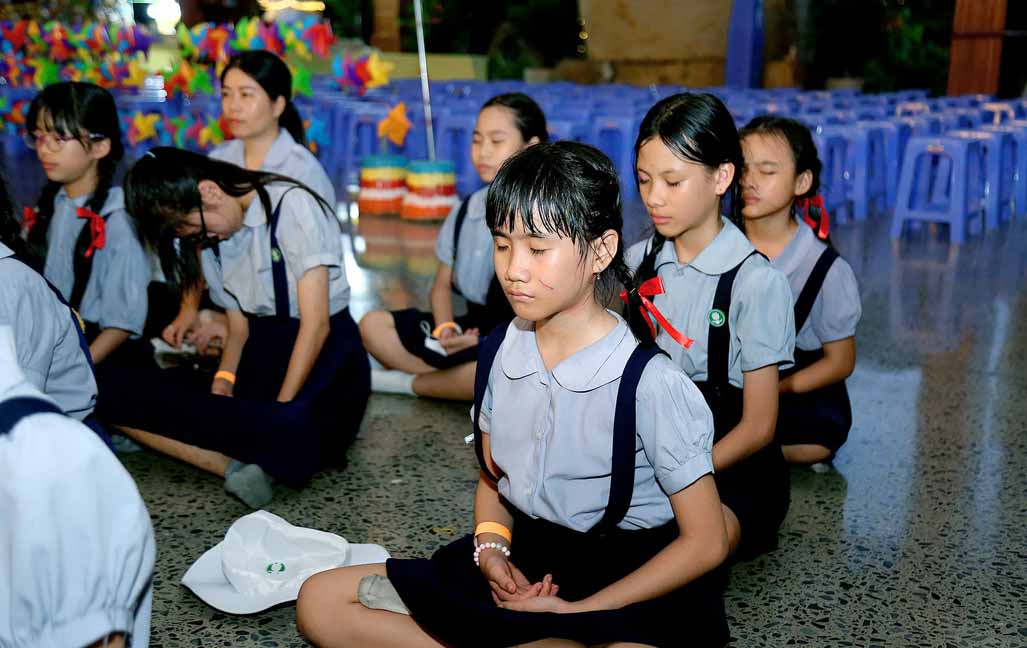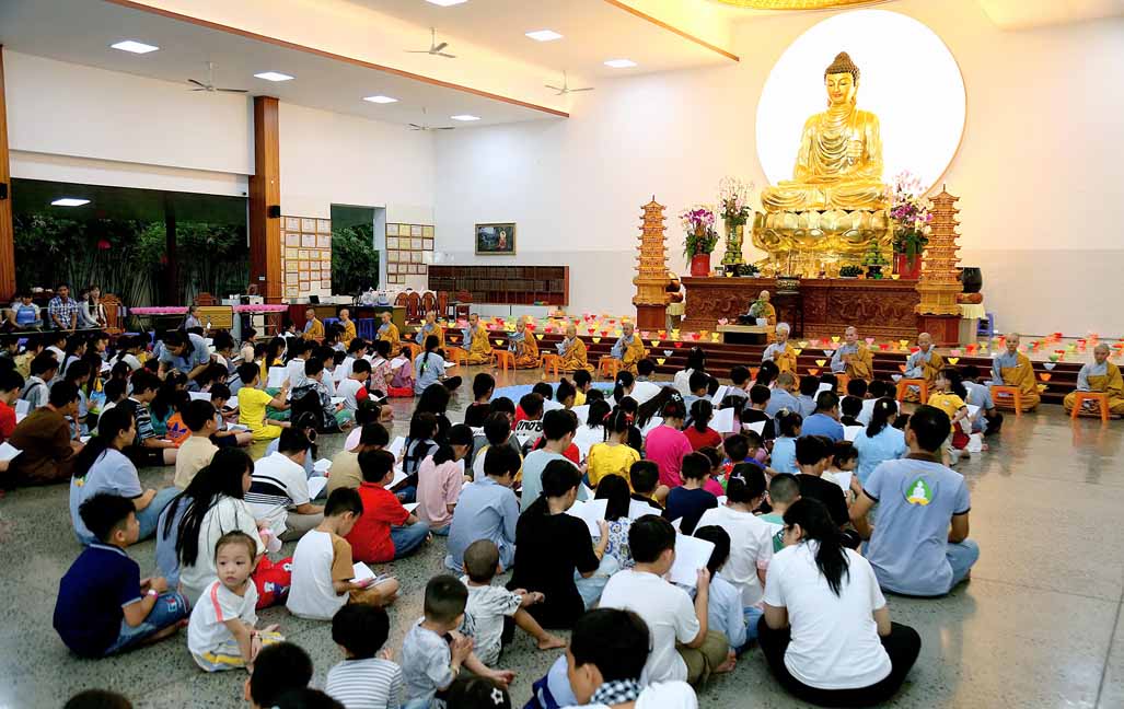 Chương trình được sự hướng dẫn của Ni sư Thích Diệu Hiếu cùng quý Sư cô tại Tu viện, các bé được tham dự nghi thức tụng kinh và thắp nến hoa đăng để gieo duyên lành với Phật pháp từ khi còn nhỏ.