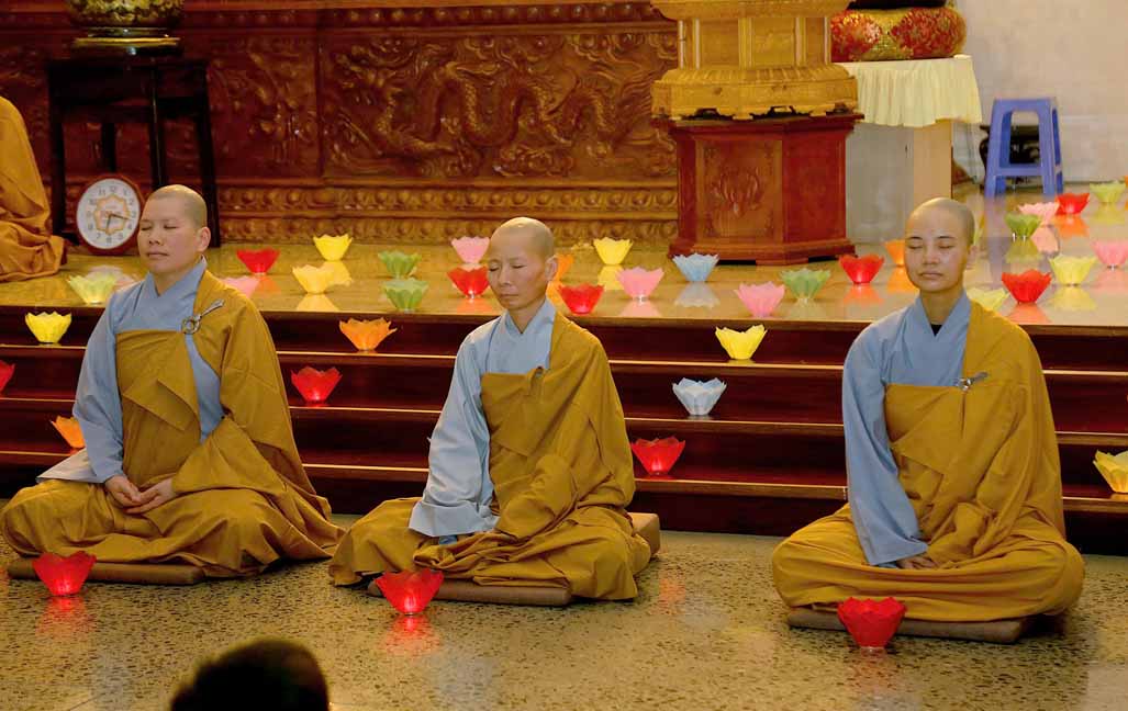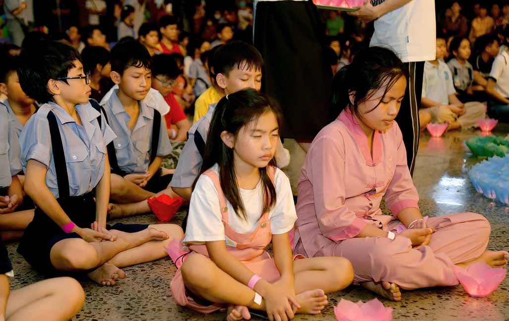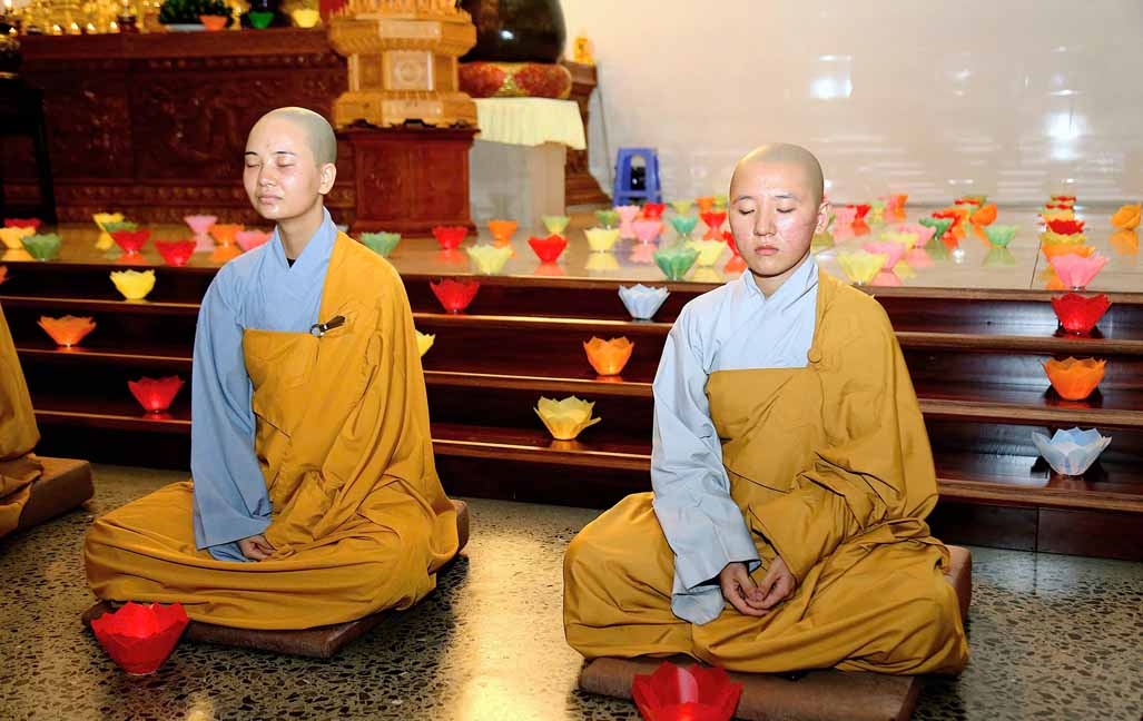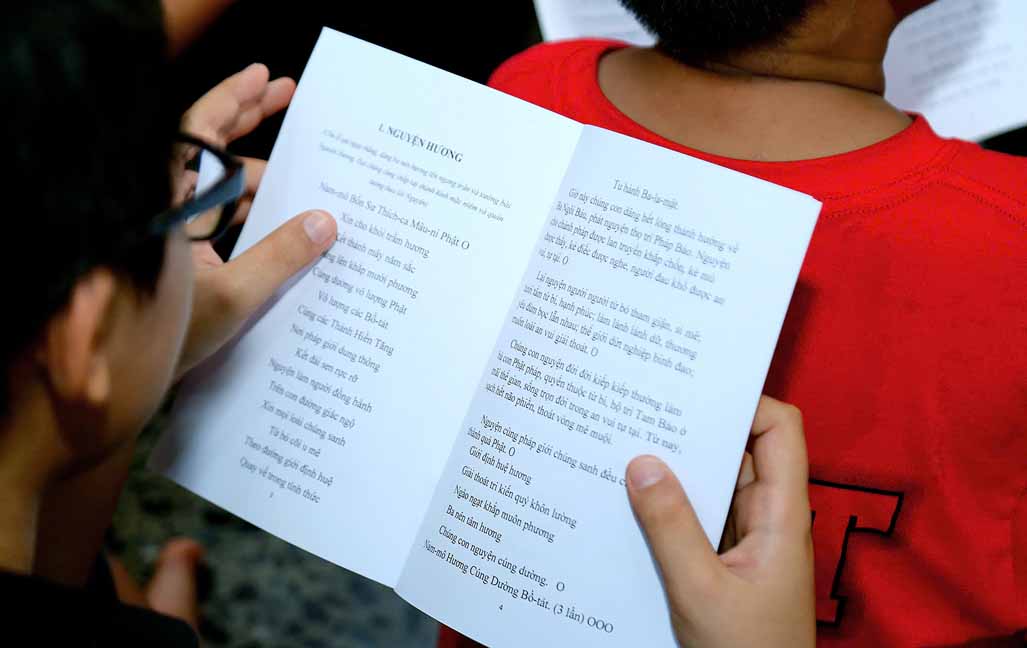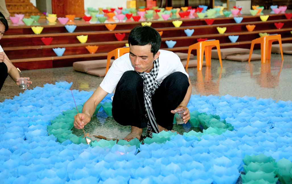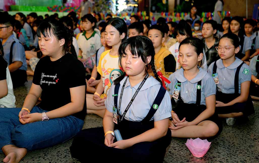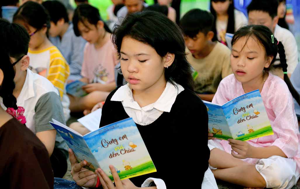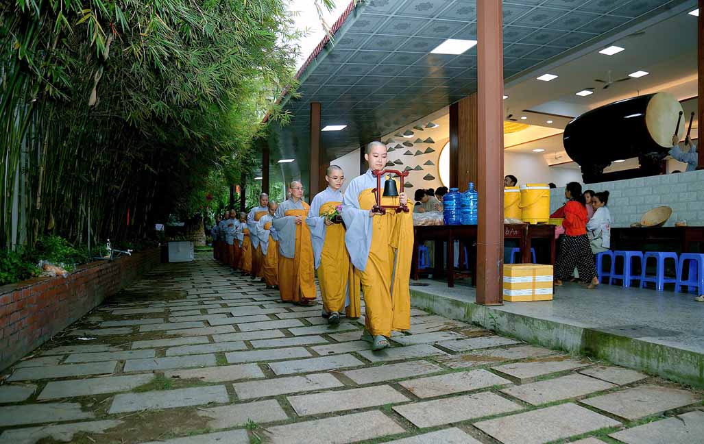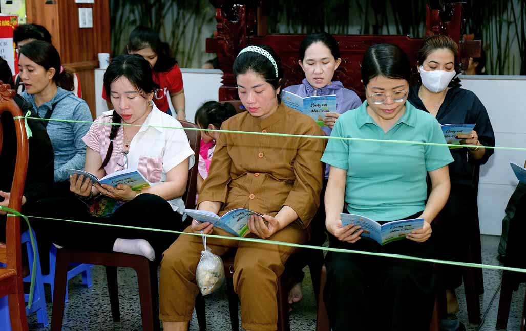 Chương trình được sự hướng dẫn của Ni sư Thích Diệu Hiếu cùng quý Sư cô tại Tu viện, các bé được tham dự nghi thức tụng kinh và thắp nến hoa đăng để gieo duyên lành với Phật pháp từ khi còn nhỏ.