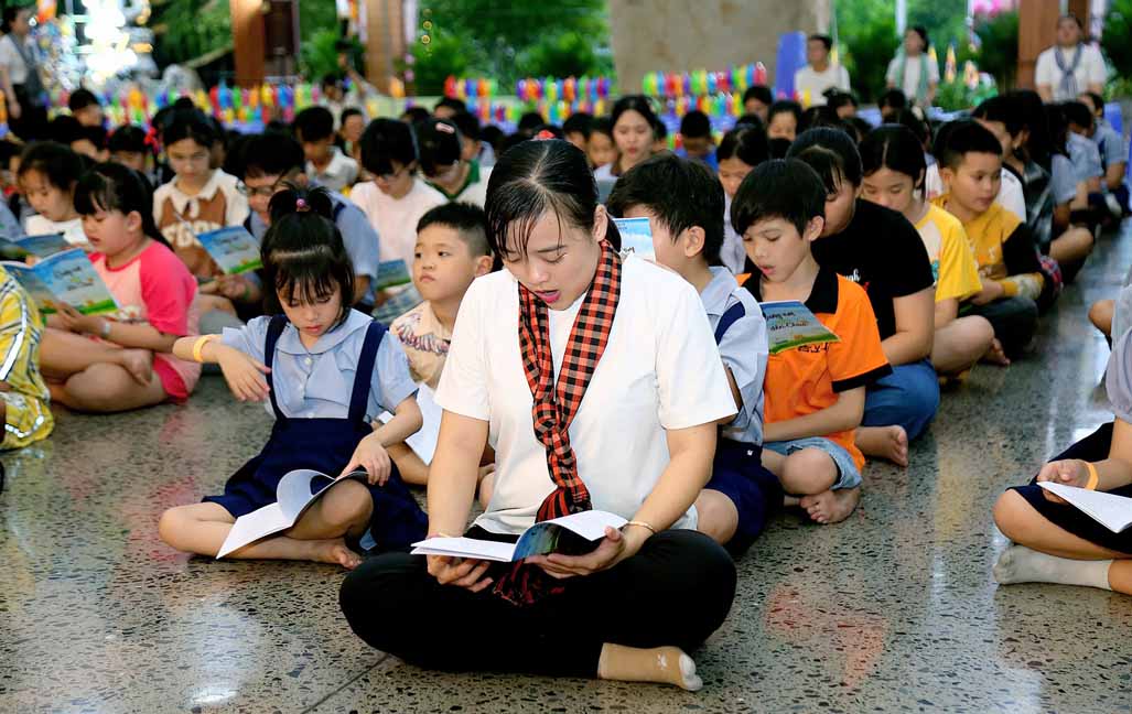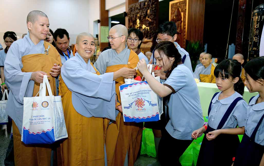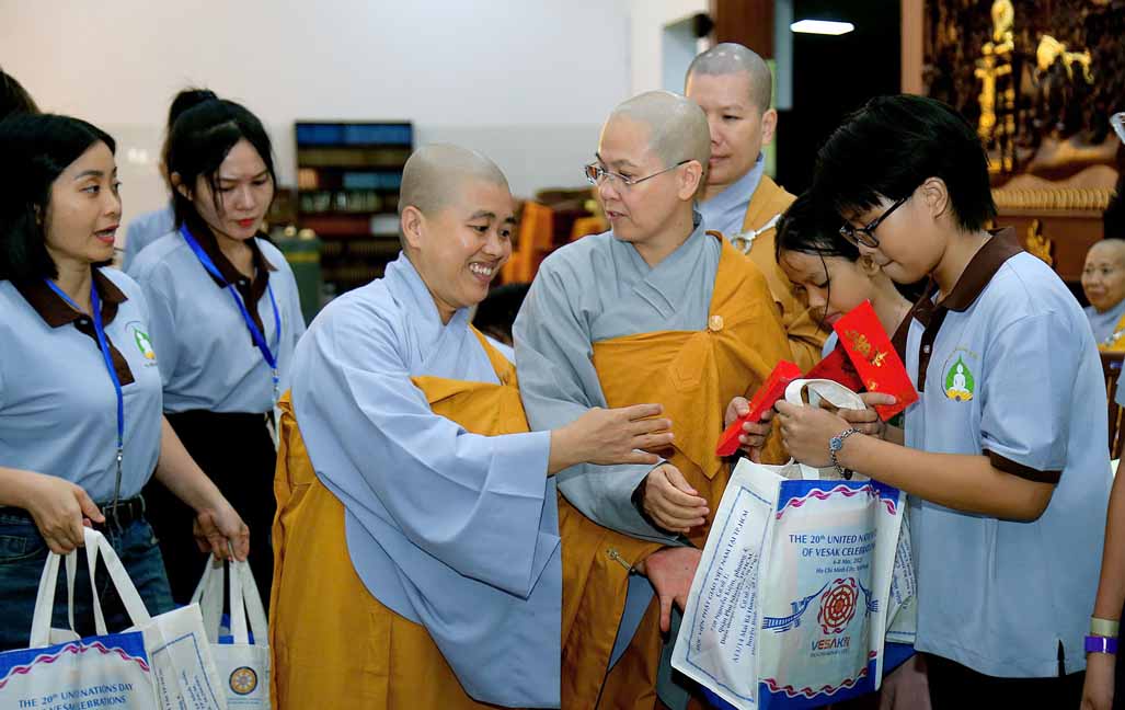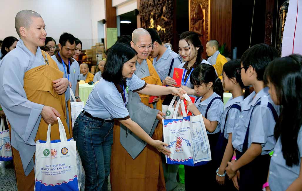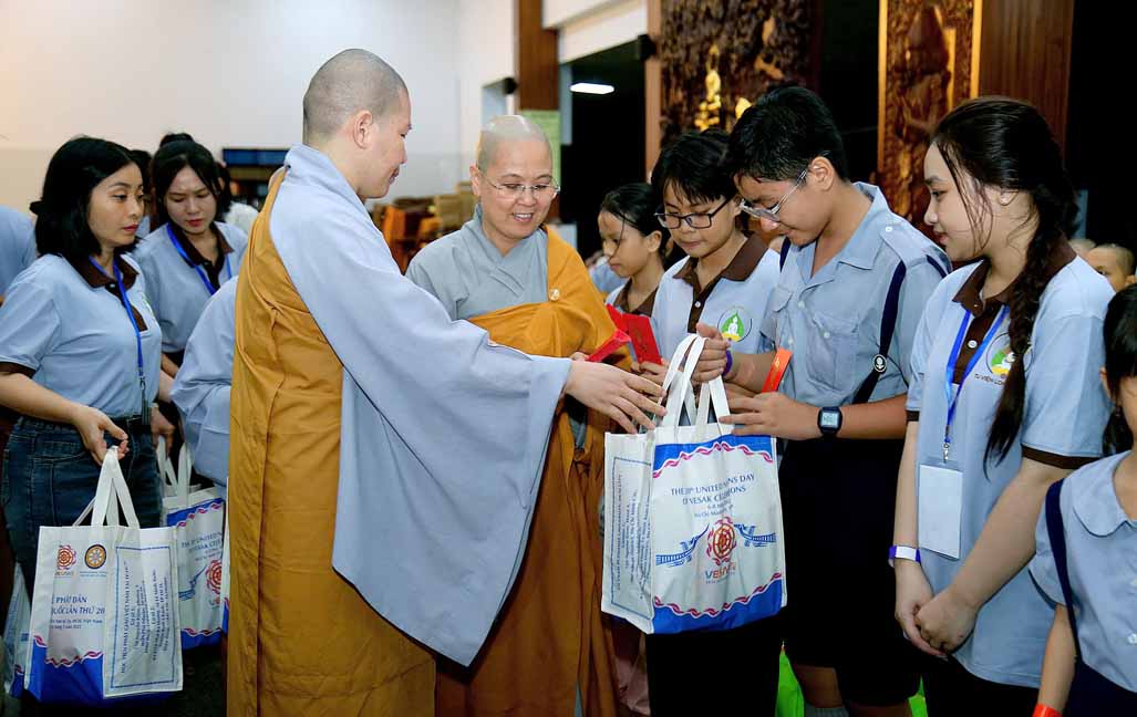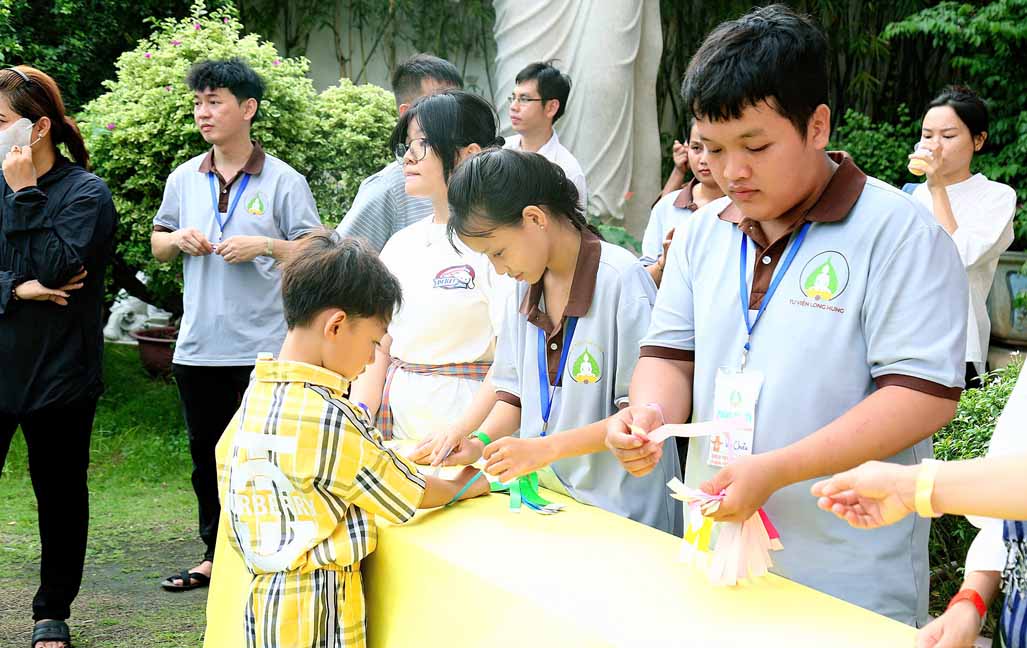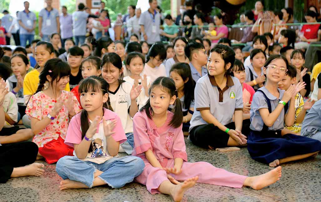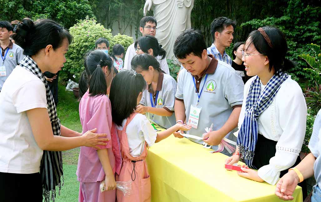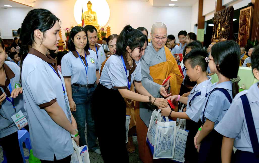 Đặc biệt, chú hề bong bóng với những tạo hình ngộ nghĩnh, đáng yêu đã mang lại nhiều tiếng cười và sự thích thú cho các bé. 20 em học sinh giỏi và xuất sắc đang sinh hoạt trong các nhóm Phụng sự viên và Gia đình Phật tử Long Hưng cũng được Ni sư tuyên dương, trao quà và phong bì trị giá gần 800 nghìn đồng /suất như lời động viên tinh tấn.