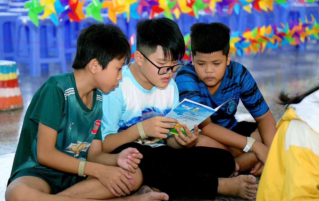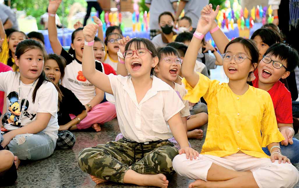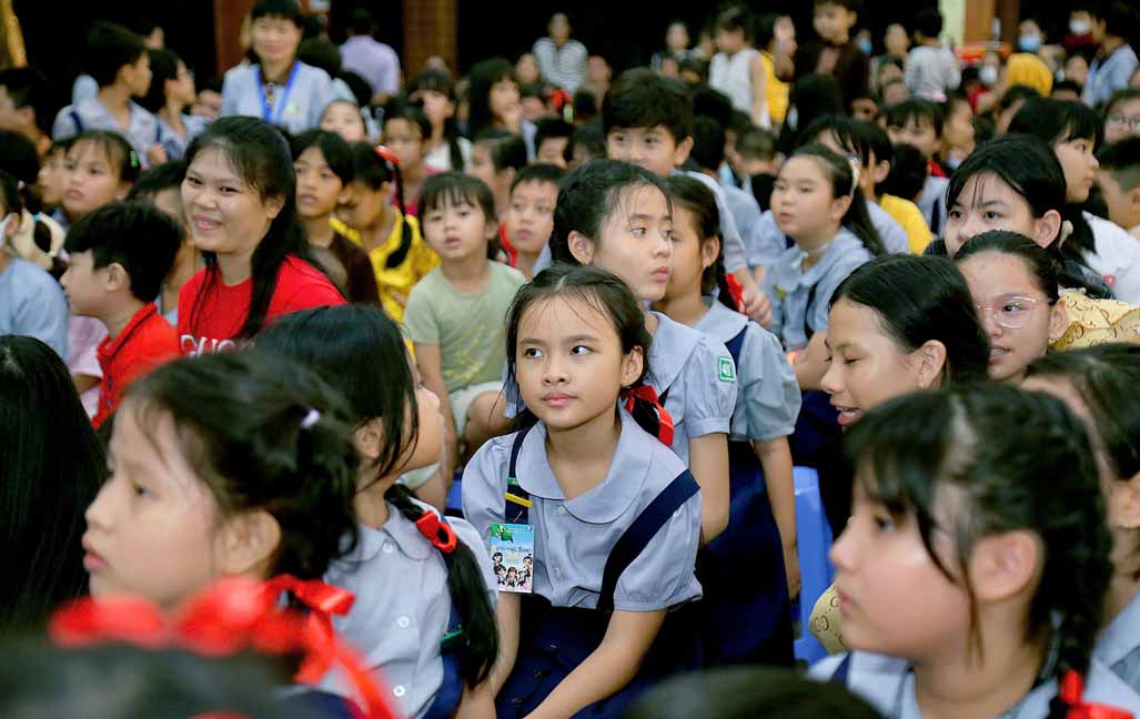 Ngay sau đó, chương trình diễn ra thật sinh động với nhiều hoạt động vui chơi hấp dẫn và phần quà tặng thiếu nhi đầy ý nghĩa. Mỗi em nhận được một phần quà trị giá khoảng 250 nghìn đồng gồm: bánh kẹo, sữa, vở, truyện, dụng cụ học tập, heo đất, trà sữa…