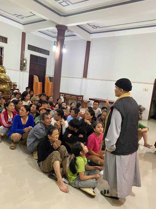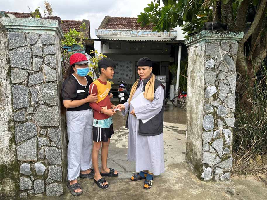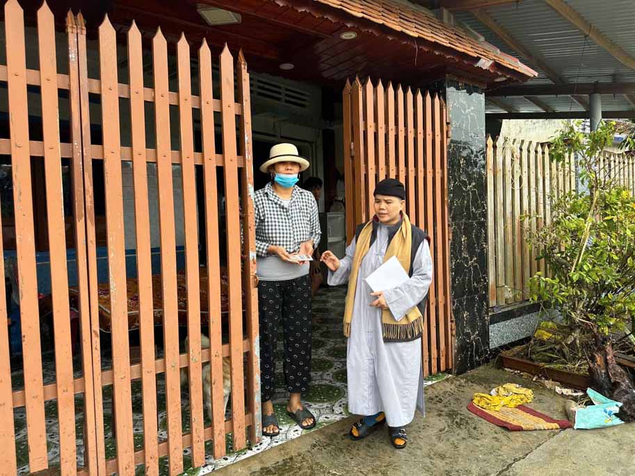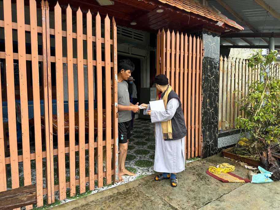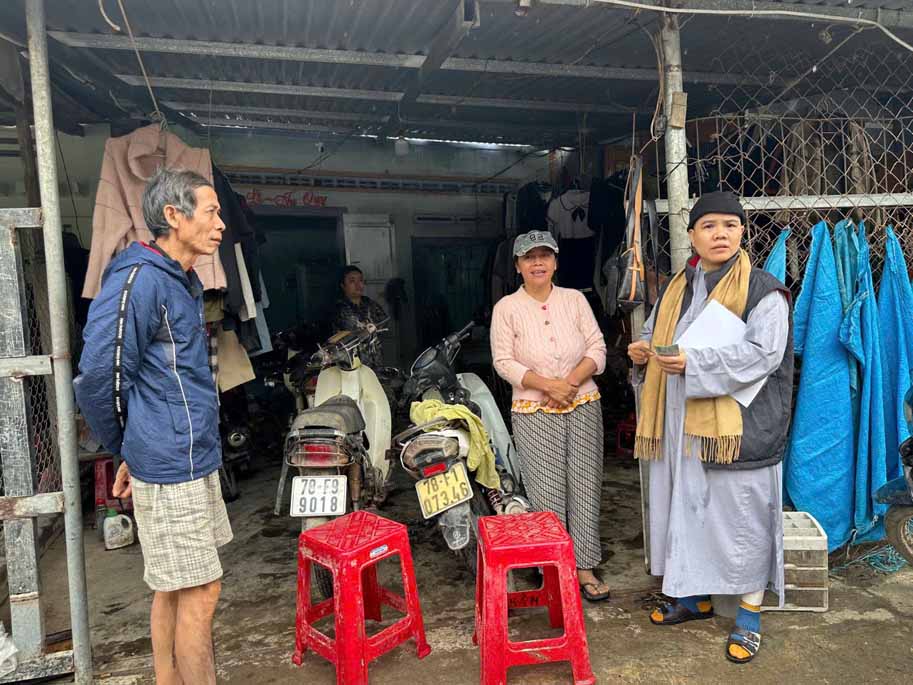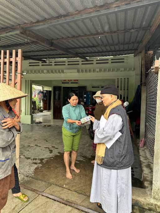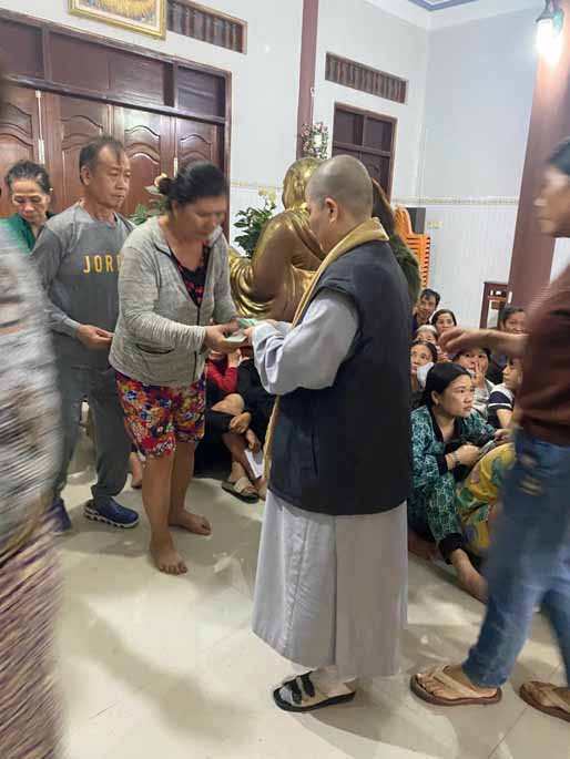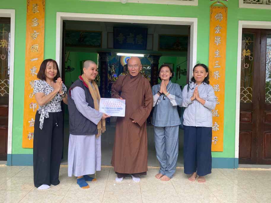 Đoàn cũng đến thăm, vấn an và cúng dường các tự viện bị ngập sâu và thiệt hại trong cơn bão lũ thời gian qua. Tổng kinh phí chuyến đi hơn 200 triệu đồng.