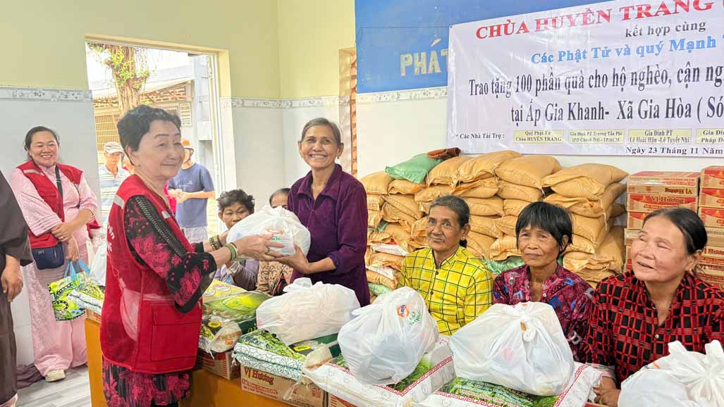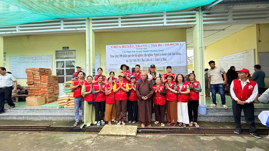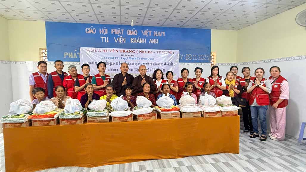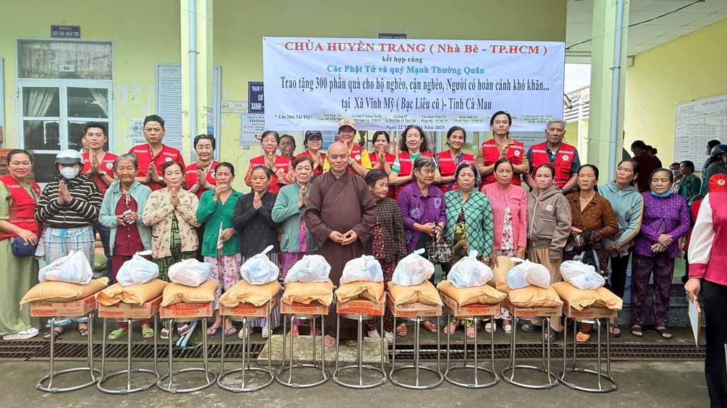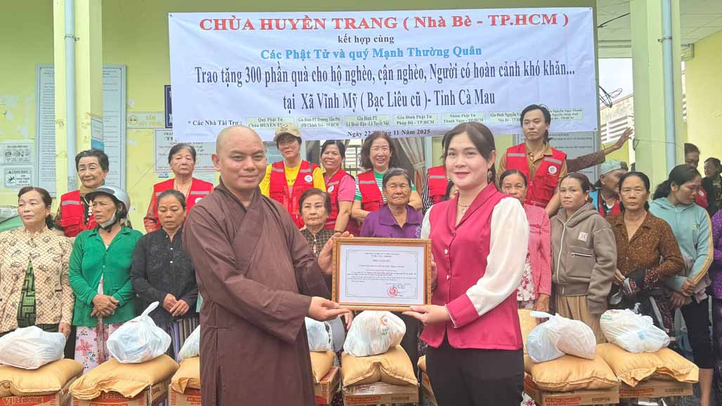 Ngày 22/ 11/ 2025, dưới sự hướng dẫn của Đại đức Thích Giác Tiến, Tri sự chùa Huyền Trang (Nhà Bè – TP. HCM), đoàn Phật tử chùa Huyền Trang đã phối hợp cùng: Ban Từ thiện Xã hội Báo Giác Ngộ, Hội Thầy thuốc Tình nguyện Hội Chữ thập đỏ TP. HCM tổ chức chương trình khám bệnh, phát thuốc miễn phí và trao tặng 300 phần quà đến bà con nghèo, cận nghèo và người có hoàn cảnh khó khăn tại xã Vĩnh Mỹ, tỉnh Cà Mau.