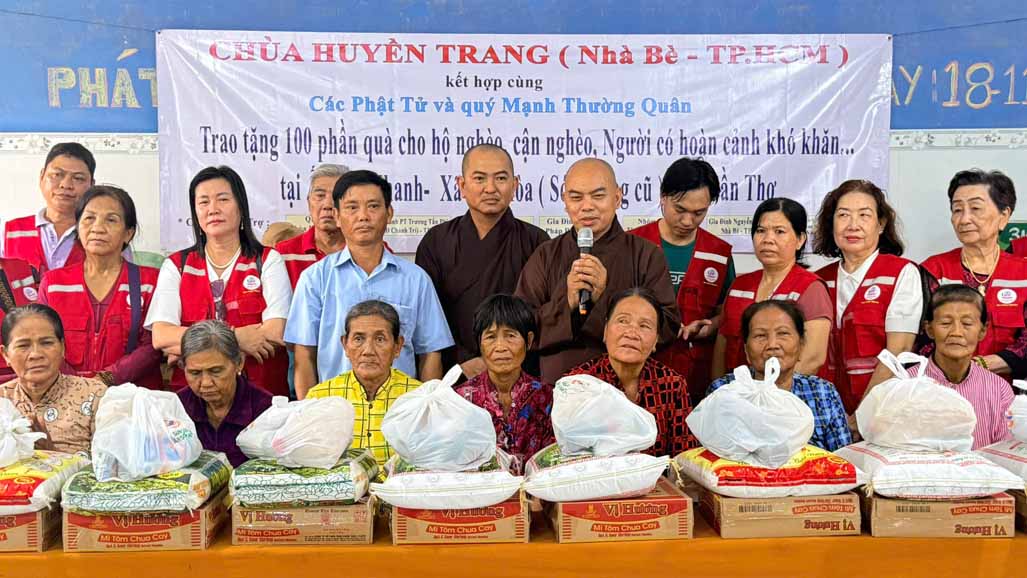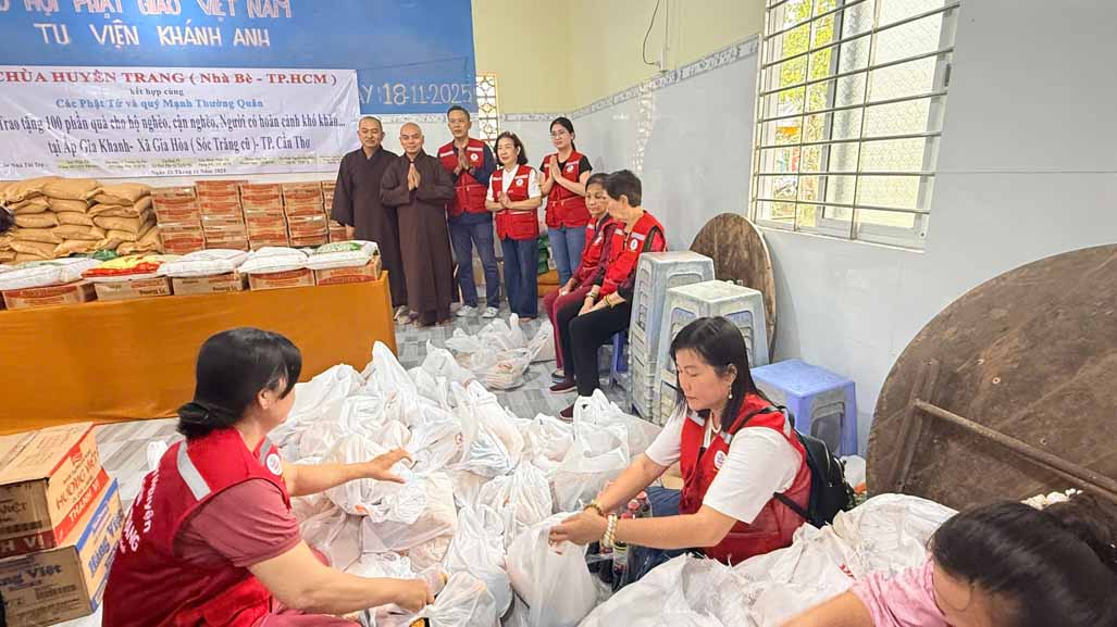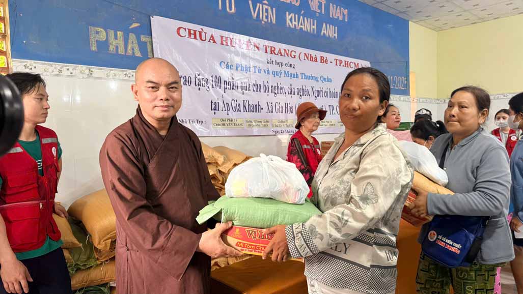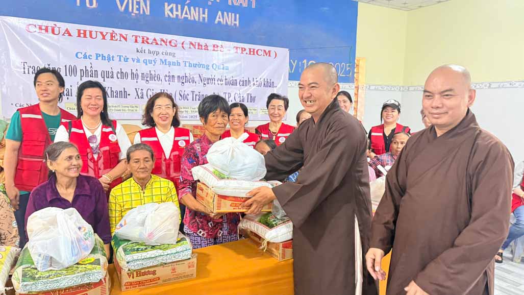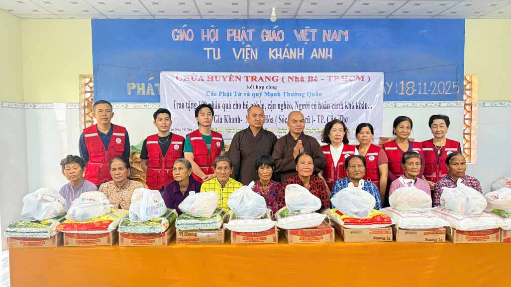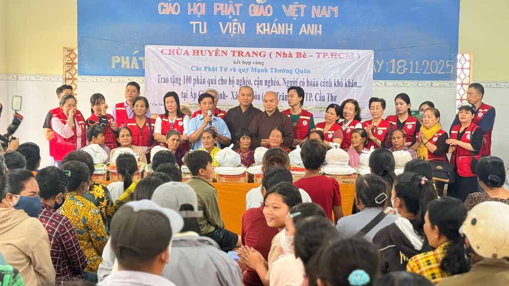 Ngày 22/ 11/ 2025, dưới sự hướng dẫn của Đại đức Thích Giác Tiến, Tri sự chùa Huyền Trang (Nhà Bè – TP. HCM), đoàn Phật tử chùa Huyền Trang đã phối hợp cùng: Ban Từ thiện Xã hội Báo Giác Ngộ, Hội Thầy thuốc Tình nguyện Hội Chữ thập đỏ TP. HCM tổ chức chương trình khám bệnh, phát thuốc miễn phí và trao tặng 300 phần quà đến bà con nghèo, cận nghèo và người có hoàn cảnh khó khăn tại xã Vĩnh Mỹ, tỉnh Cà Mau.